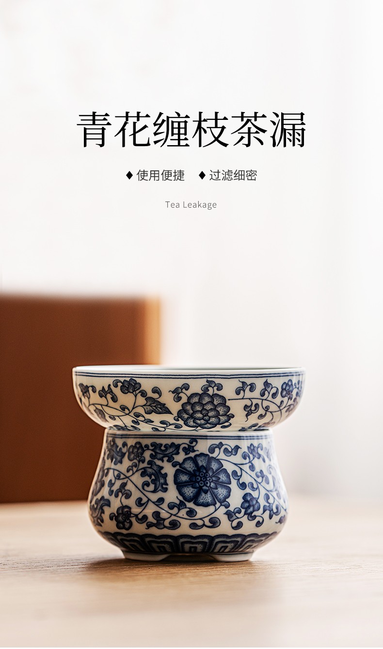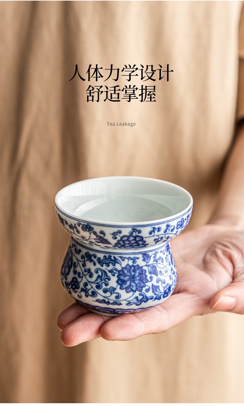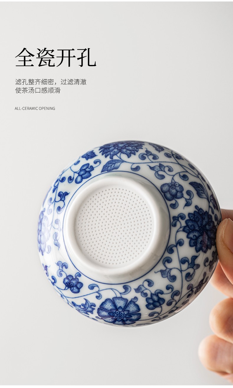 Tangfeng all-ceramic one-piece tea drain blue and white filter household ceramic kung fu hand tea partition simple tea filter blue and white lotus tea drain