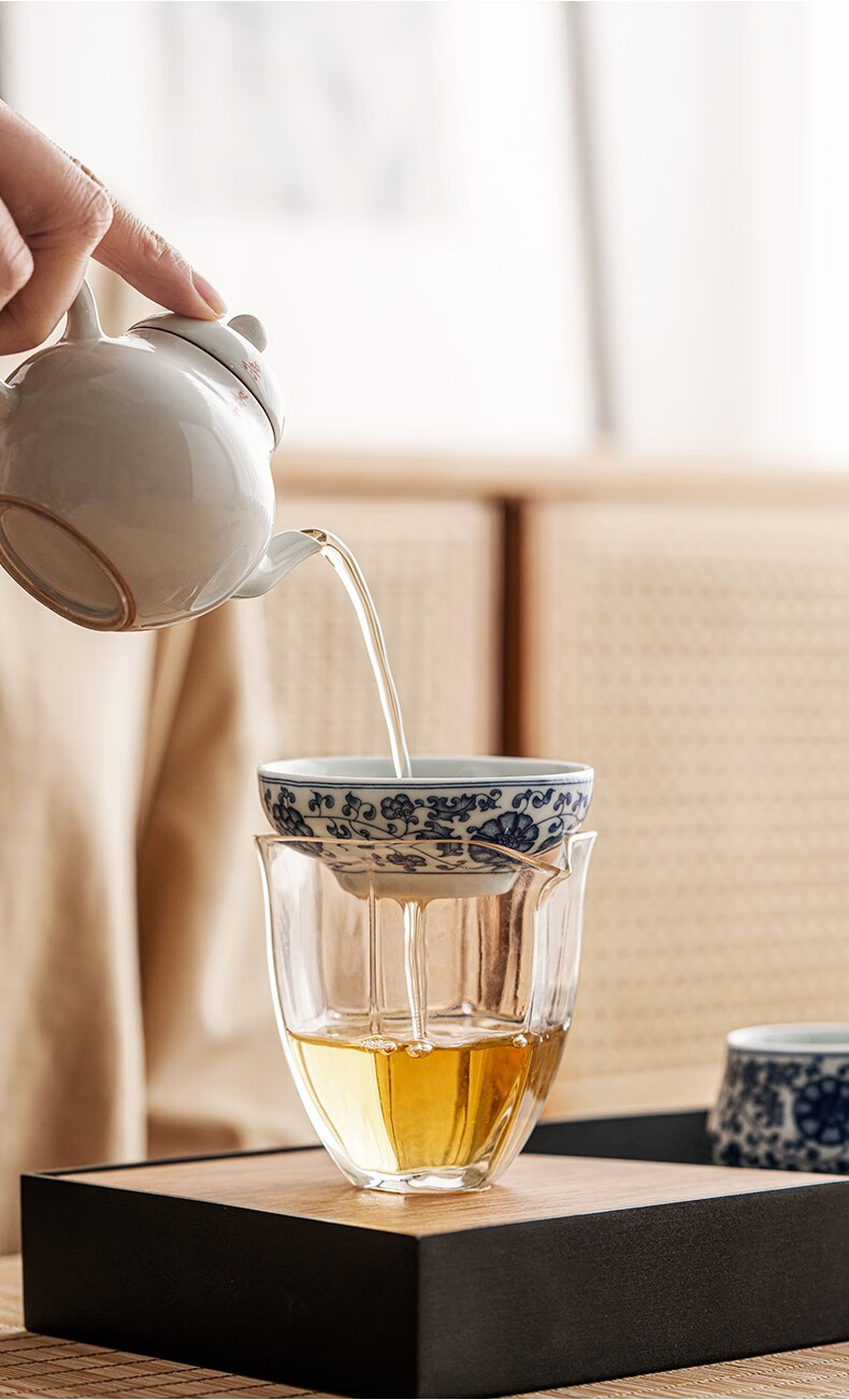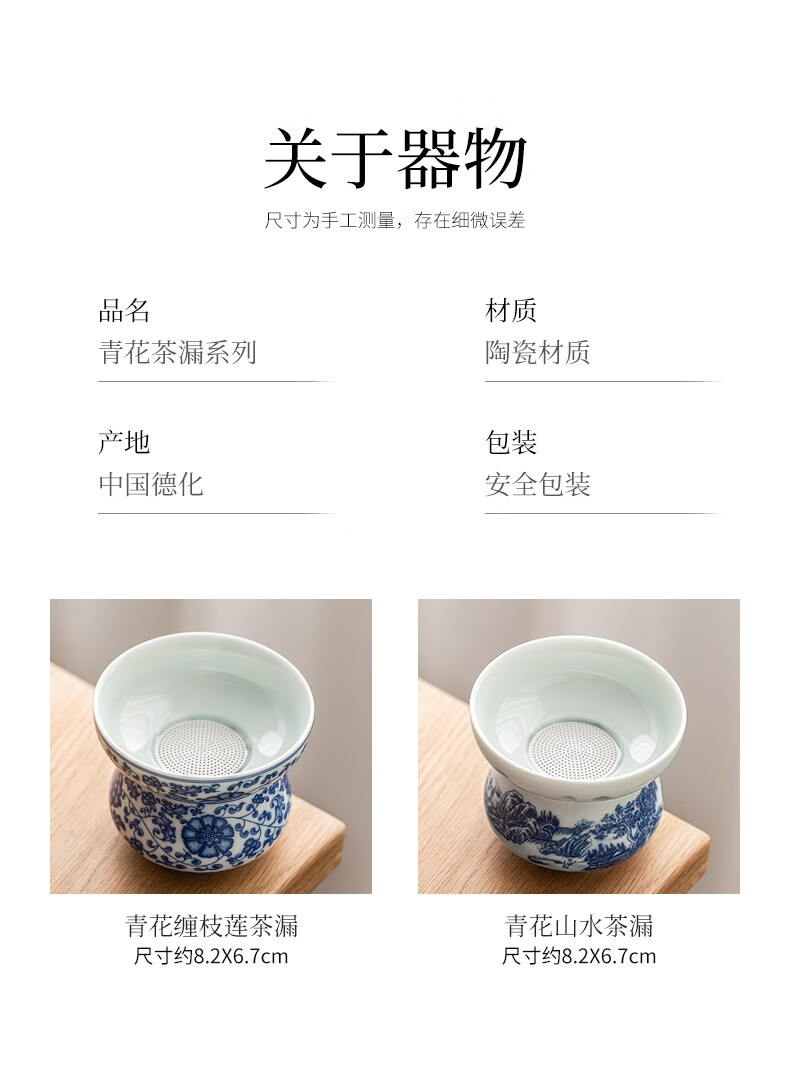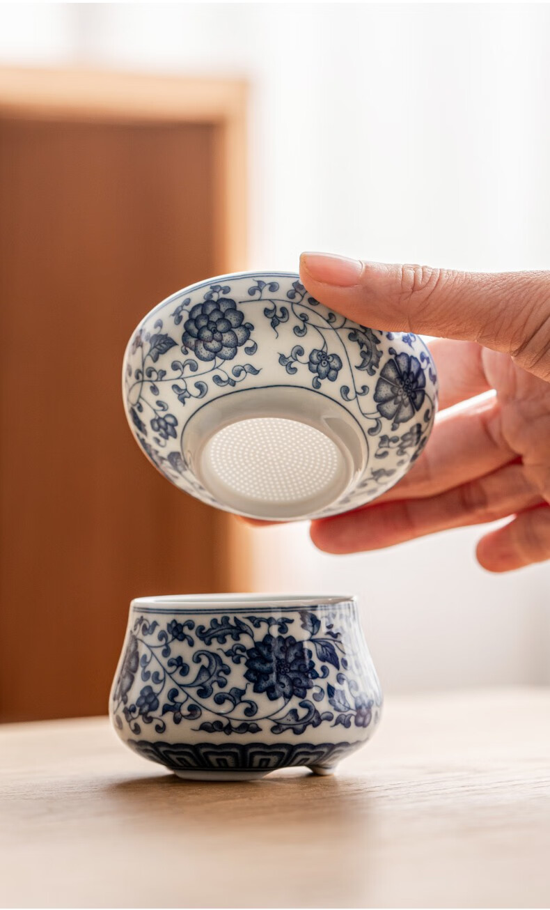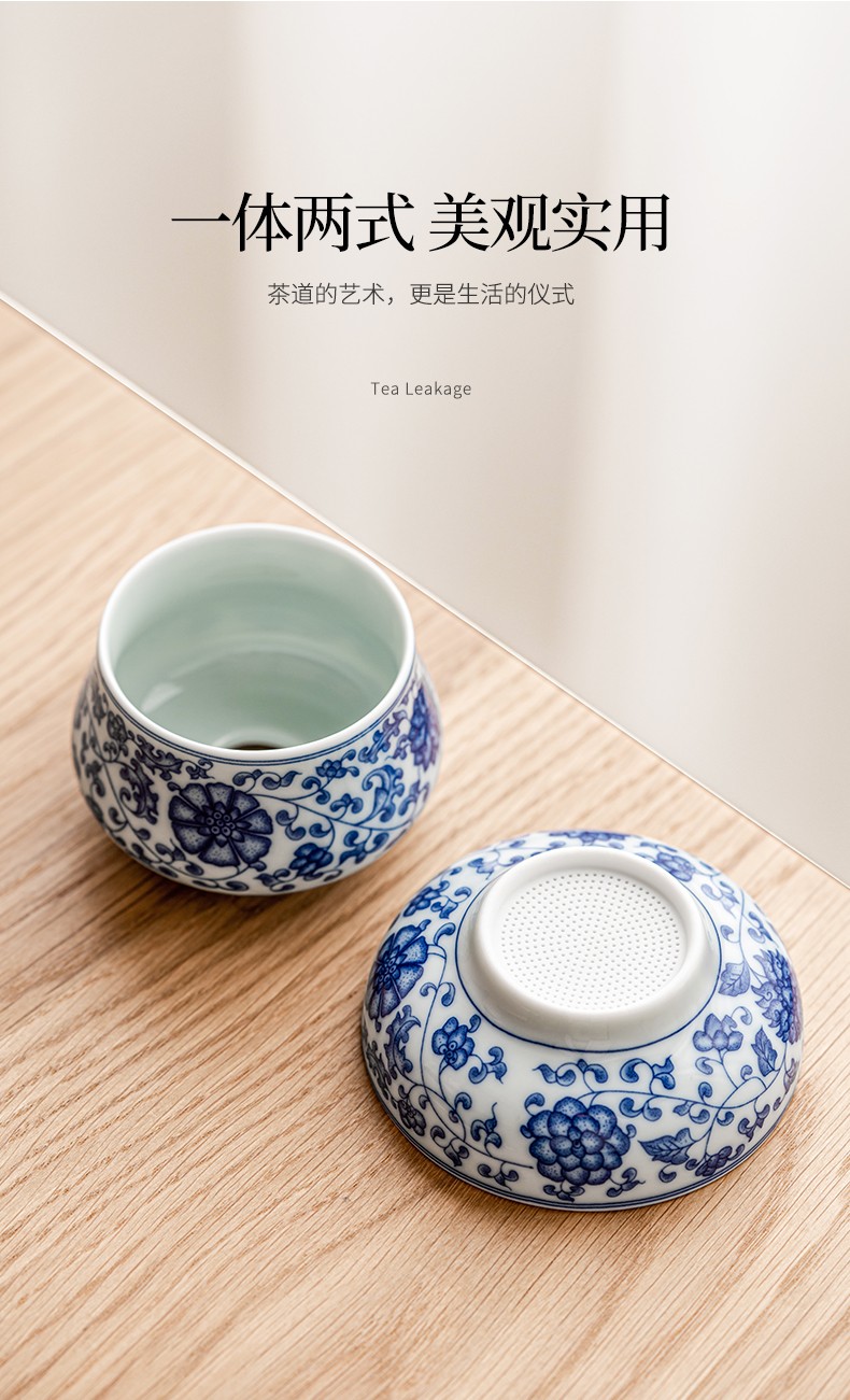 Tangfeng all-ceramic one-piece tea drain blue and white filter household ceramic kung fu hand tea partition simple tea filter blue and white lotus tea drain