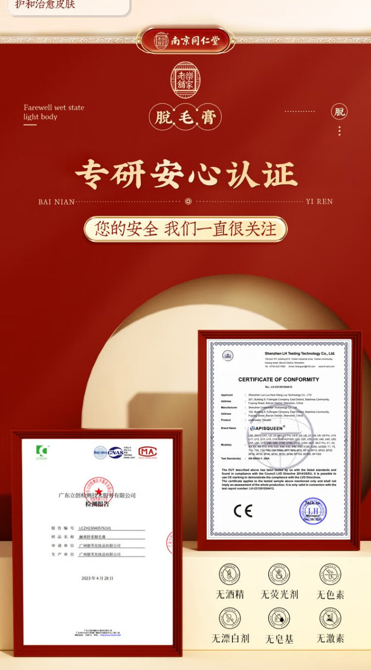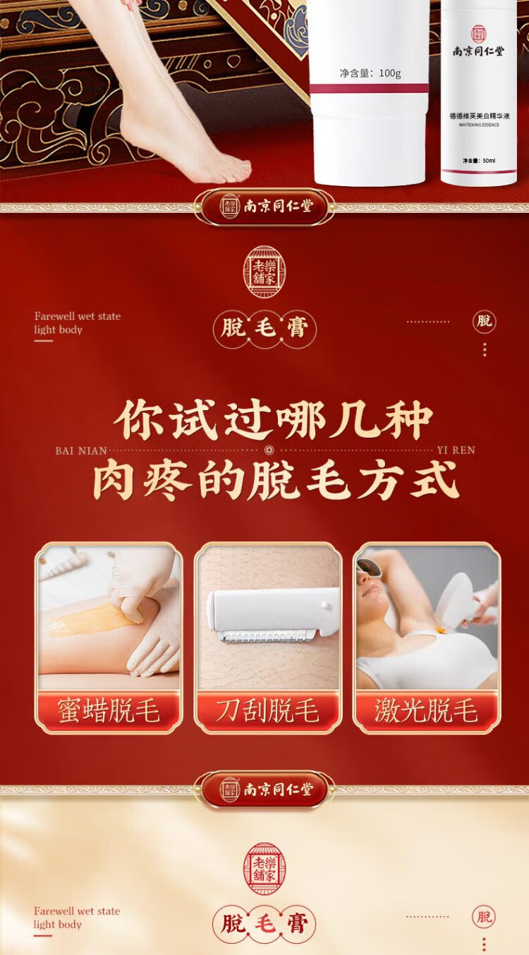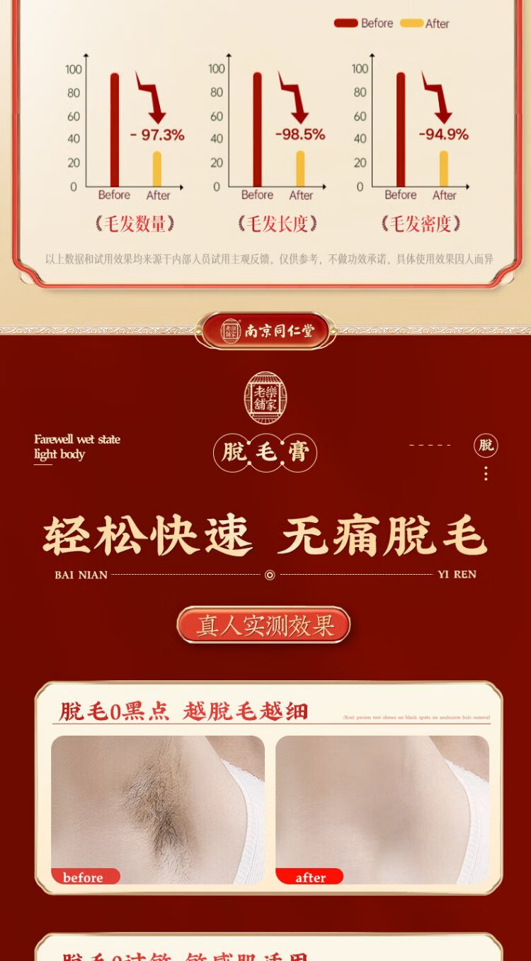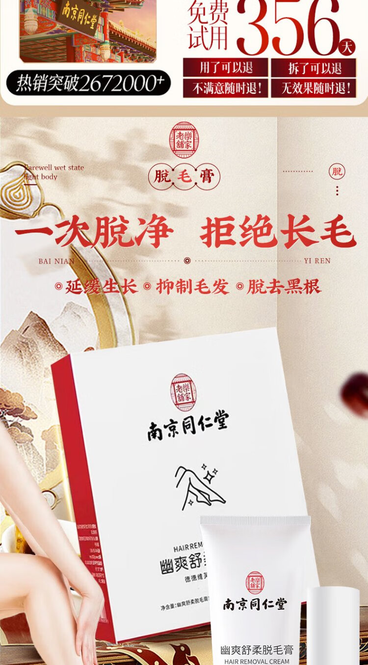 Nanjing Tongrentang Hair Removal Cream permanently removes hair roots and no longer grows in private areas, beard, armpits, facial armpit hair, and body for men and women. A box of 69 100g hair removal cream + 50ml essence