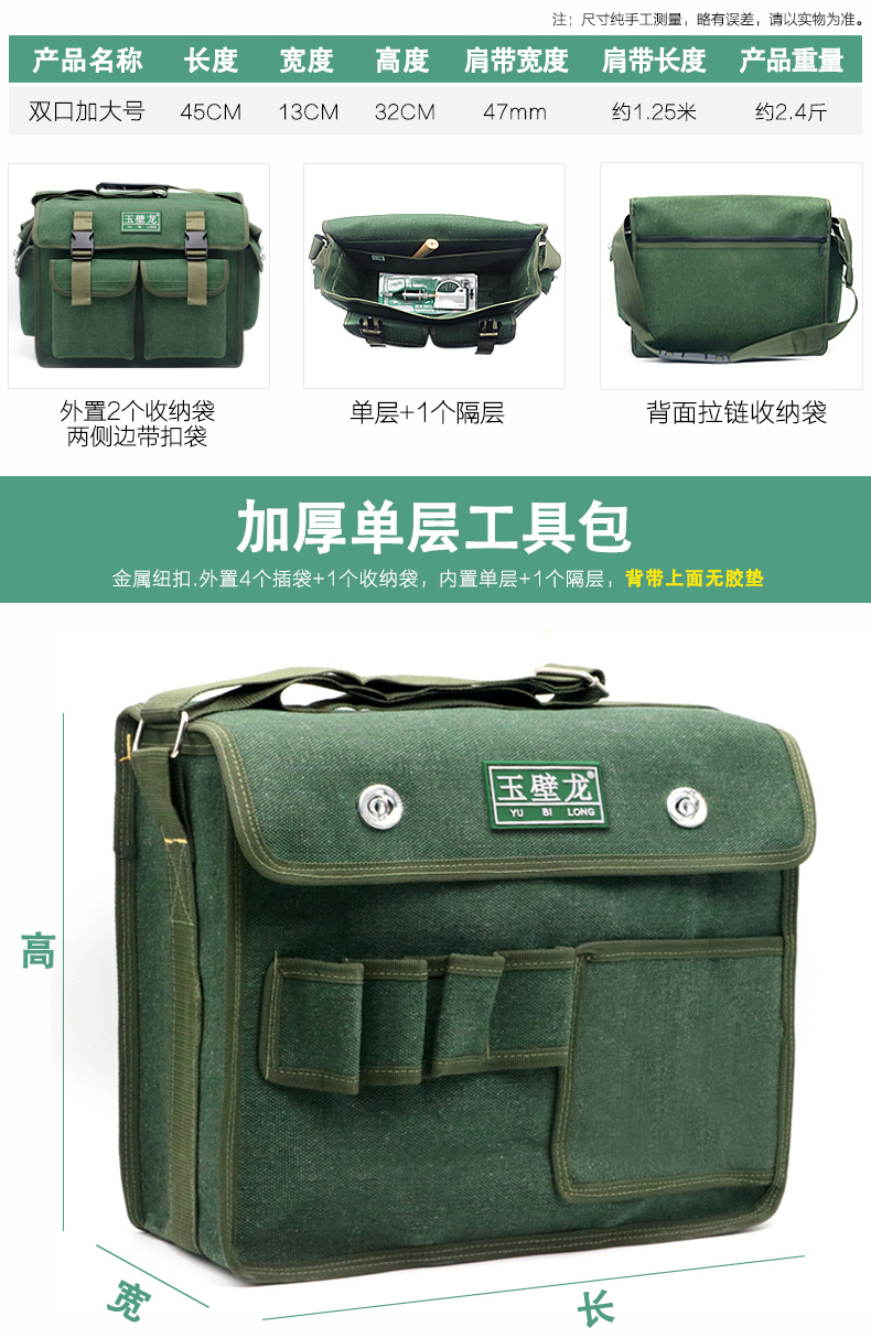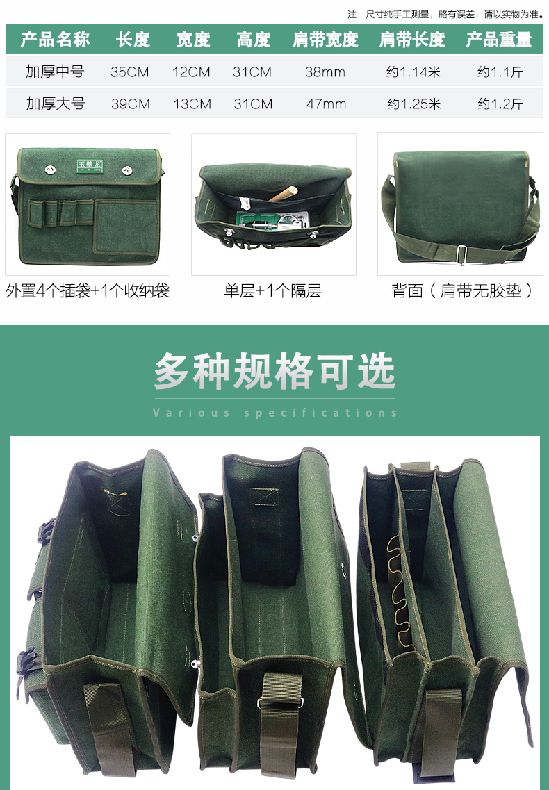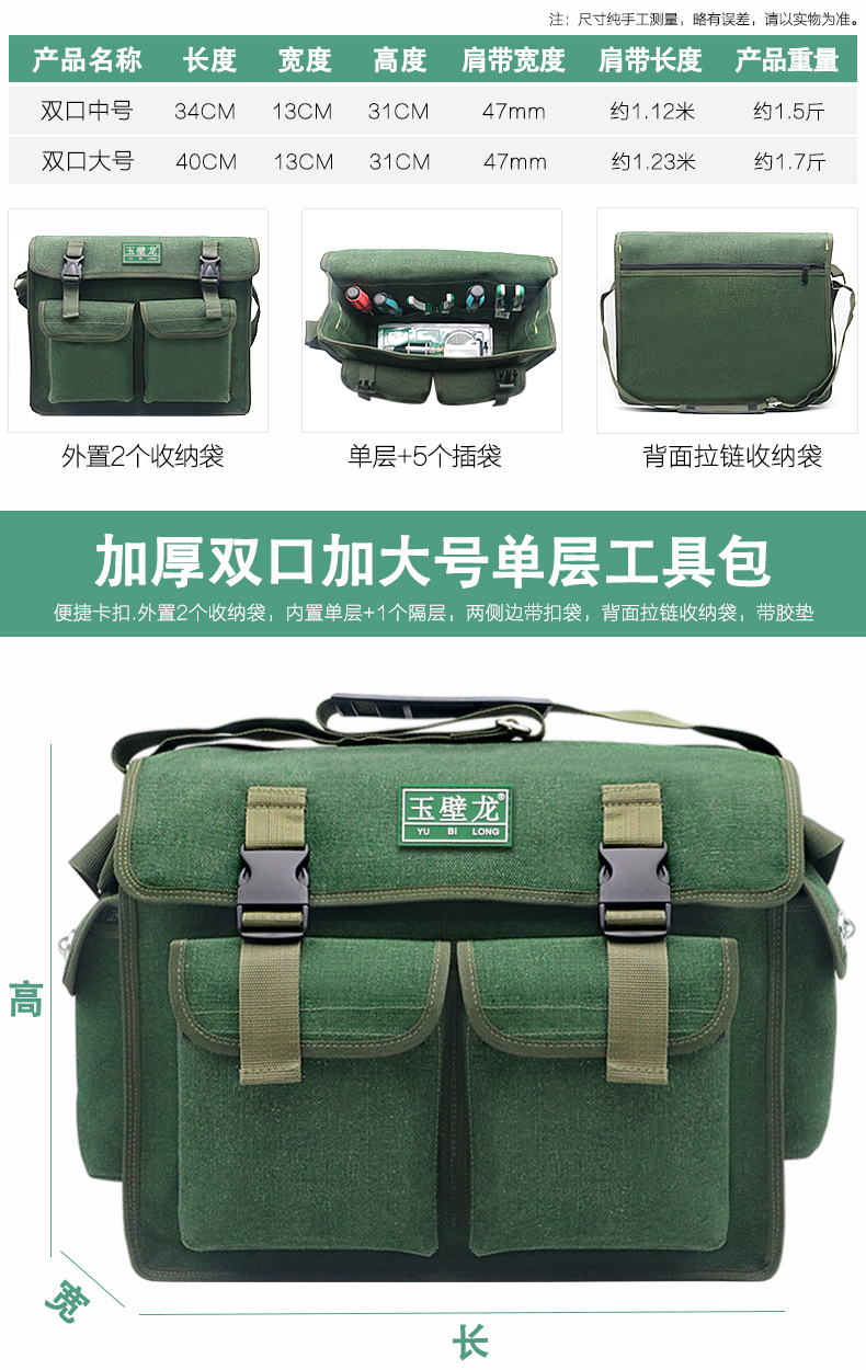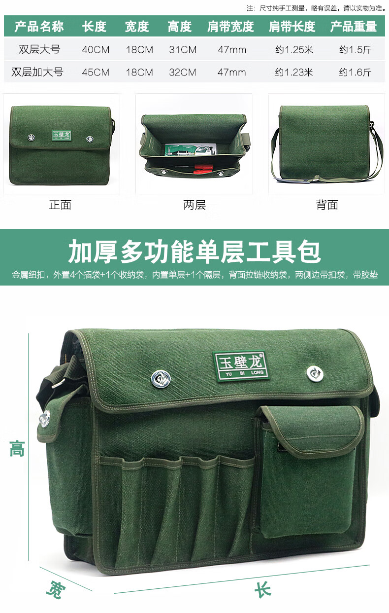 Electrician's Tool Bag Canvas Thickened, Strong and Durable Carpentry, Plumbing and Electrician Multifunctional Installation and Repair Hardware Tools Large Capacity Wear-Resistant Storage Bag Messenger Bag Thick Medium Single Layer 43 Styles