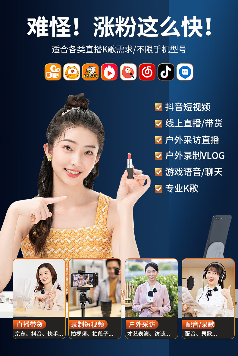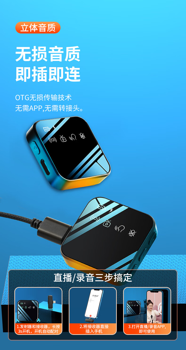 Love 100%, 50% off at a loss, professional wireless lavalier microphone, sound card receiver, universal live broadcast, outdoor interview, noise reduction, short video, professional vlog reverb, shooting and recording, upgraded version one-to-one, Android interface + noise reduction reverb + vlog + live broadcast