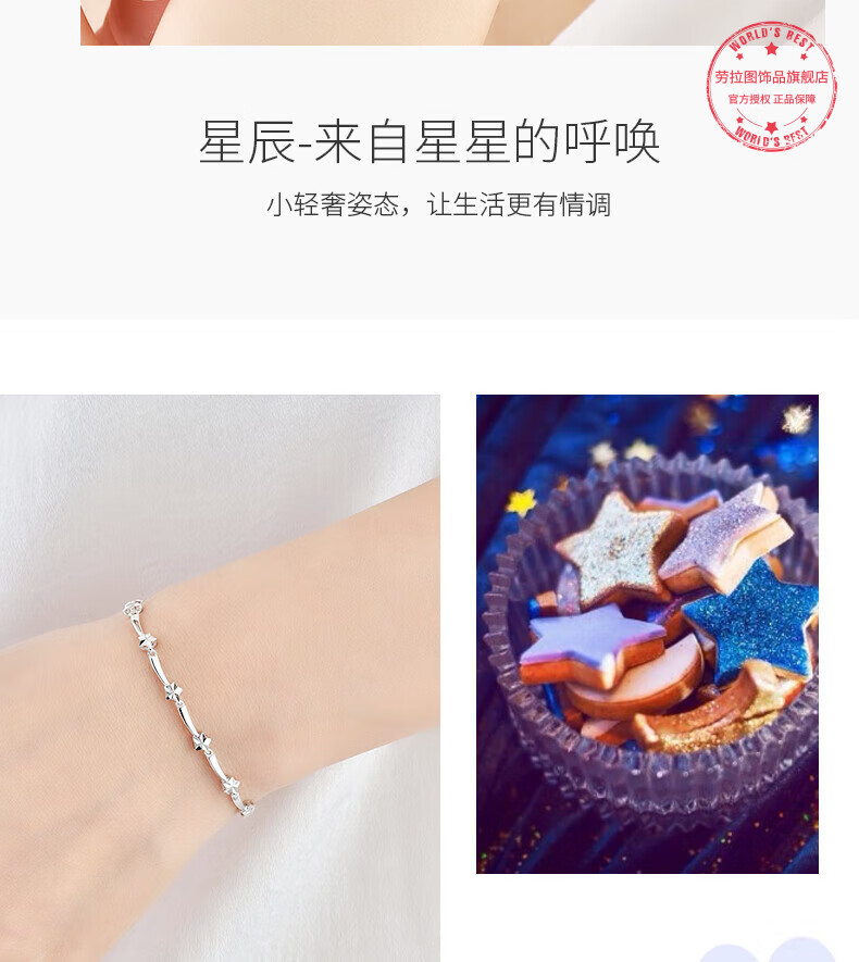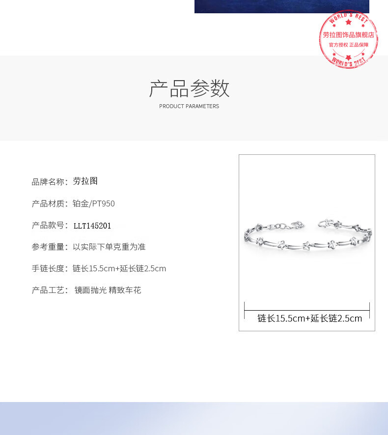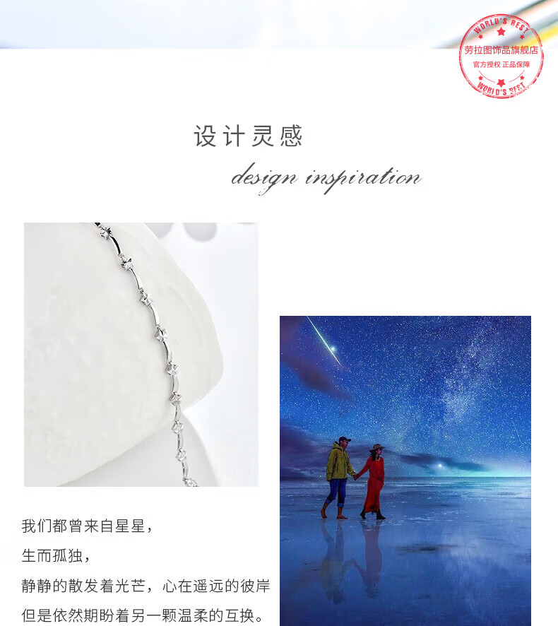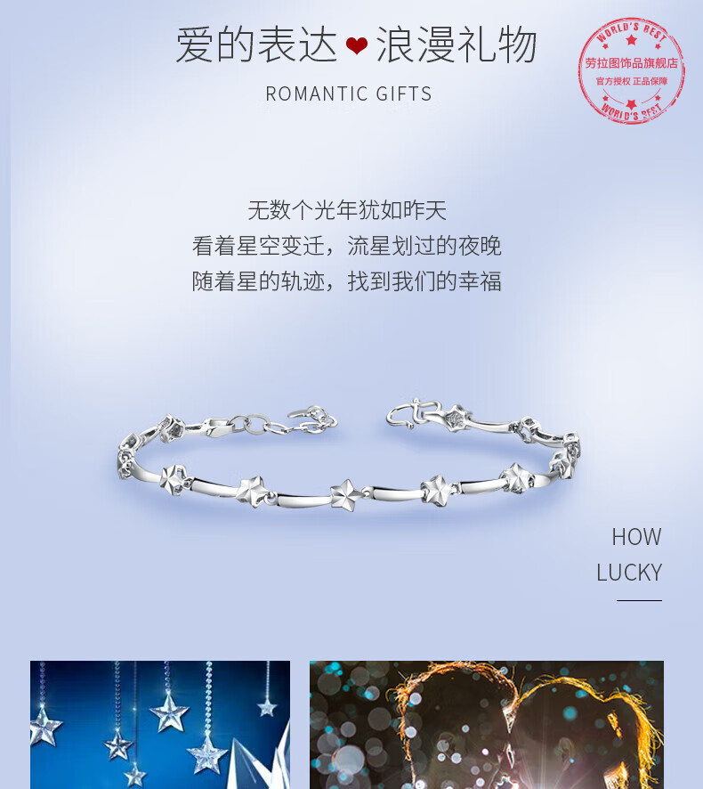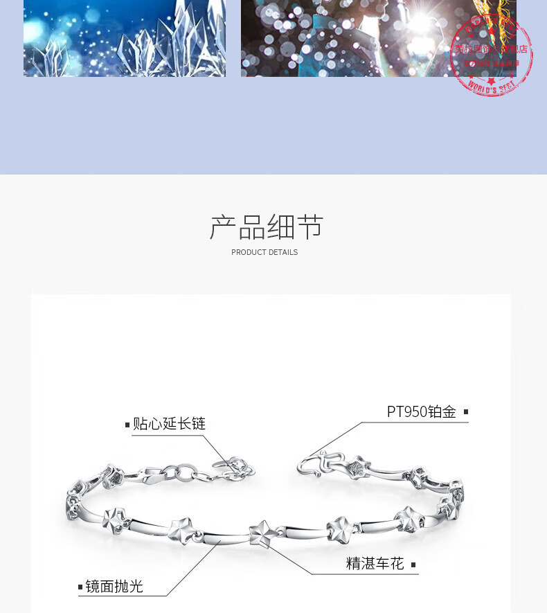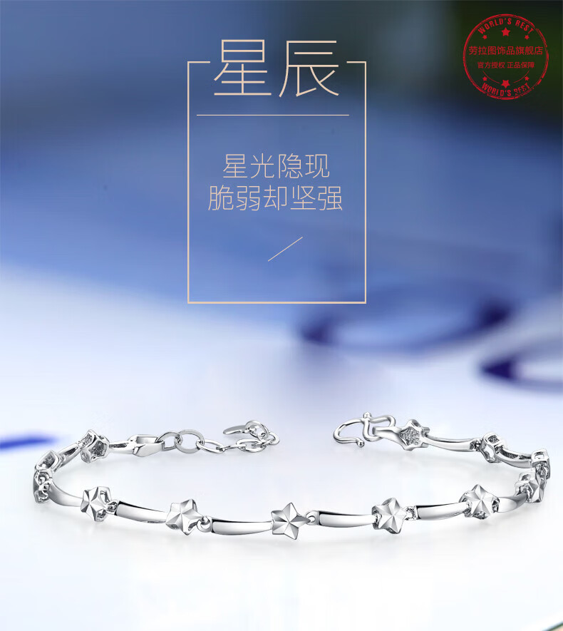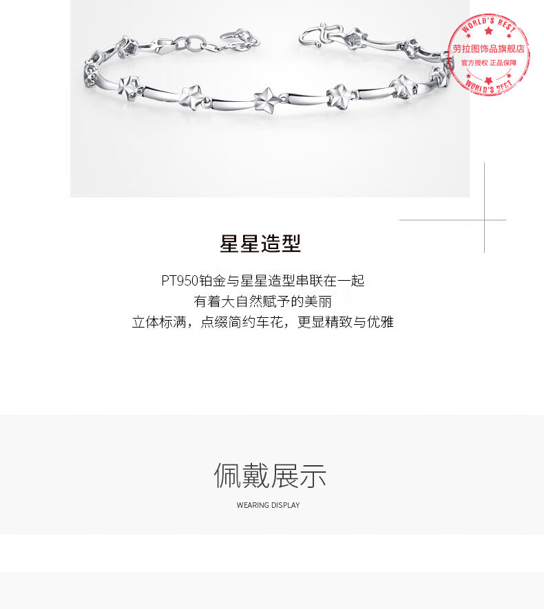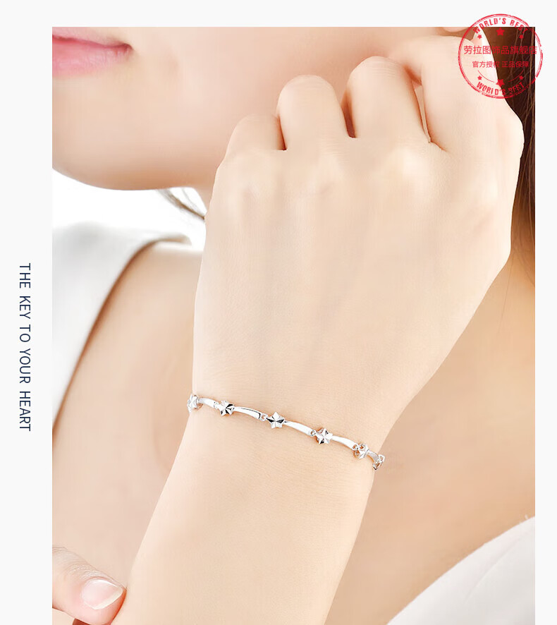 LAOLATU star platinum bracelet for women PT950 platinum jewelry with engraved light luxury Chinese Valentine's Day gift for girlfriend and wife Platinum star bracelet limited stock