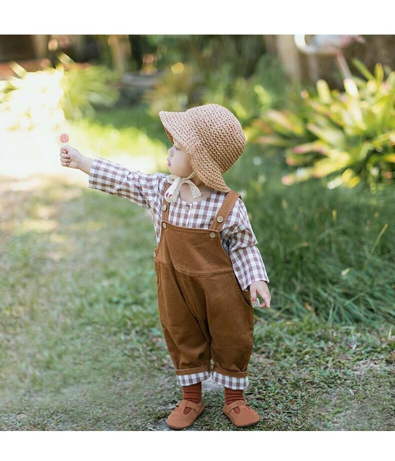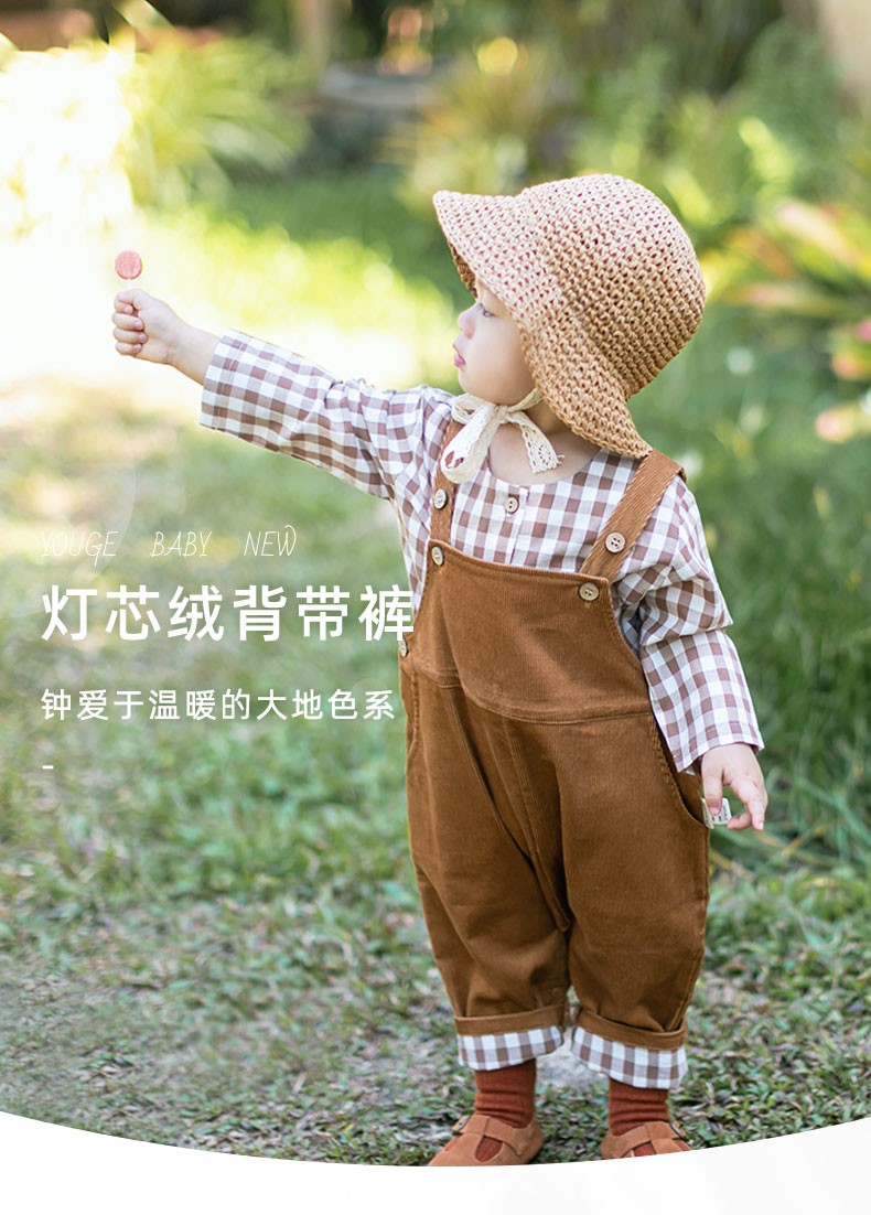 YOUGE (YOUGE) baby overalls spring and autumn children's baby pants boys and girls large PP pants corduroy long pants beige 1 (66-100 opening) 90 cm
