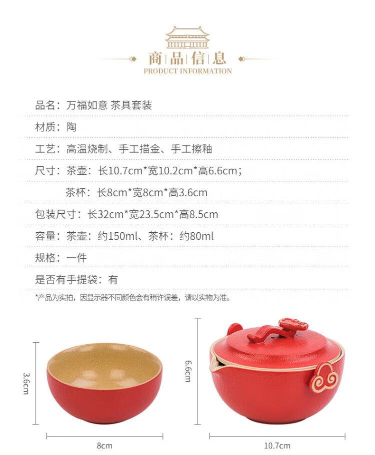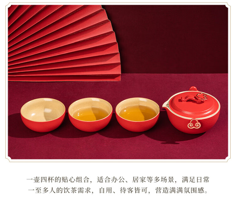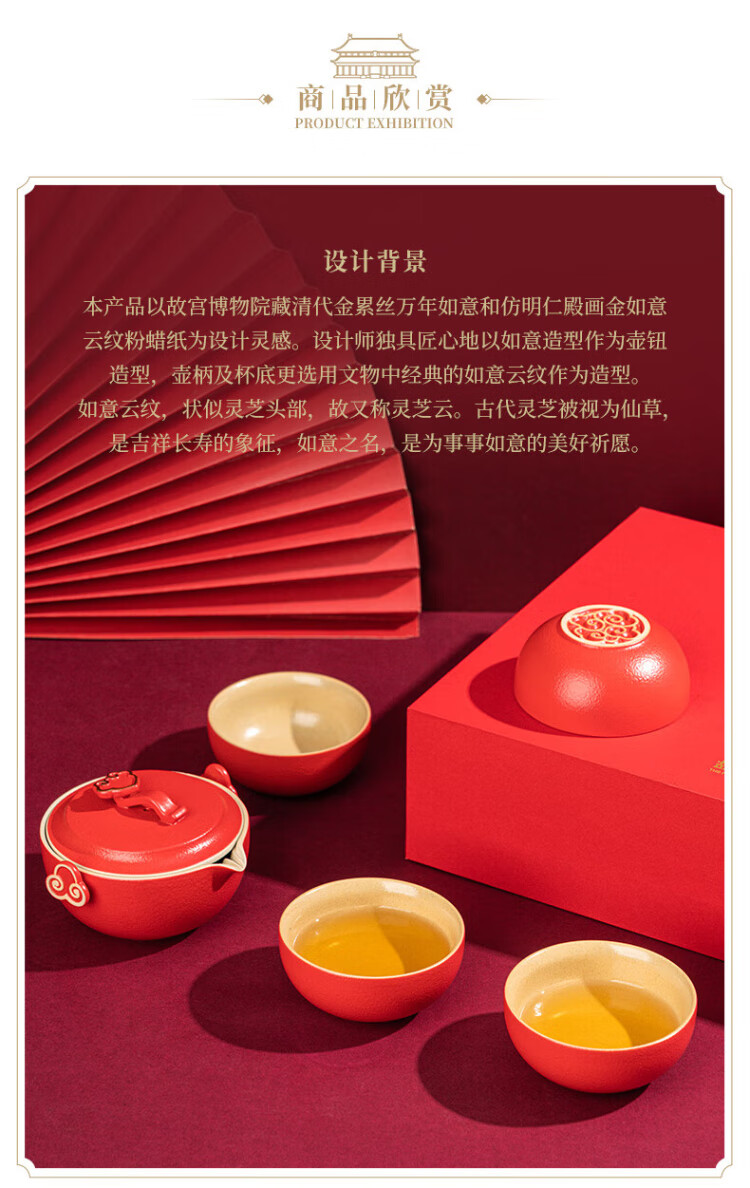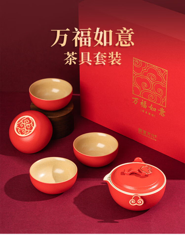 Forbidden City Culture Wanfu Ruyi Tea Set Ceramic Tea Set Cup Palace Museum Cultural and Creative Gifts Wedding Birthday Gift Gift Box One Pot Four Cups