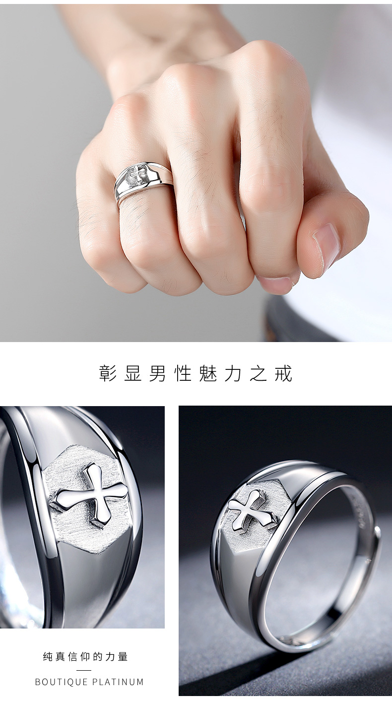 Miss JuJu pt950 platinum ring men's platinum cross ring personalized live ring adjustable weight 7.10g + certificate included