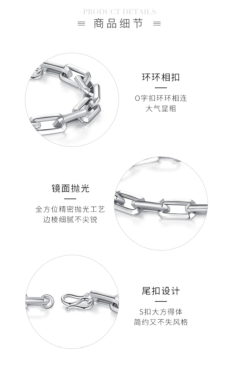 Miss JuJu platinum bracelet for men, thick and elegant pt950 platinum men's simple and cool cross chain bracelet for women, weight 9.16g, length 18cm, thickness about 5mm S buckle