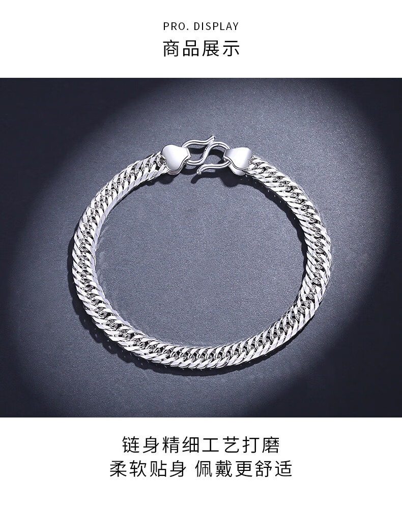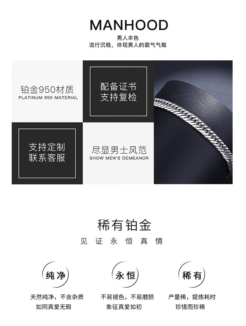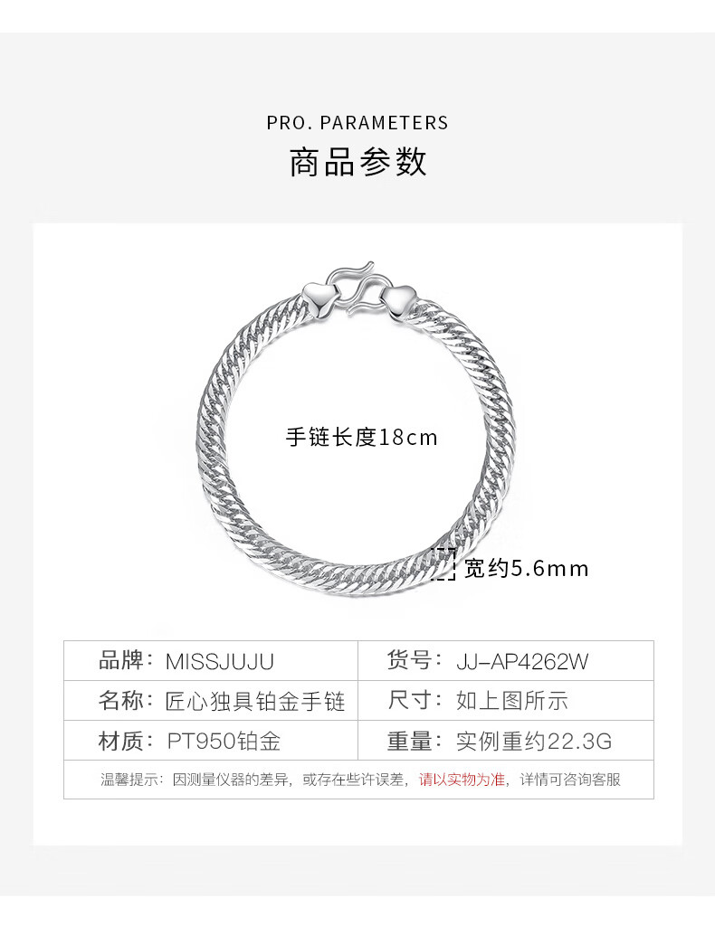 Miss JuJu PT950 platinum bracelet men's platinum horsewhip bracelet, large and thick 12-cut Xiping bracelet (in stock) weighs 25.77 grams, is 21cm long and about 5.8mm wide