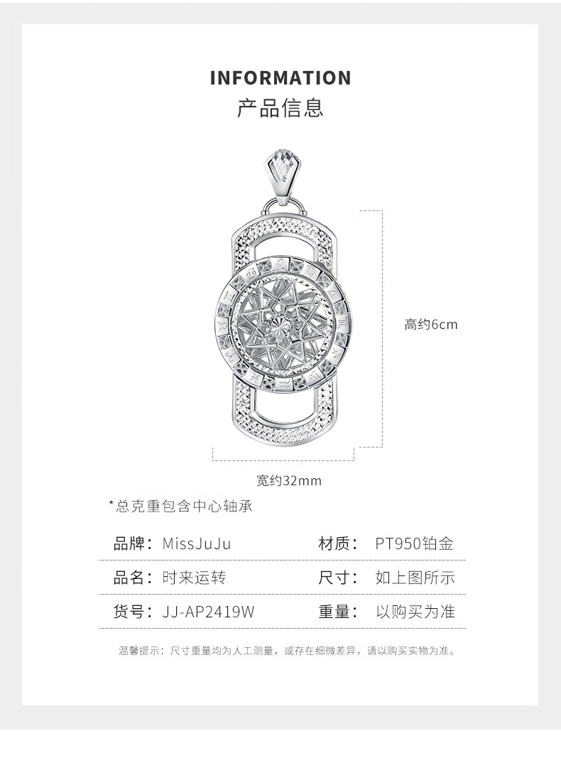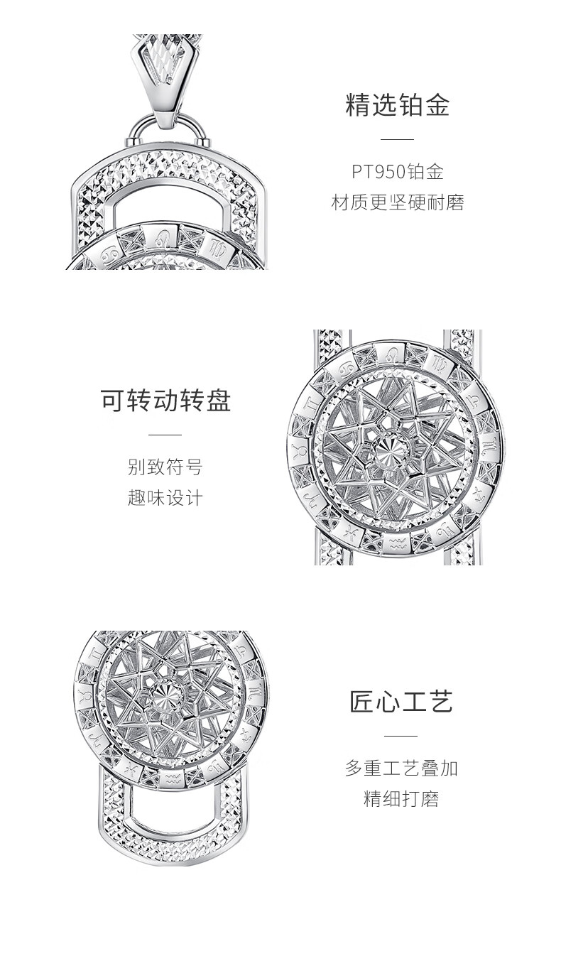 Miss JuJu Twelve Constellations Rotating Compass Platinum Pendant pt950 Platinum Large Tag Car Flower Fang Brand Men's Pendant Single Pendant About 33g + Shipping Leather Cord More refunds, less compensation