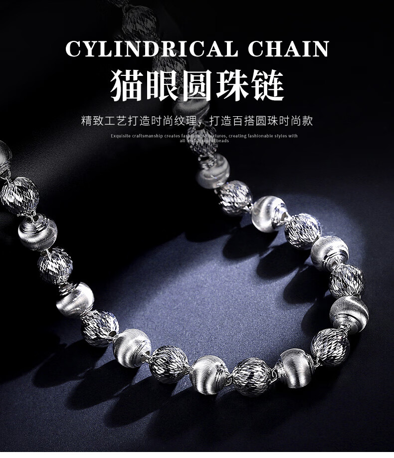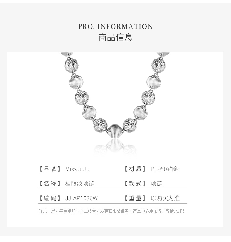 Miss JuJu Men's Domineering Platinum Necklace Looks Bigger pt950 Platinum Cat's Eye Pattern Ball Chain Men's Thick Chain Chain All Specifications are based on the actual weight and the amount will be refunded or supplemented.