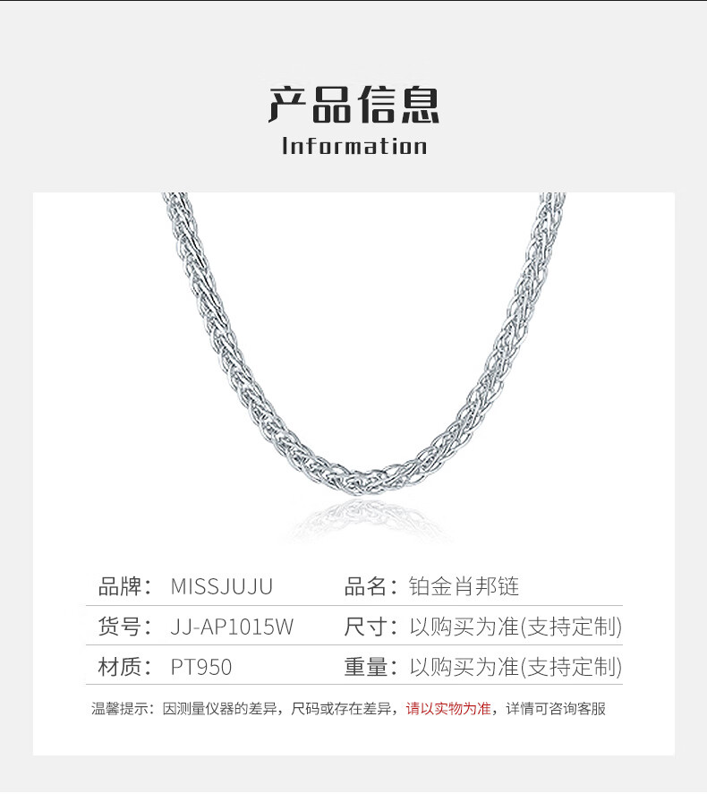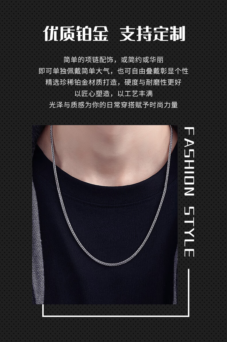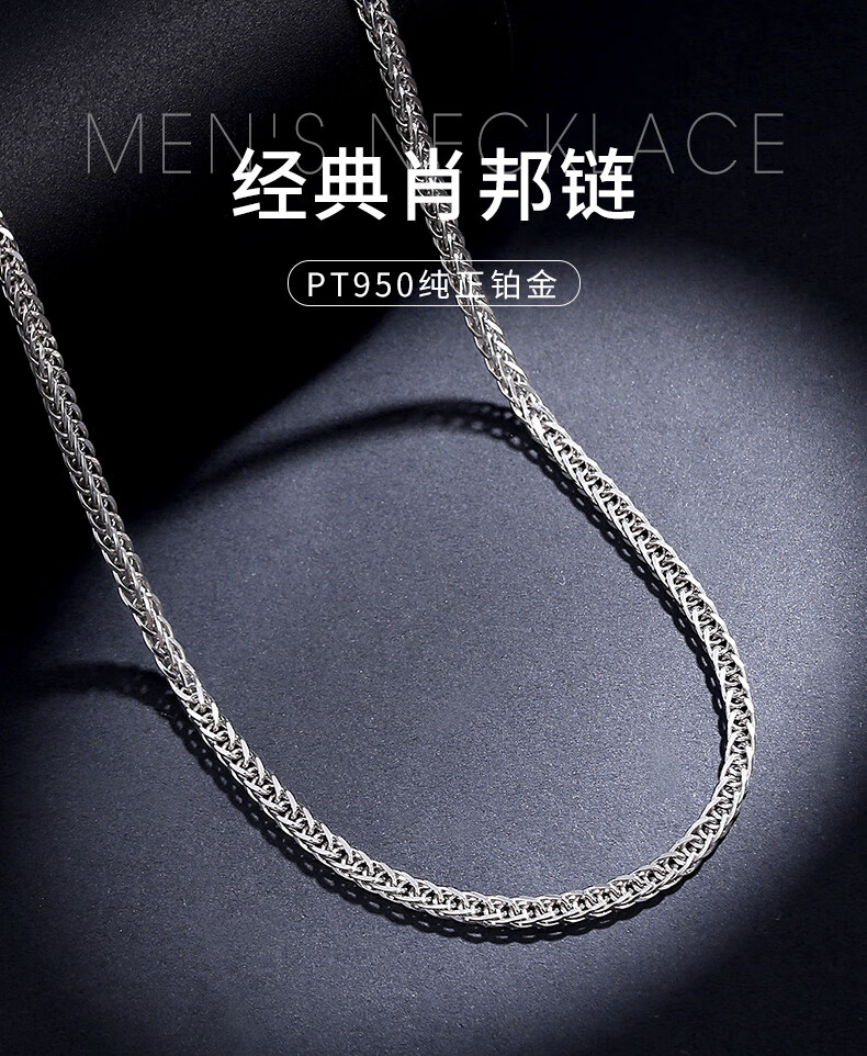 Miss JuJu pt950 platinum necklace for men and women, platinum necklace, clavicle chain, Chopard chain, thick style, thick sweater chain neck ornament, weight 17.2-17.4g, length 55cm, thickness 2.2mmM buckle