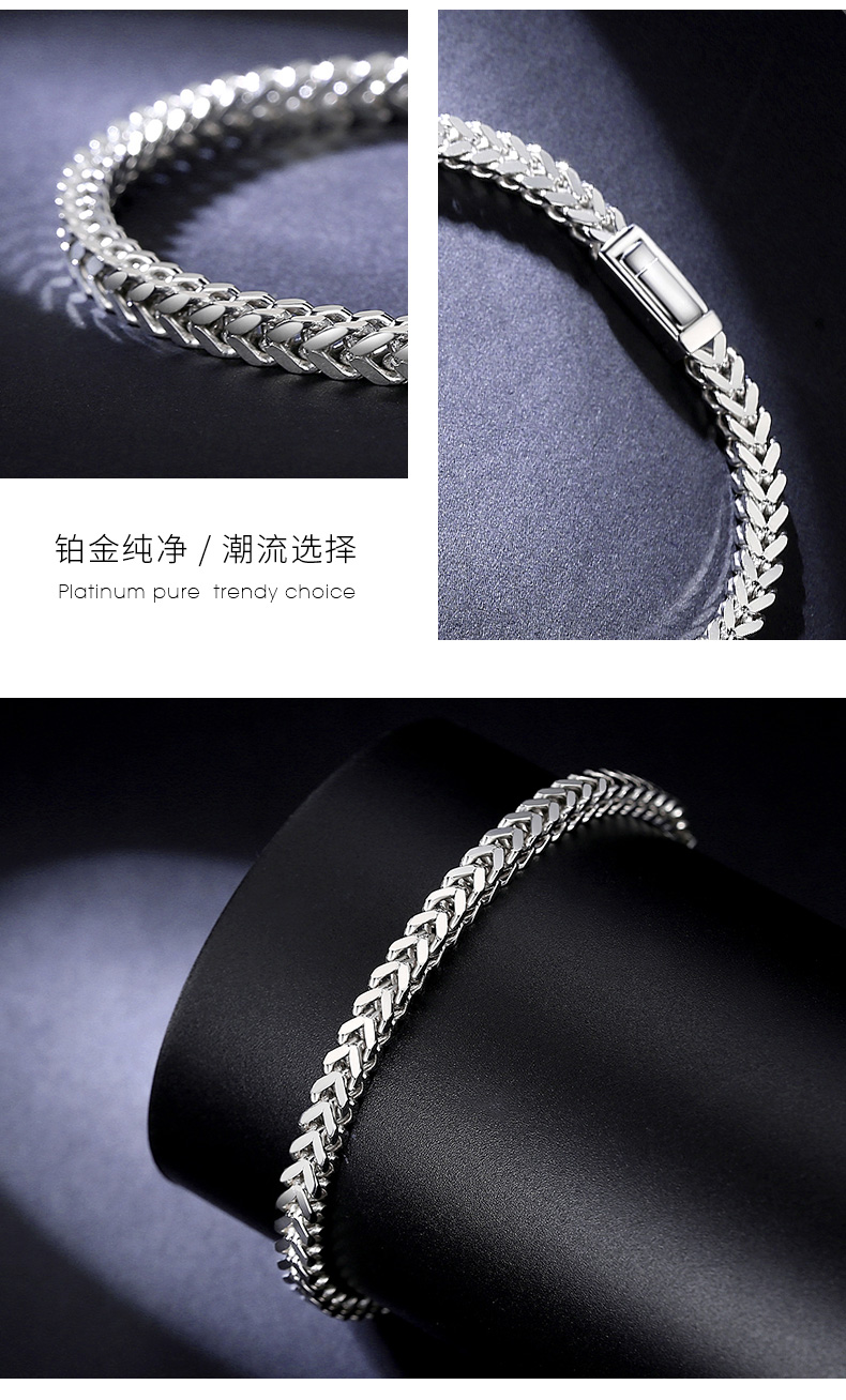 Miss JuJu pt950 platinum bracelet for men, platinum keel bracelet, domineering herringbone bracelet, recommended wearing length = clean hand circumference + 1.5~2.0cm