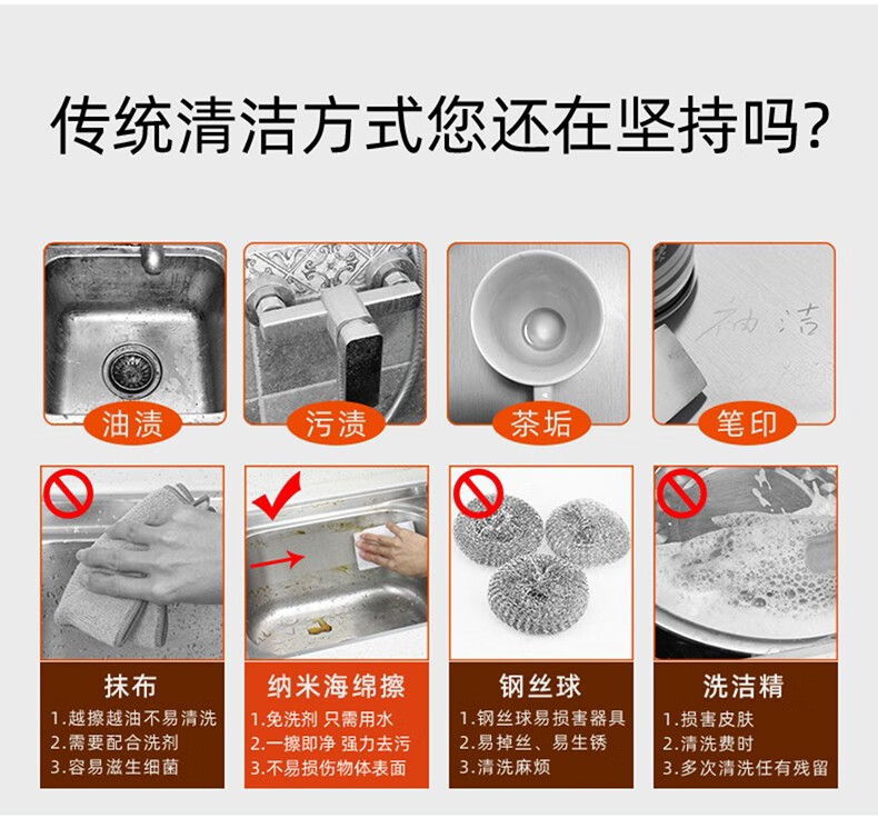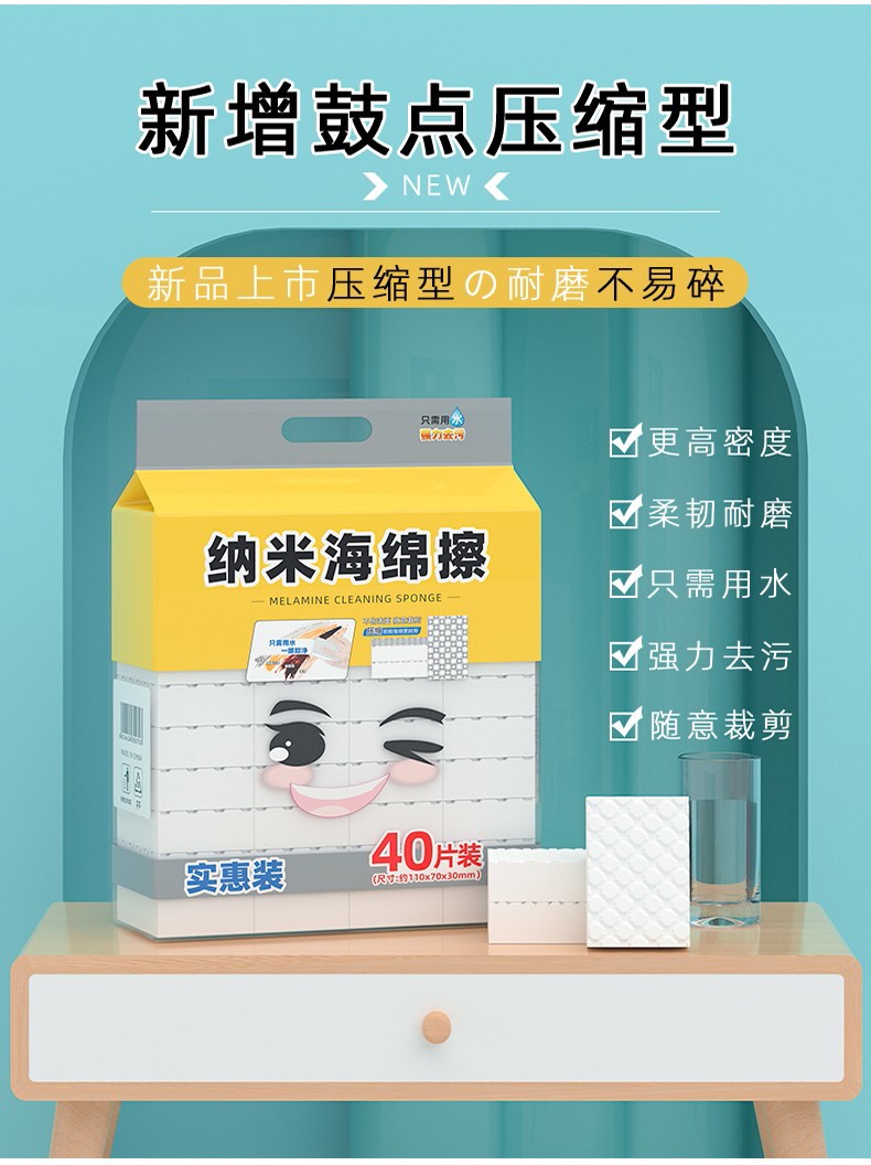 Nano Sponge Magic Wipe for Decontamination Kitchen Magic Magic Shoe Shine Tea Cup Cleaning Cotton Block Dishwashing Artifact Scouring Cloth 150 Boxed Bare Chips 10*6*2