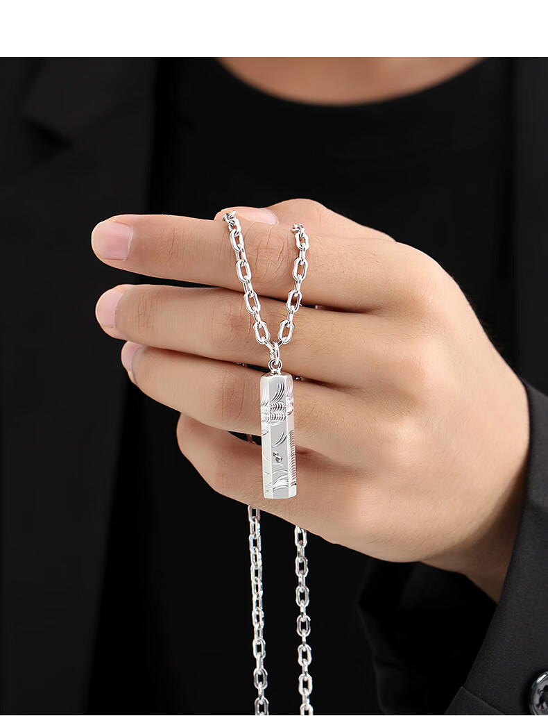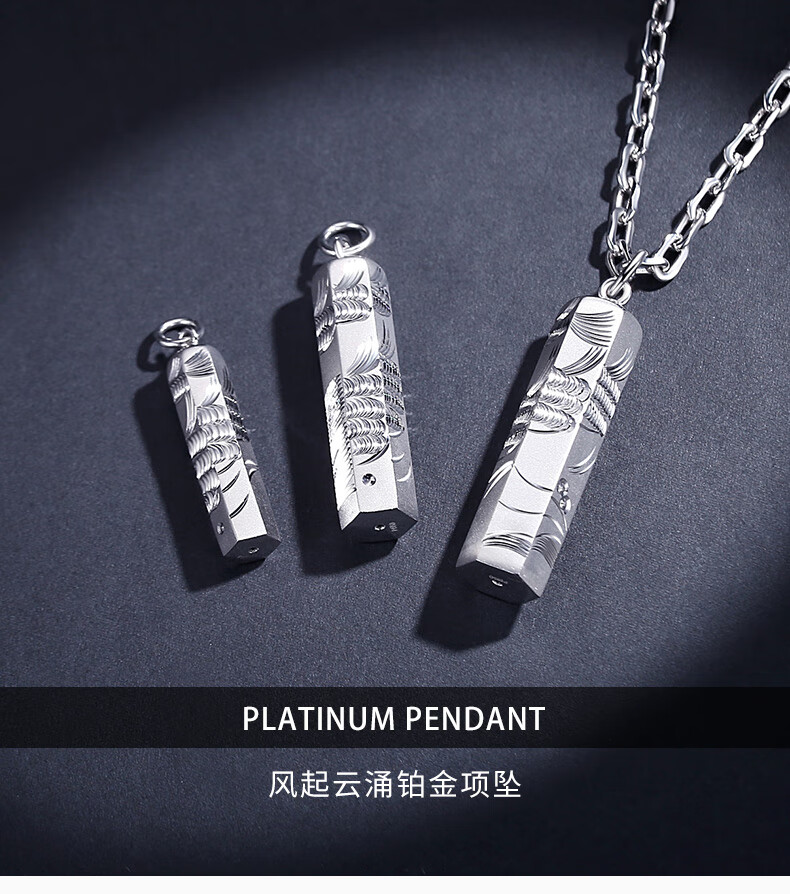 Miss JuJu pt950 platinum dragon and phoenix column pendant men's finely carved six-sided cylinder pendant small size weighs 3.7-3.9 grams
