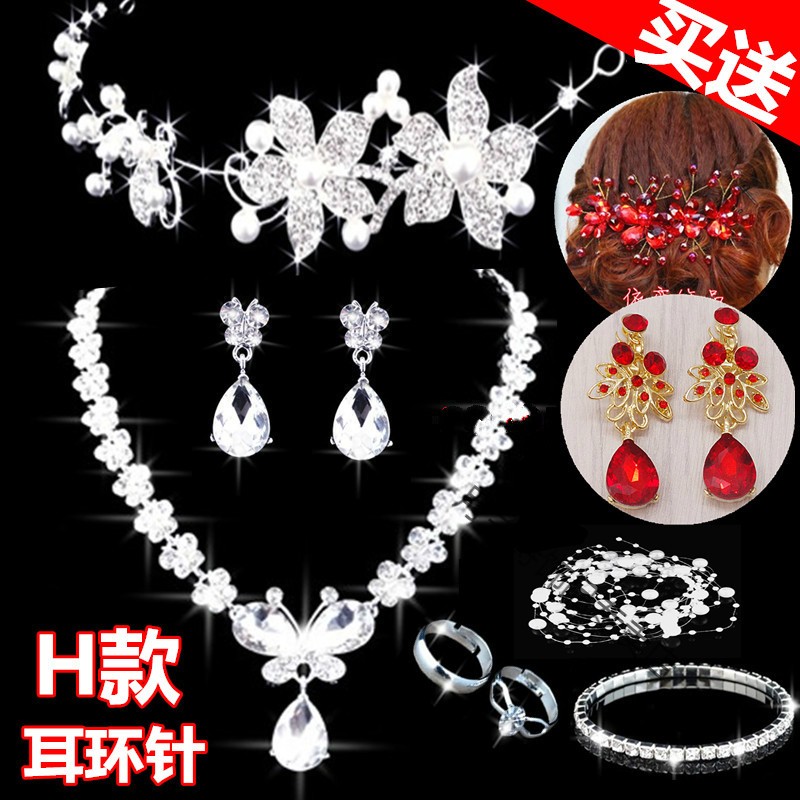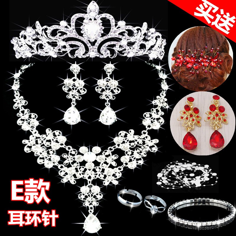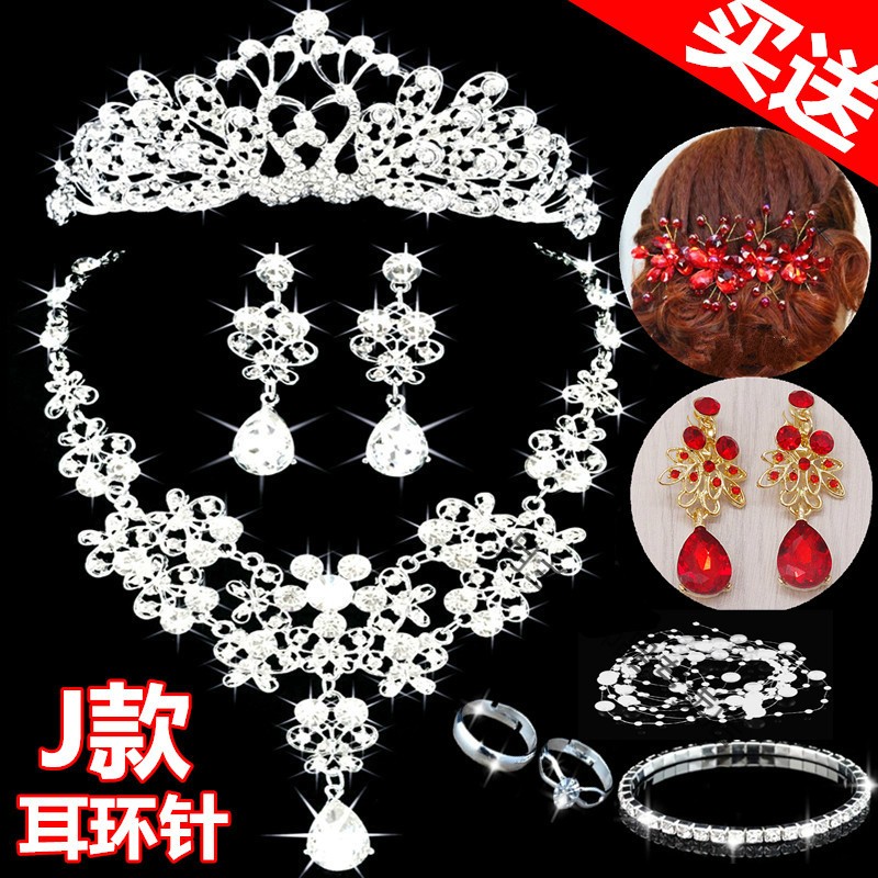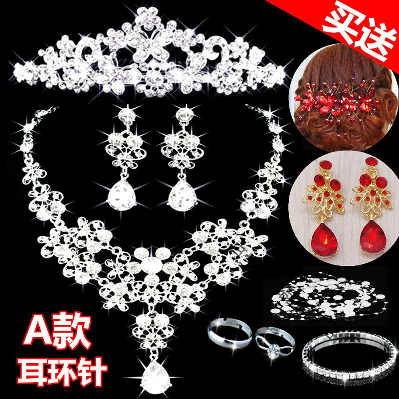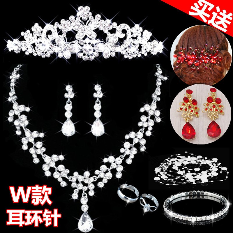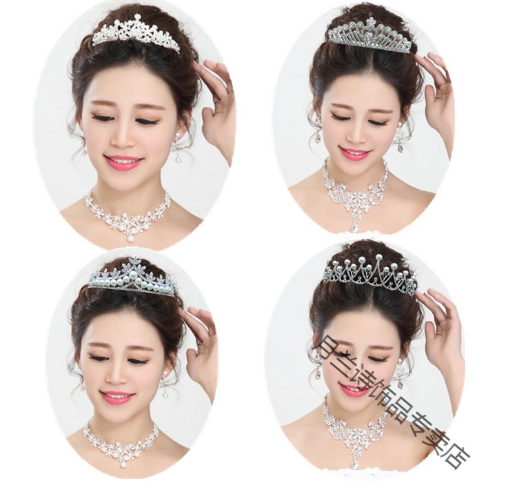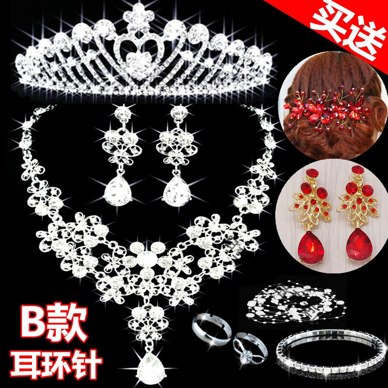 Bridal tiara three-piece set crown necklace set wedding celebration hair accessories wedding dress accessories Korean jewelry B style three-piece set earring clip