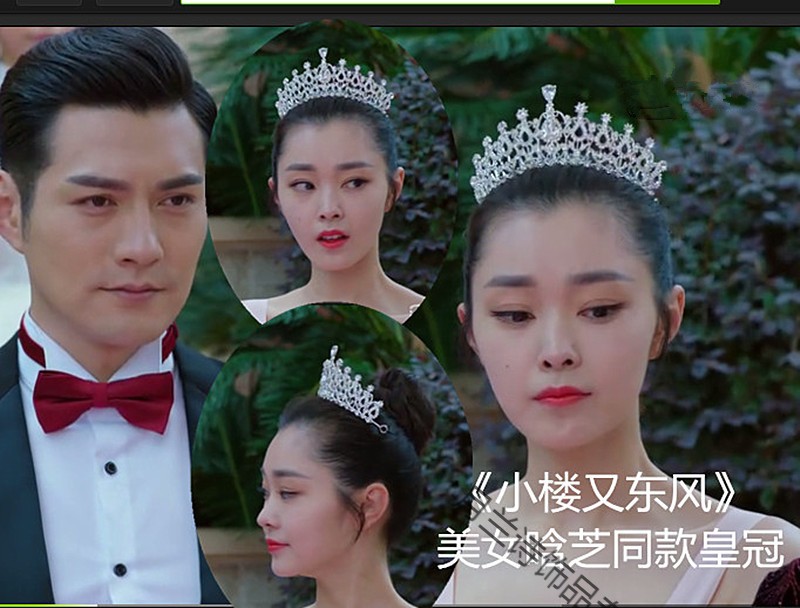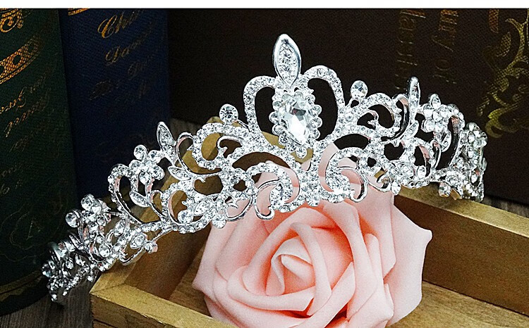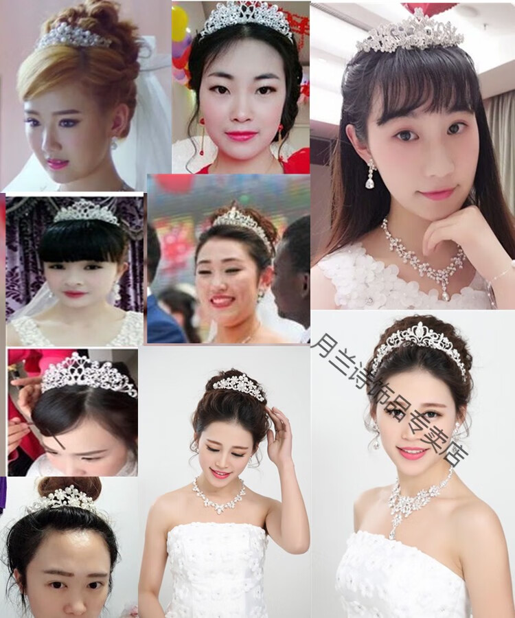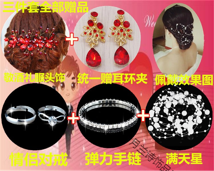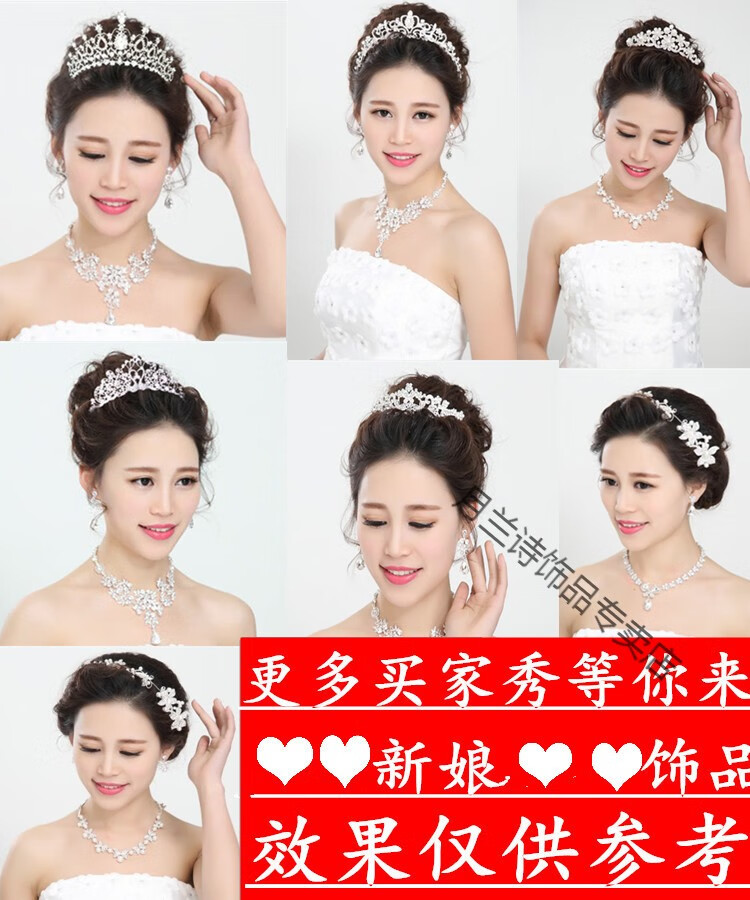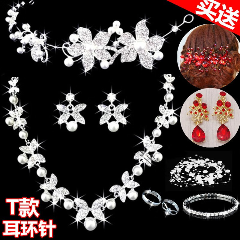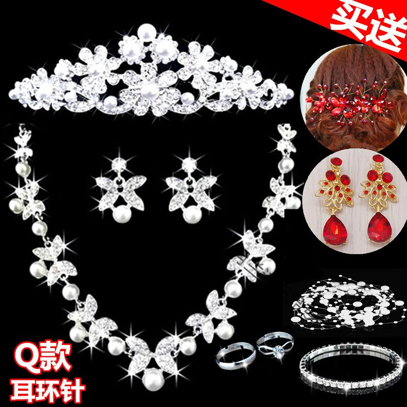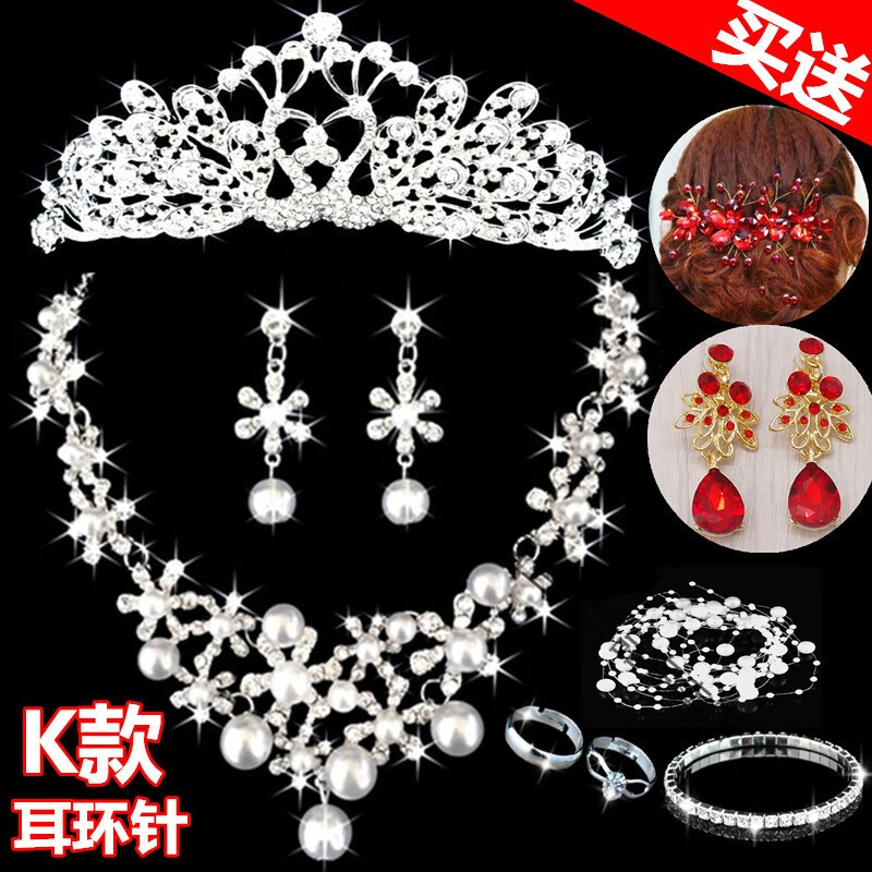 Bridal tiara three-piece set crown necklace set wedding celebration hair accessories wedding dress accessories Korean jewelry B style three-piece set earring clip