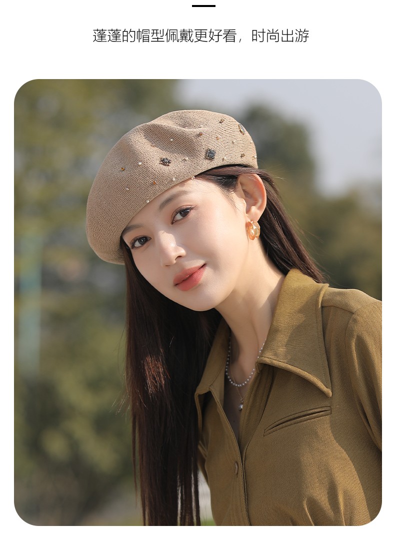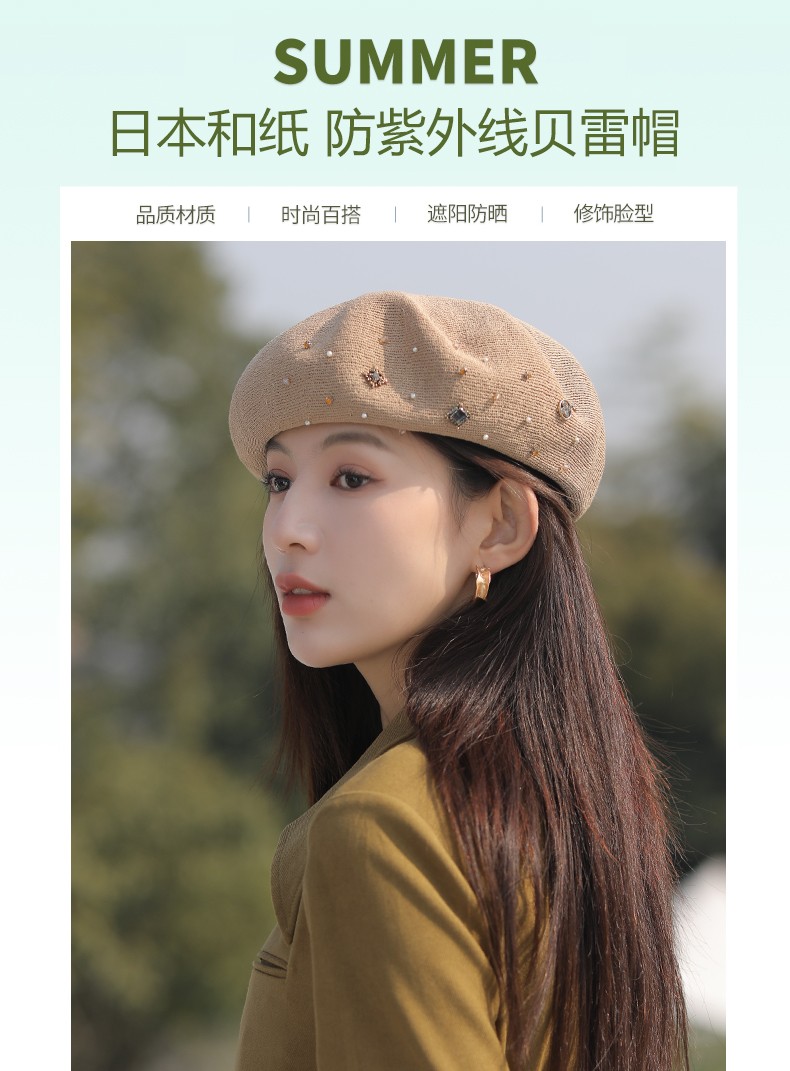 Xiangxue Yuxiu Japanese Japanese paper beret women's spring and summer breathable fashion versatile painter's hat elegant thin octagonal hat women's khaki color one size