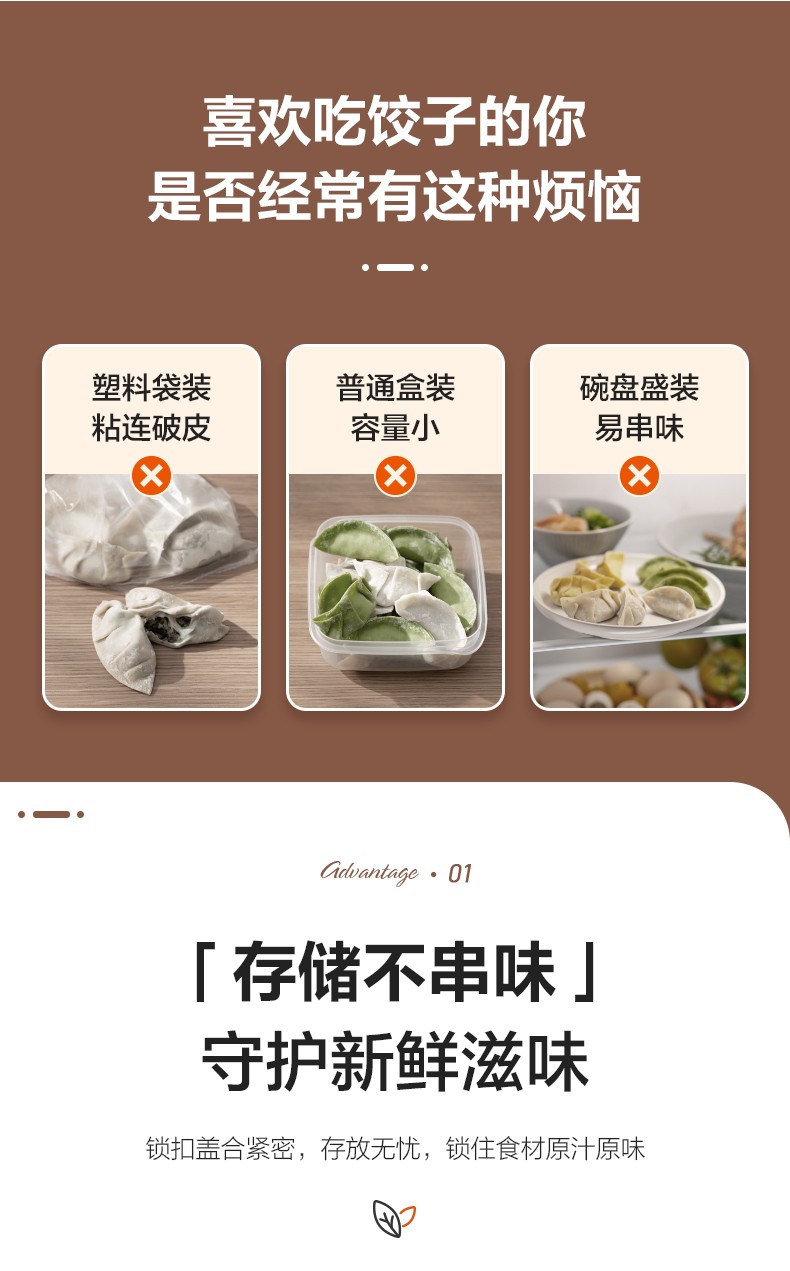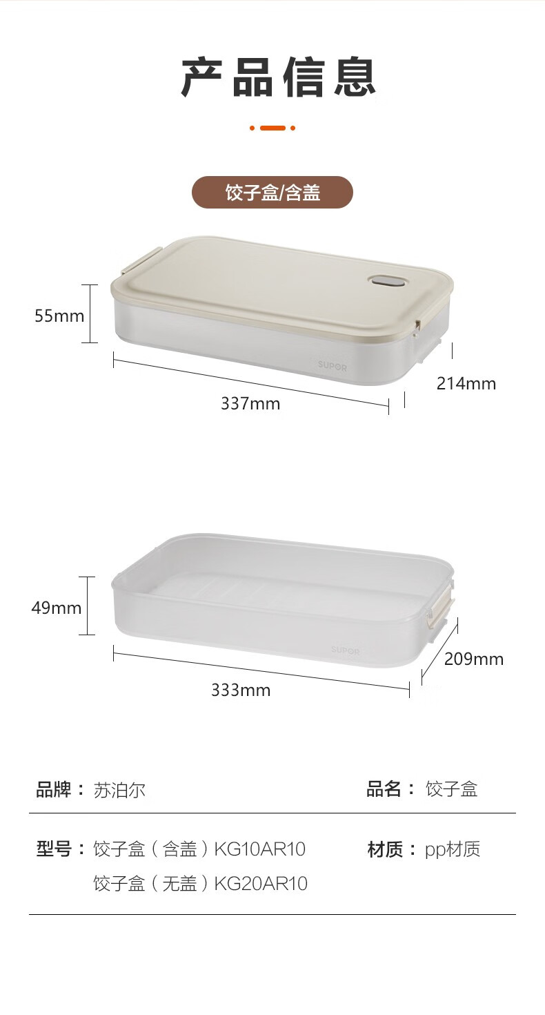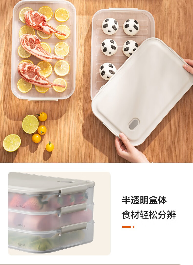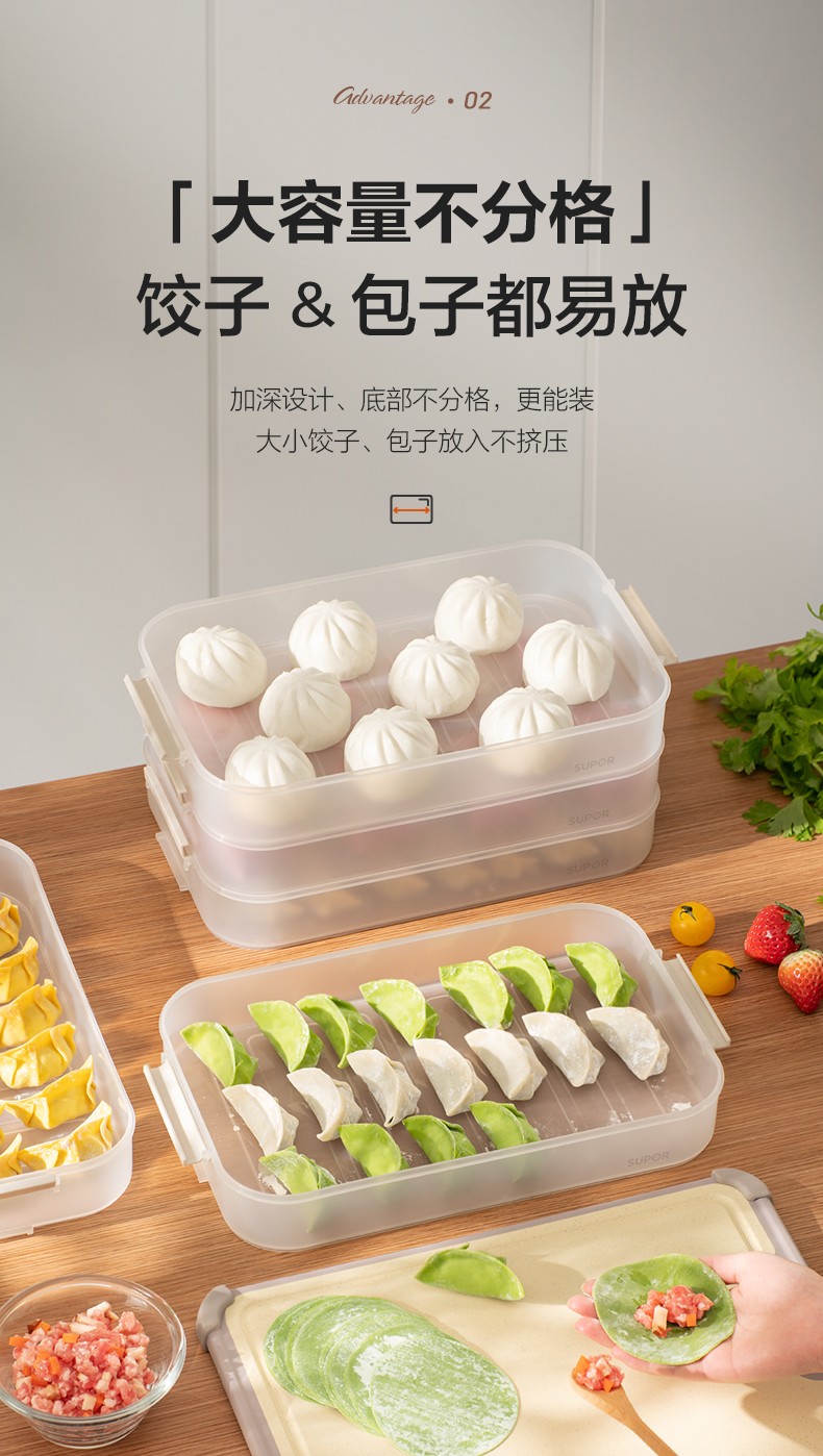 SUPOR food-grade plastic crisper refrigerator storage box dumpling box sealed quick-frozen freezer box dumpling box wonton box multi-functional dumpling box two layers and one lid