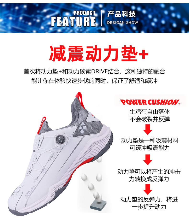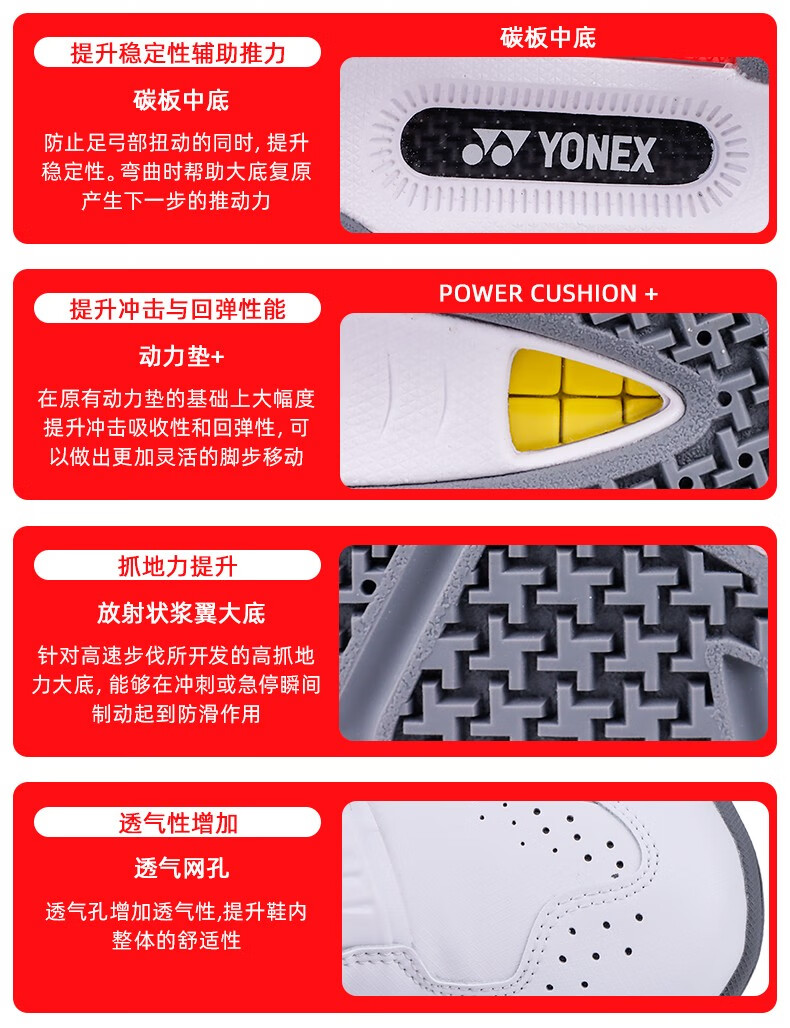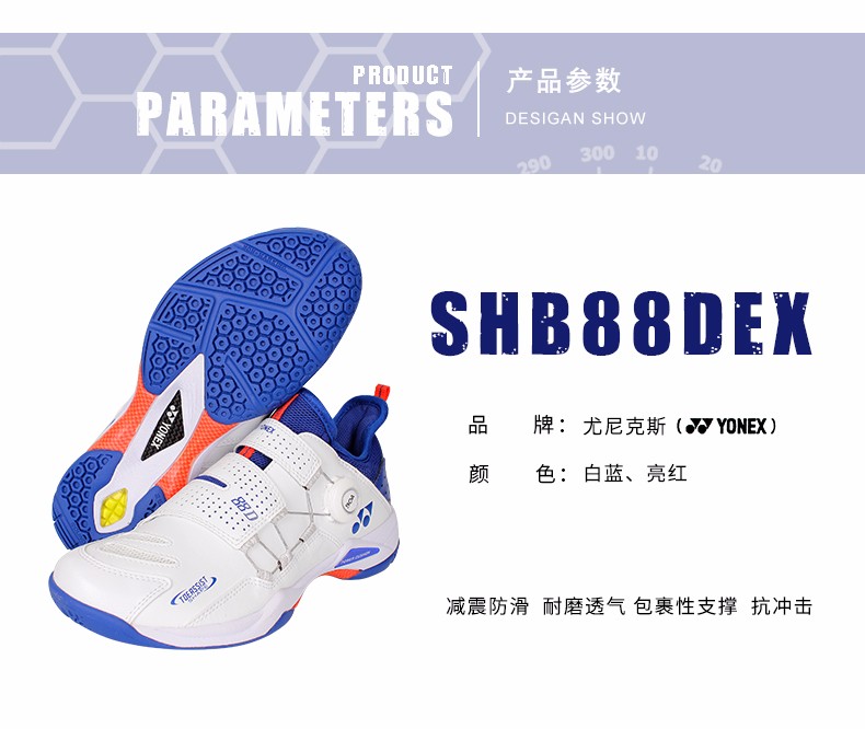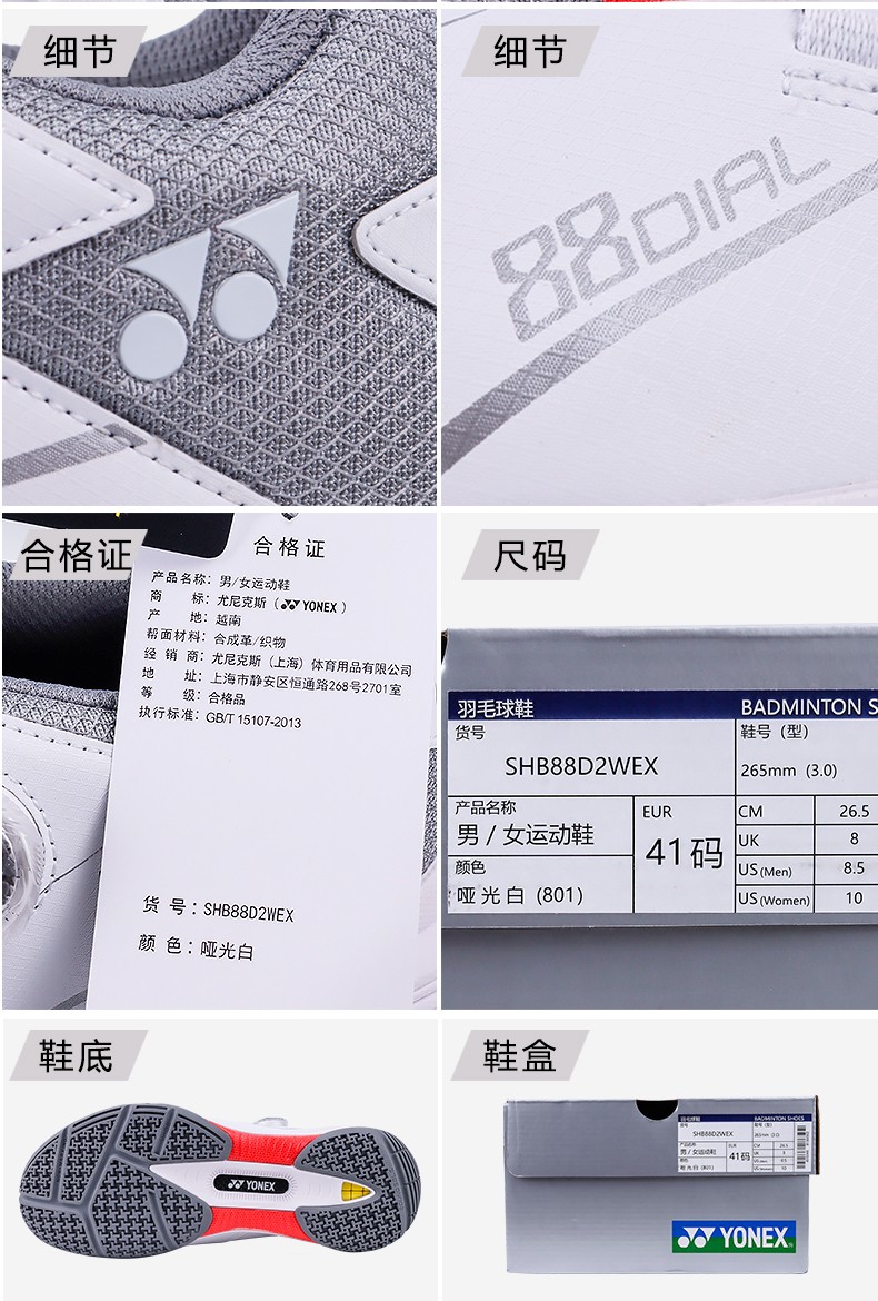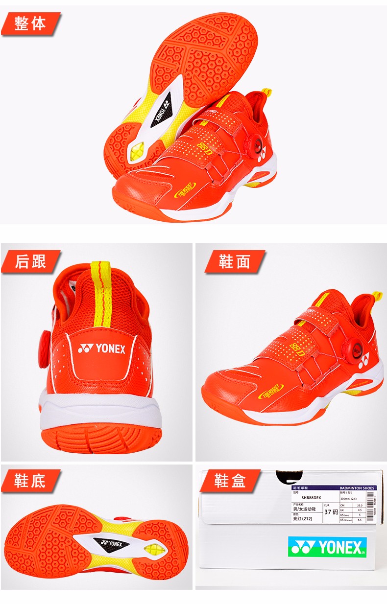 YONEX new product YONEX YY badminton shoes SHB88D men's and women's BOA vibration-absorbing force pad SHB88D2WEX SHB88D2EX black and red 42 (270mm)