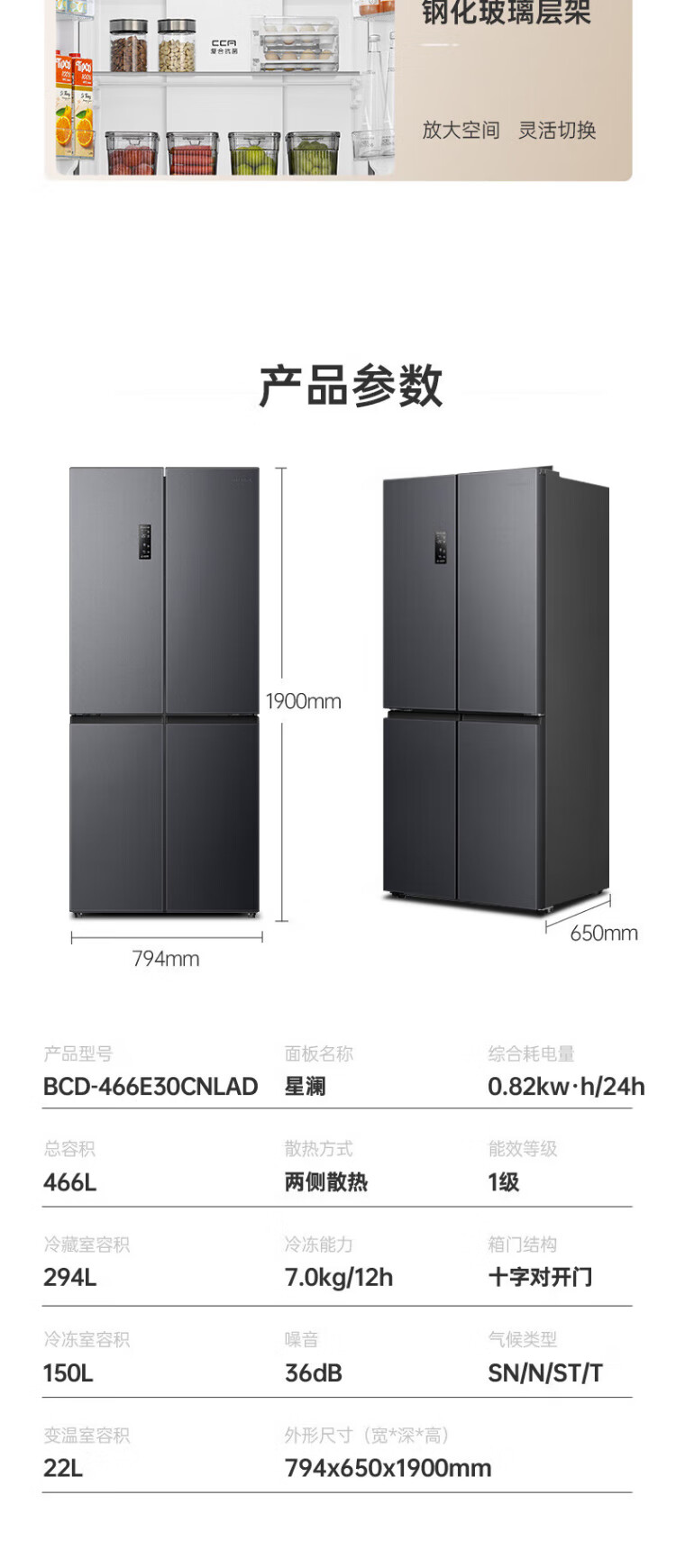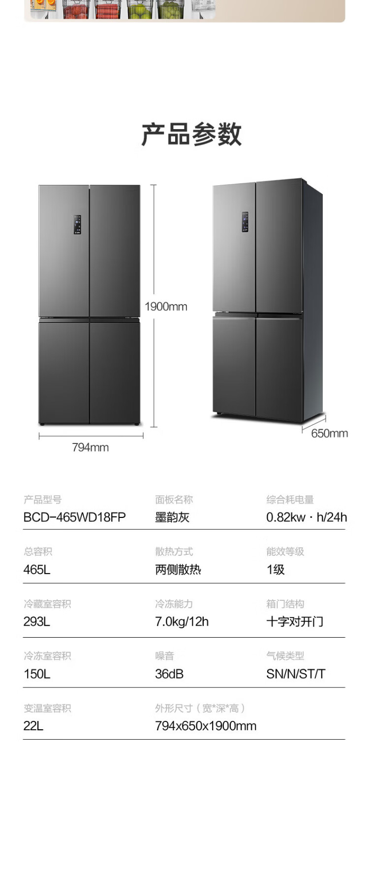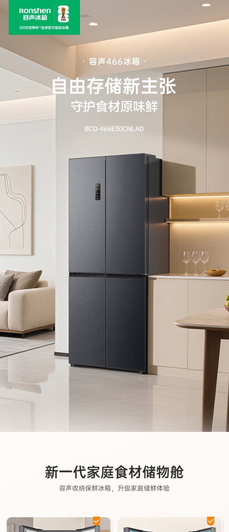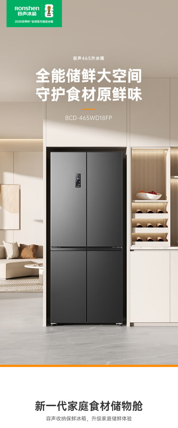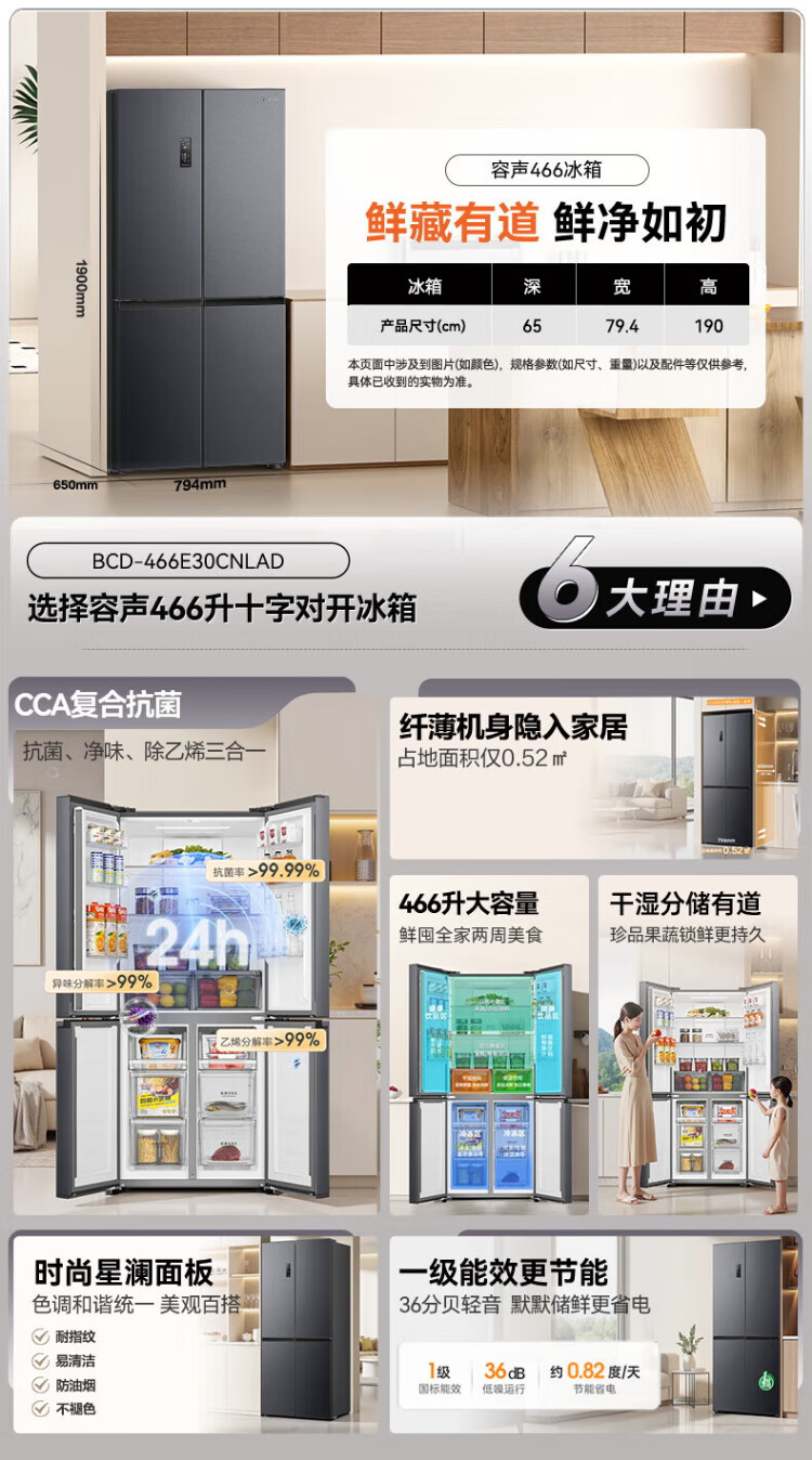Rongsheng 465-liter cross double-open four-door refrigerator household first-class energy efficiency air-cooled frost-free frequency conversion energy-saving ultra-thin large capacity BCD-465WD18FP home appliances national subsidy 465L hot-selling model across the entire network