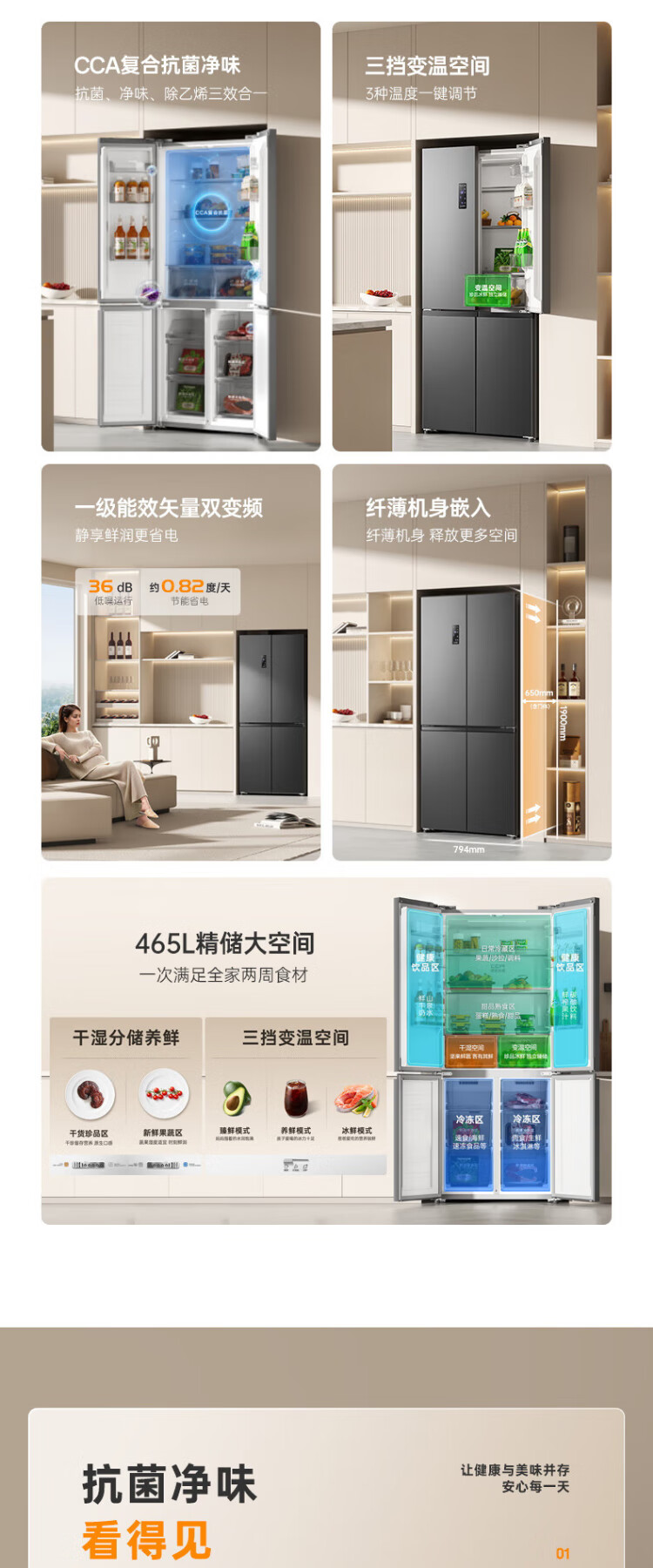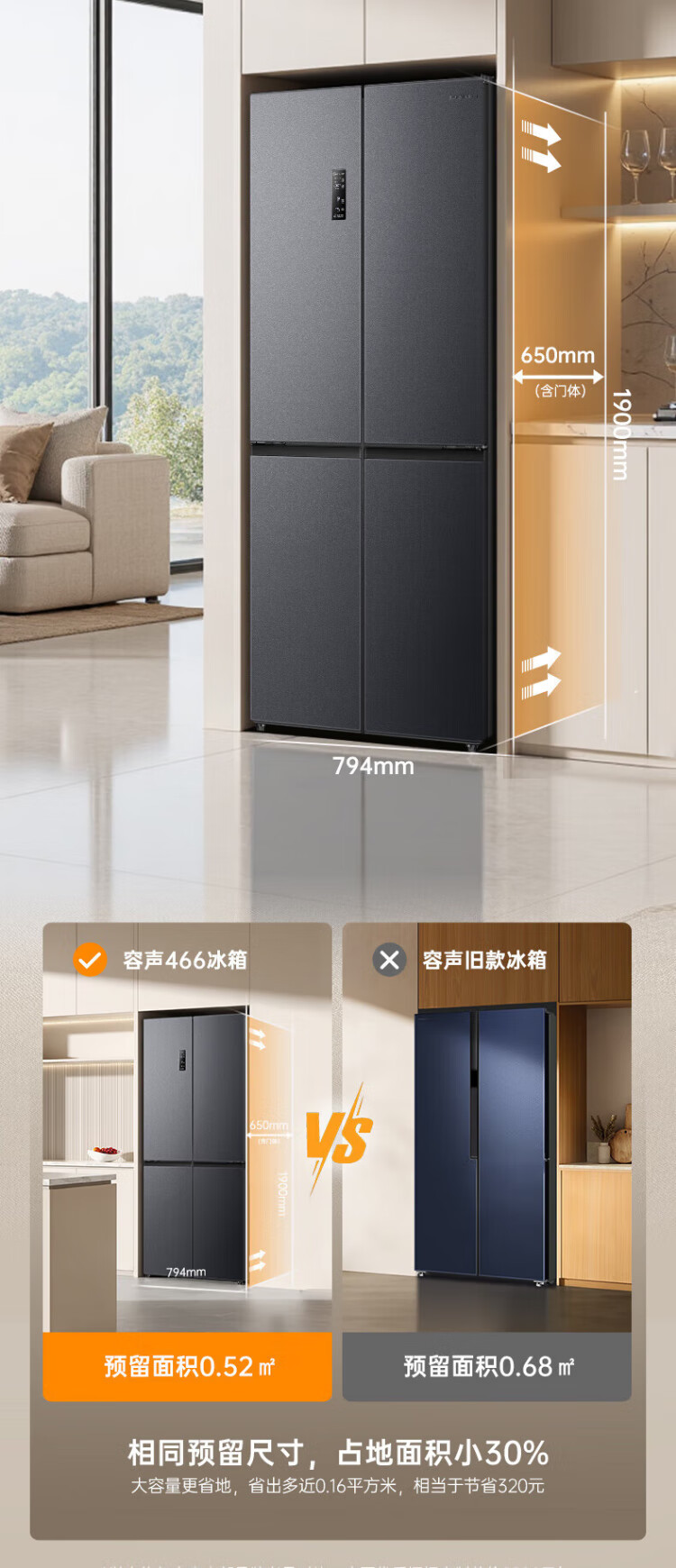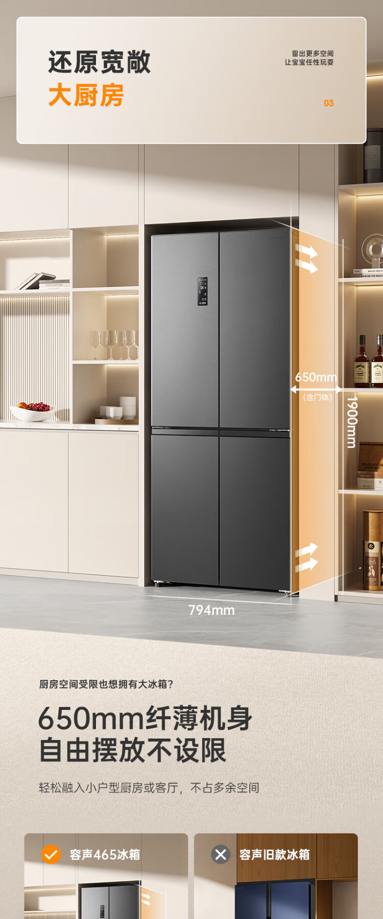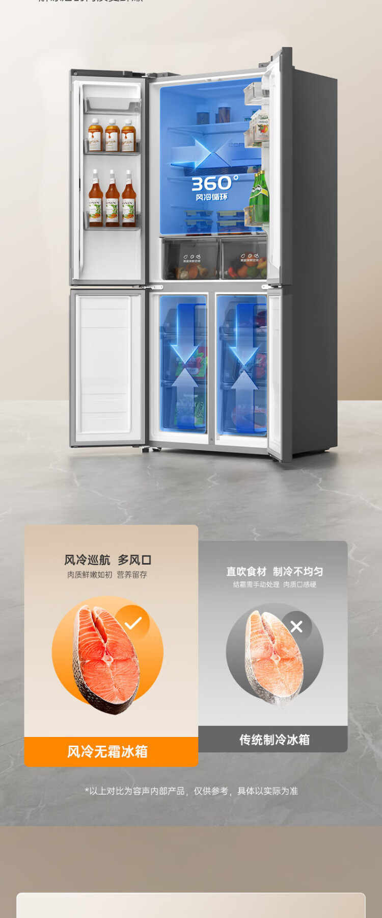 Rongsheng 465-liter cross double-open four-door refrigerator household first-class energy efficiency air-cooled frost-free frequency conversion energy-saving ultra-thin large capacity BCD-465WD18FP home appliances national subsidy 465L hot-selling model across the entire network