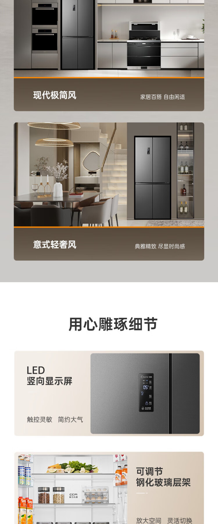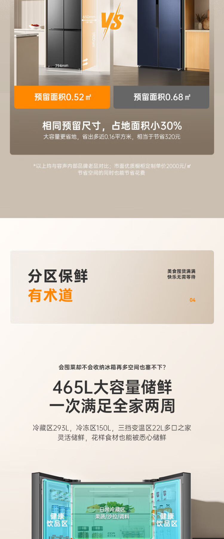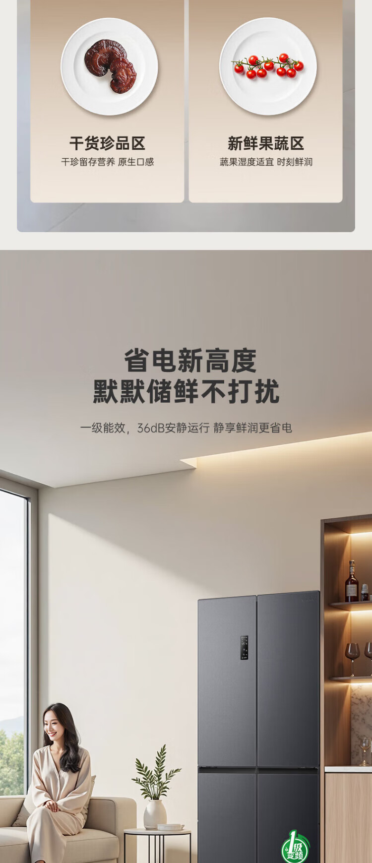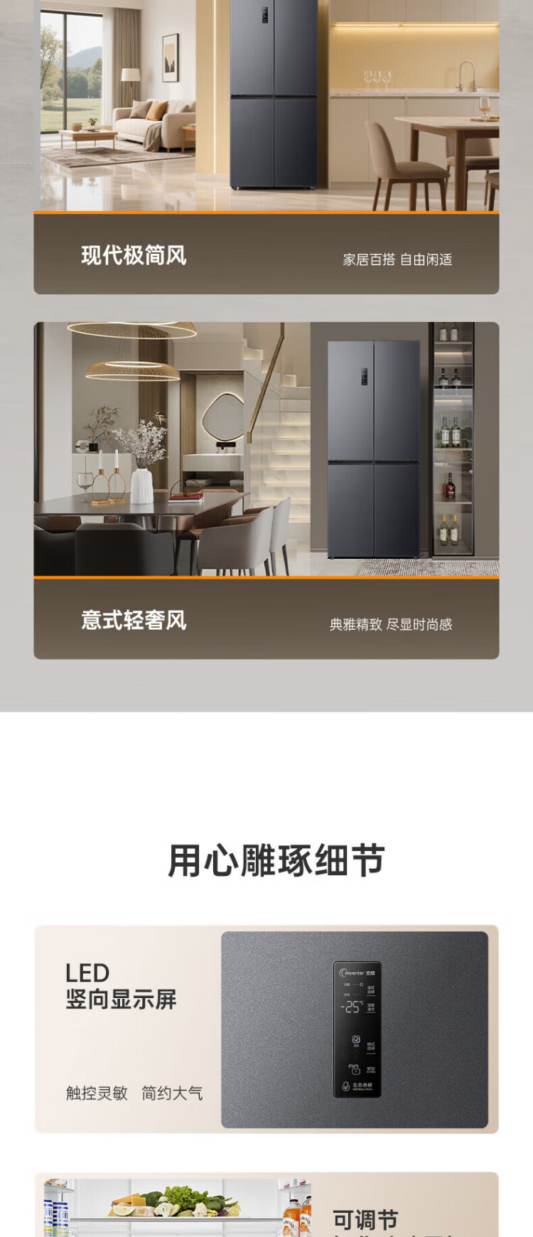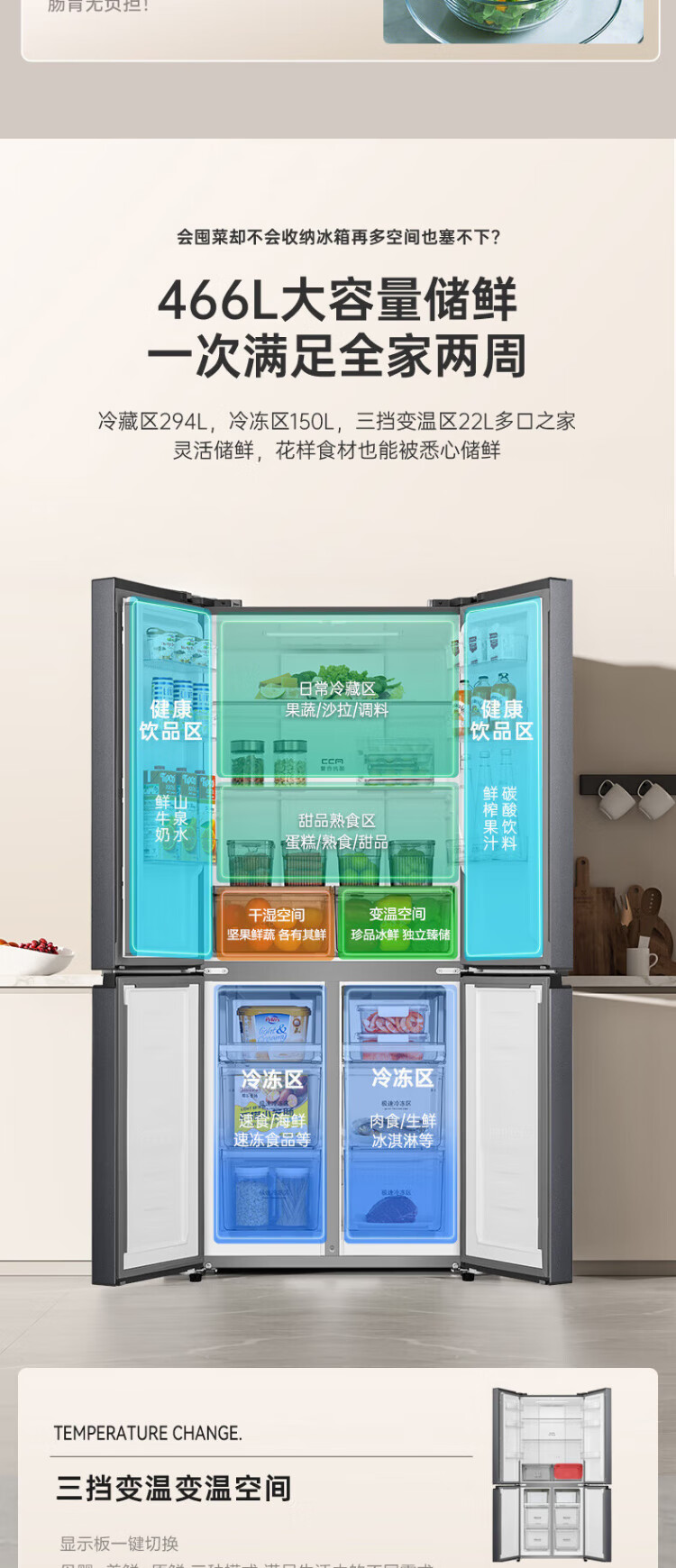Rongsheng 465-liter cross double-open four-door refrigerator household first-class energy efficiency air-cooled frost-free frequency conversion energy-saving ultra-thin large capacity BCD-465WD18FP home appliances national subsidy 465L hot-selling model across the entire network