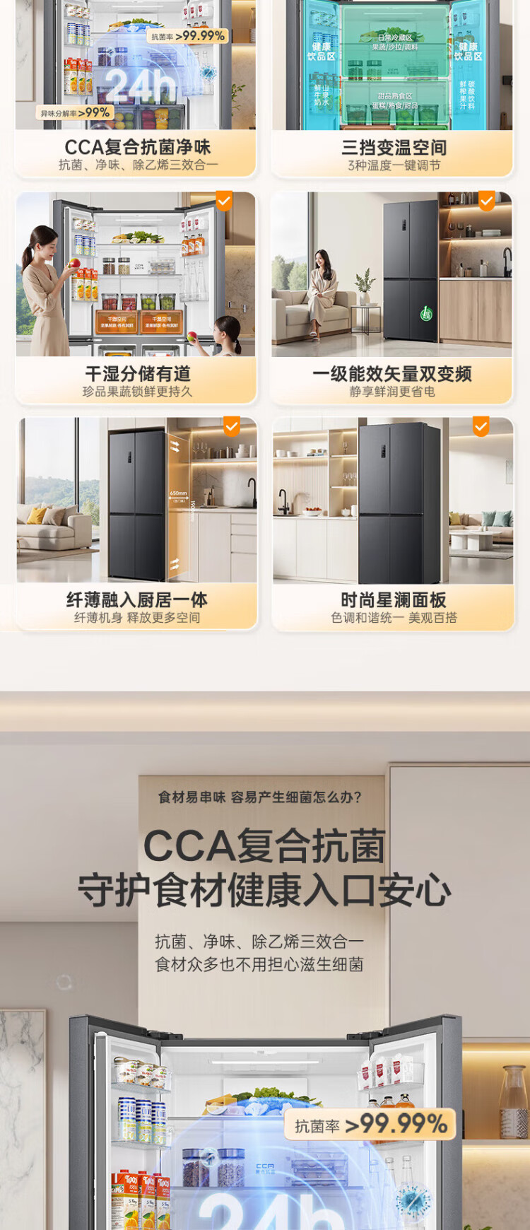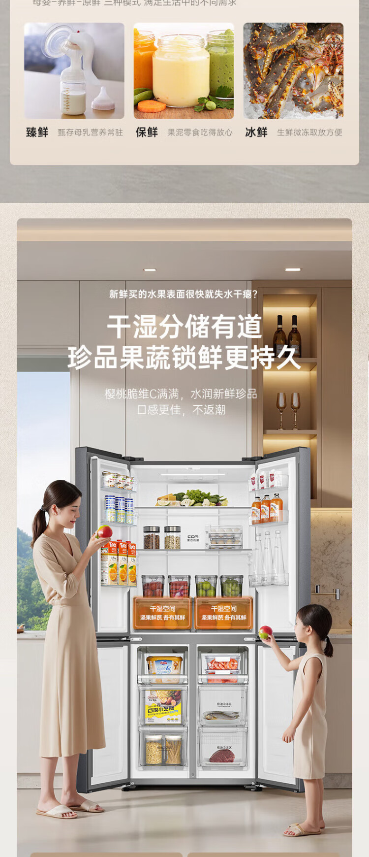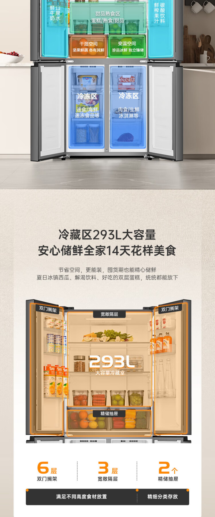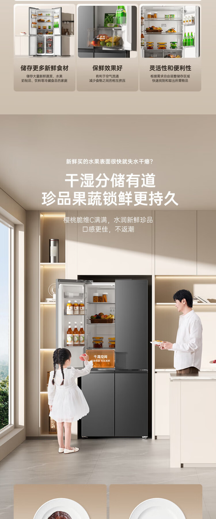 Rongsheng 465-liter cross double-open four-door refrigerator household first-class energy efficiency air-cooled frost-free frequency conversion energy-saving ultra-thin large capacity BCD-465WD18FP home appliances national subsidy 465L hot-selling model across the entire network