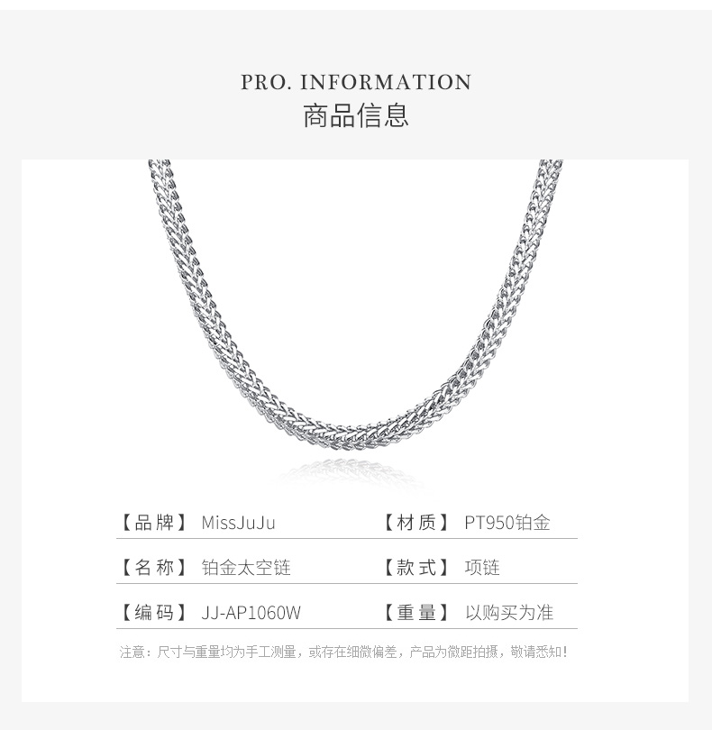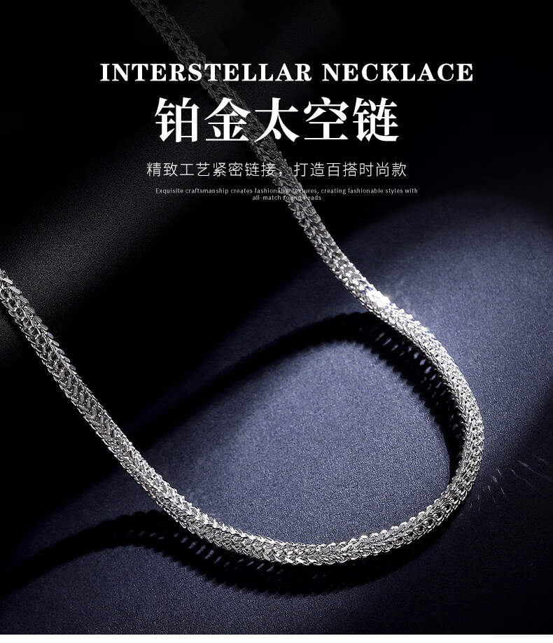 Miss JuJu pt950 platinum necklace for men, platinum domineering dragon space chain, thick and atmospheric Chopard chain plain chain long necklace, weight 30.16g, length 60cm, thickness about 3.0mm,