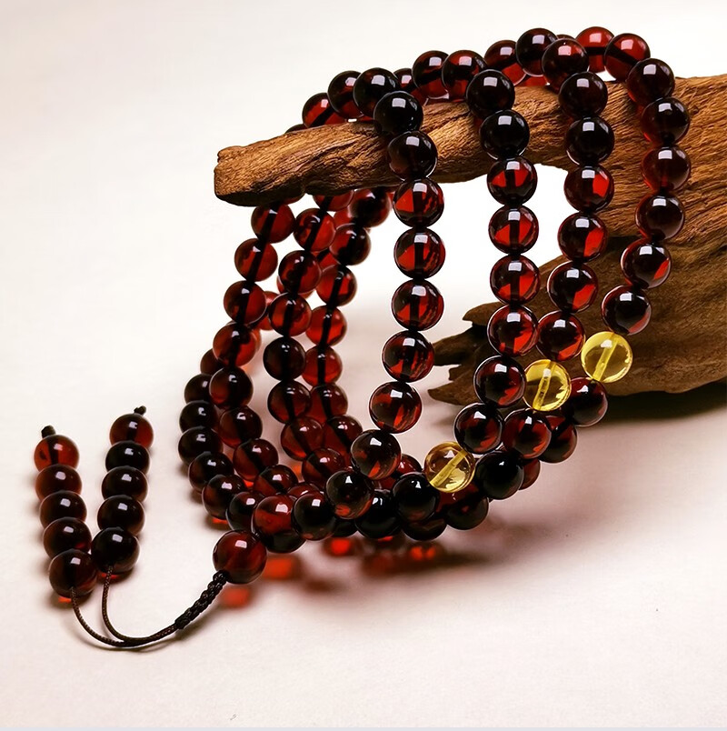 Amber style, one thing, one picture, one certificate, amber bead bracelet, 108 necklaces, men's and women's bracelets, prayer beads, beads, 35.89 g, 8 mm