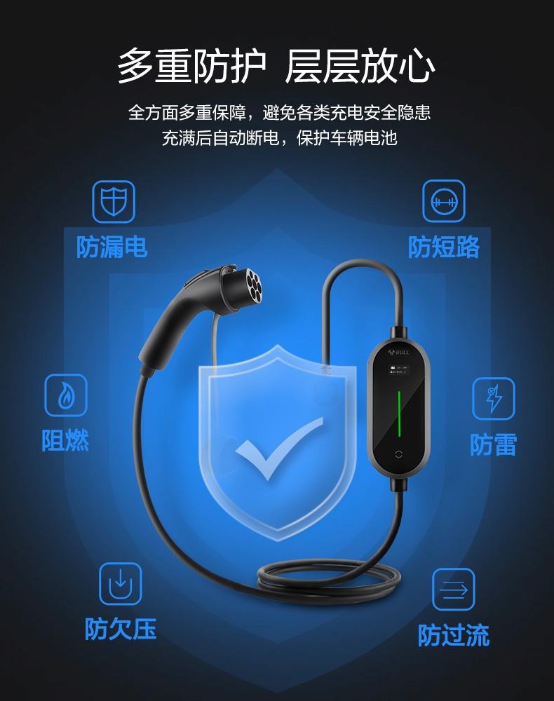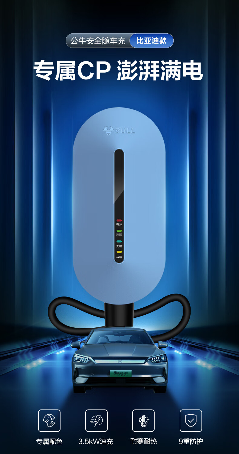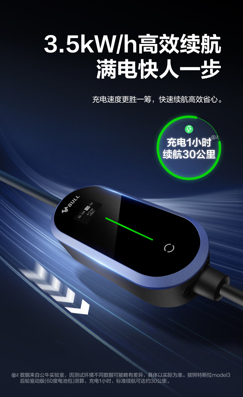 Bull (BULL) car charger 3.5kw/7kw household new energy vehicle charging gun adapted to Tesla models, Lynk & Co Volkswagen ideal BYD Ian portable charger 3.5kw fashion model - 5 meters
