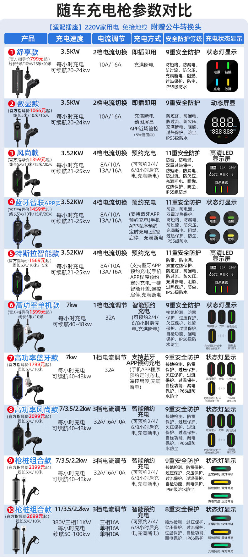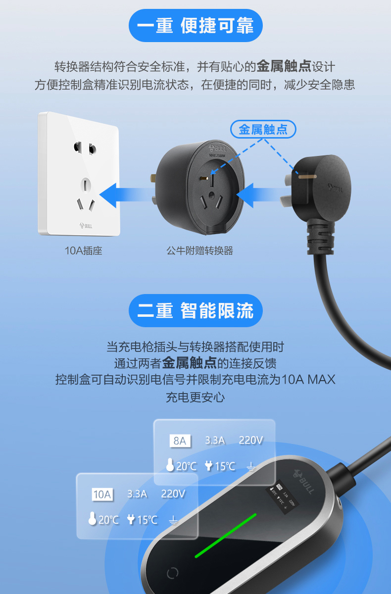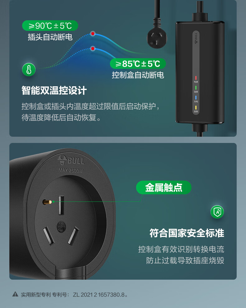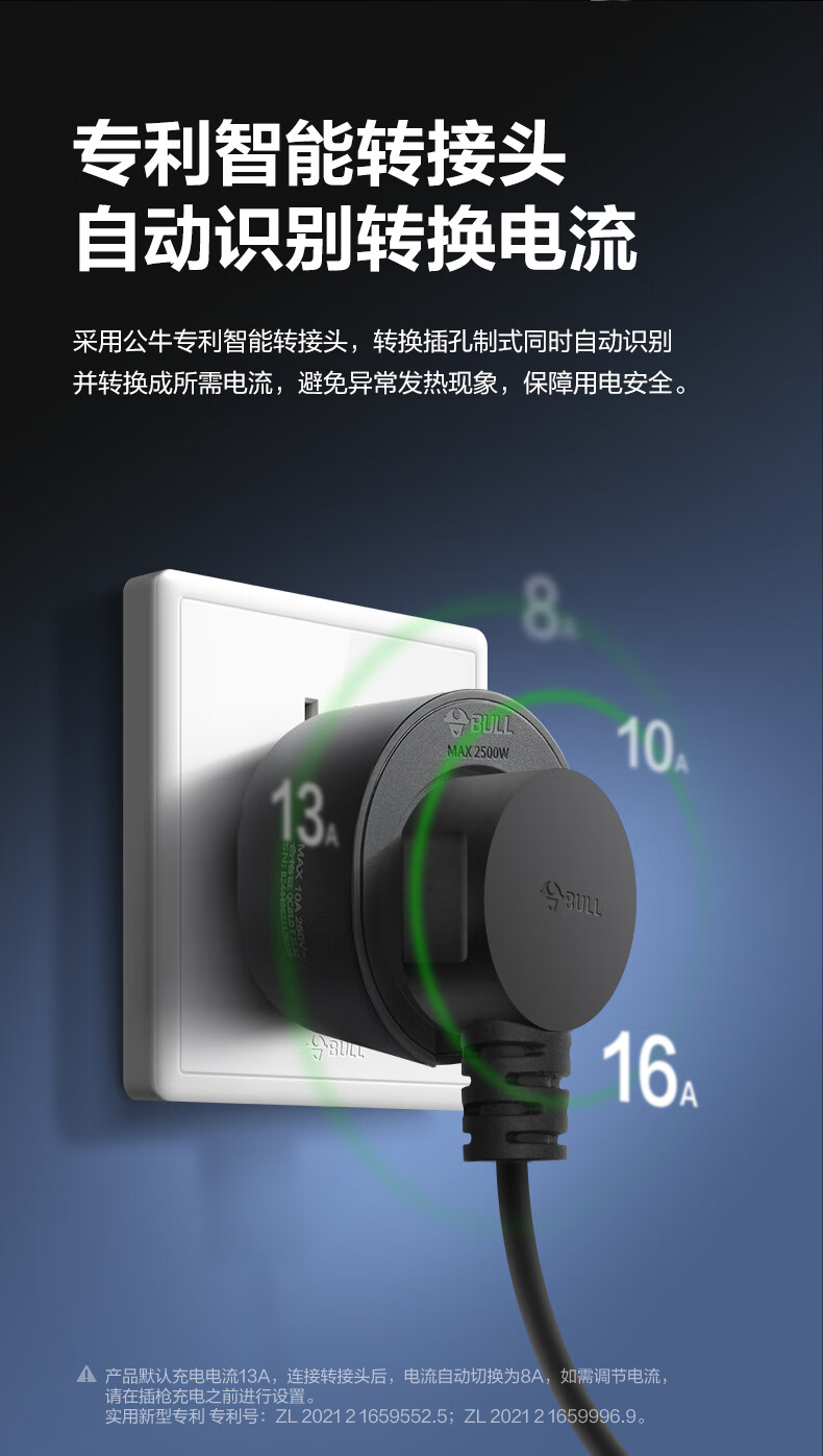 Bull (BULL) car charger 3.5kw/7kw household new energy vehicle charging gun adapted to Tesla models, Lynk & Co Volkswagen ideal BYD Ian portable charger 3.5kw fashion model - 5 meters