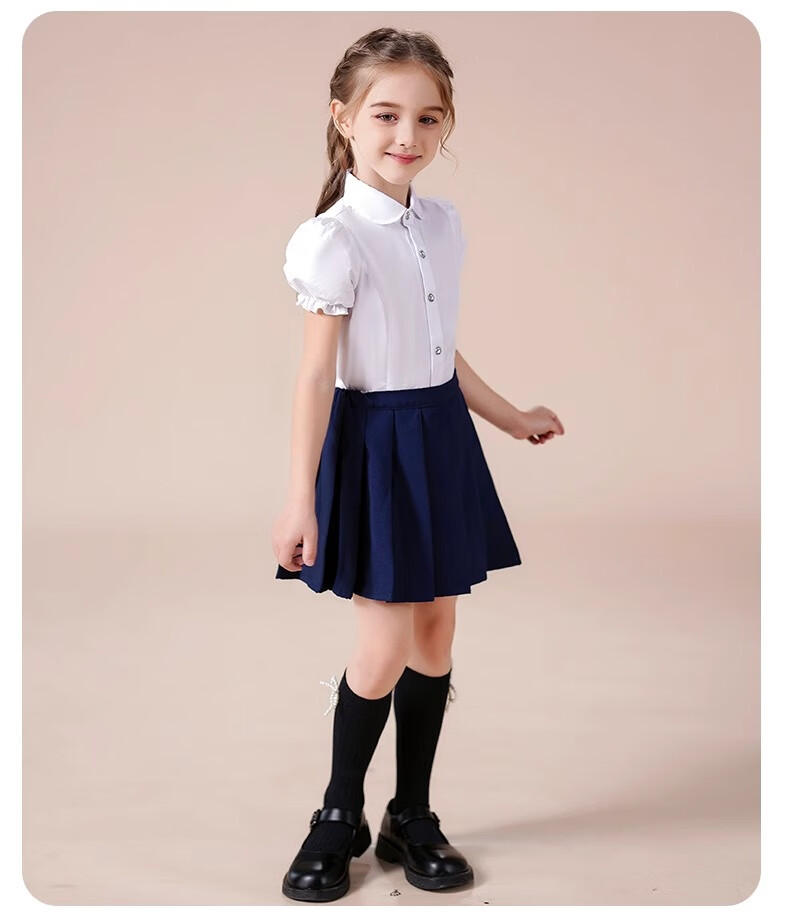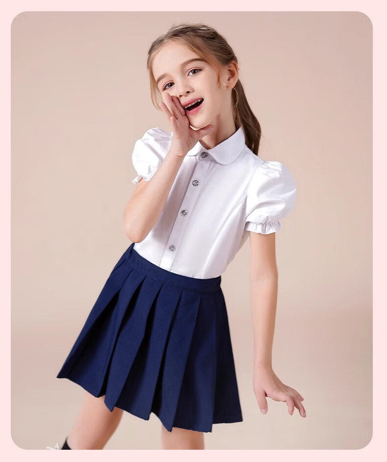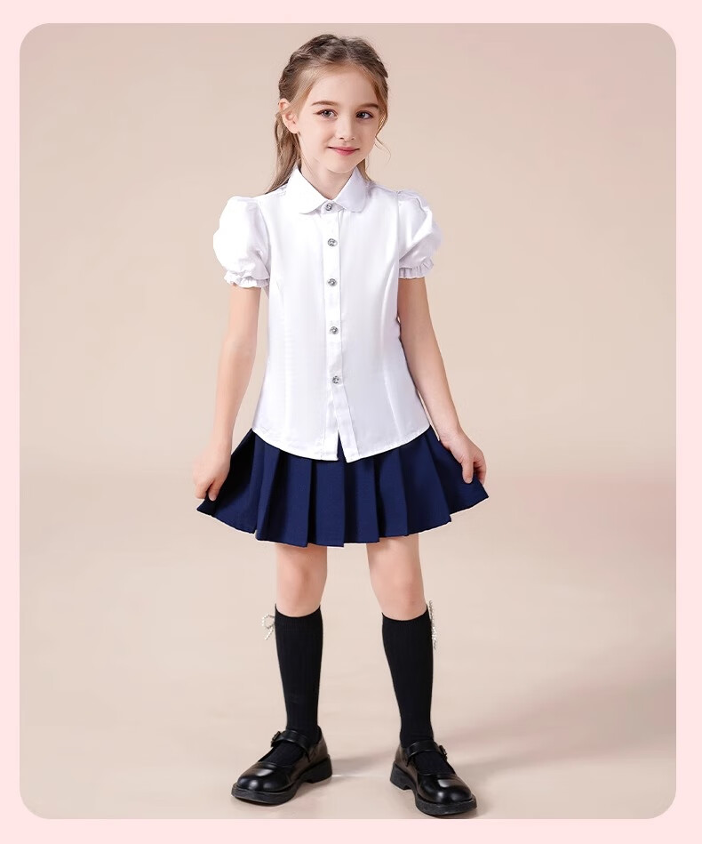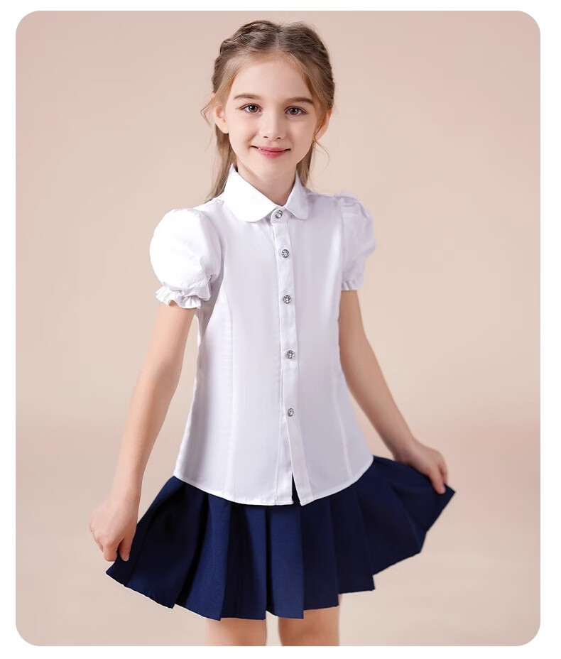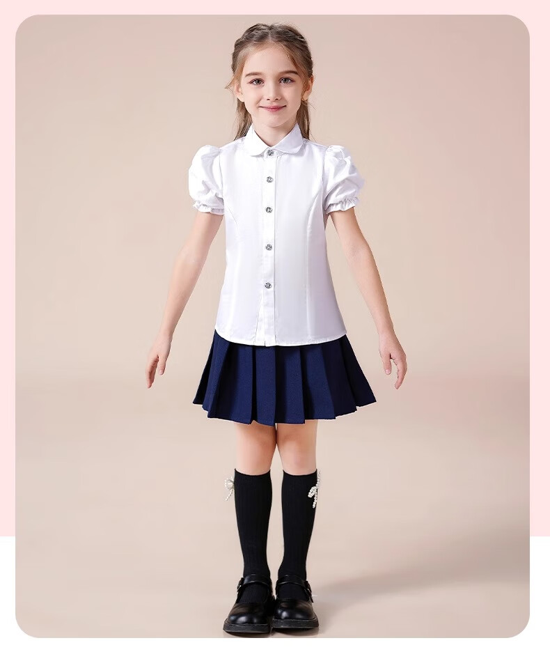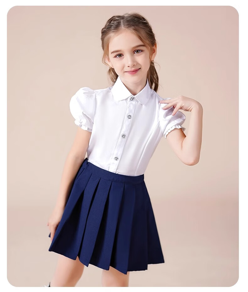 Luo Meng girls short-sleeved shirt summer big children's shirt primary school students white shirt graduation performance clothing pure white 160