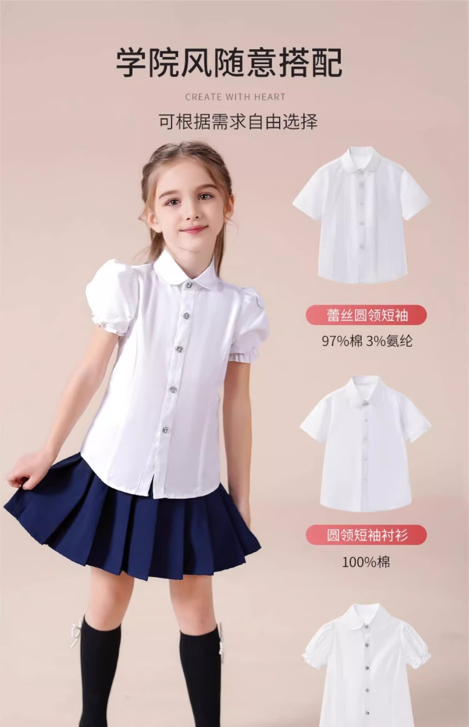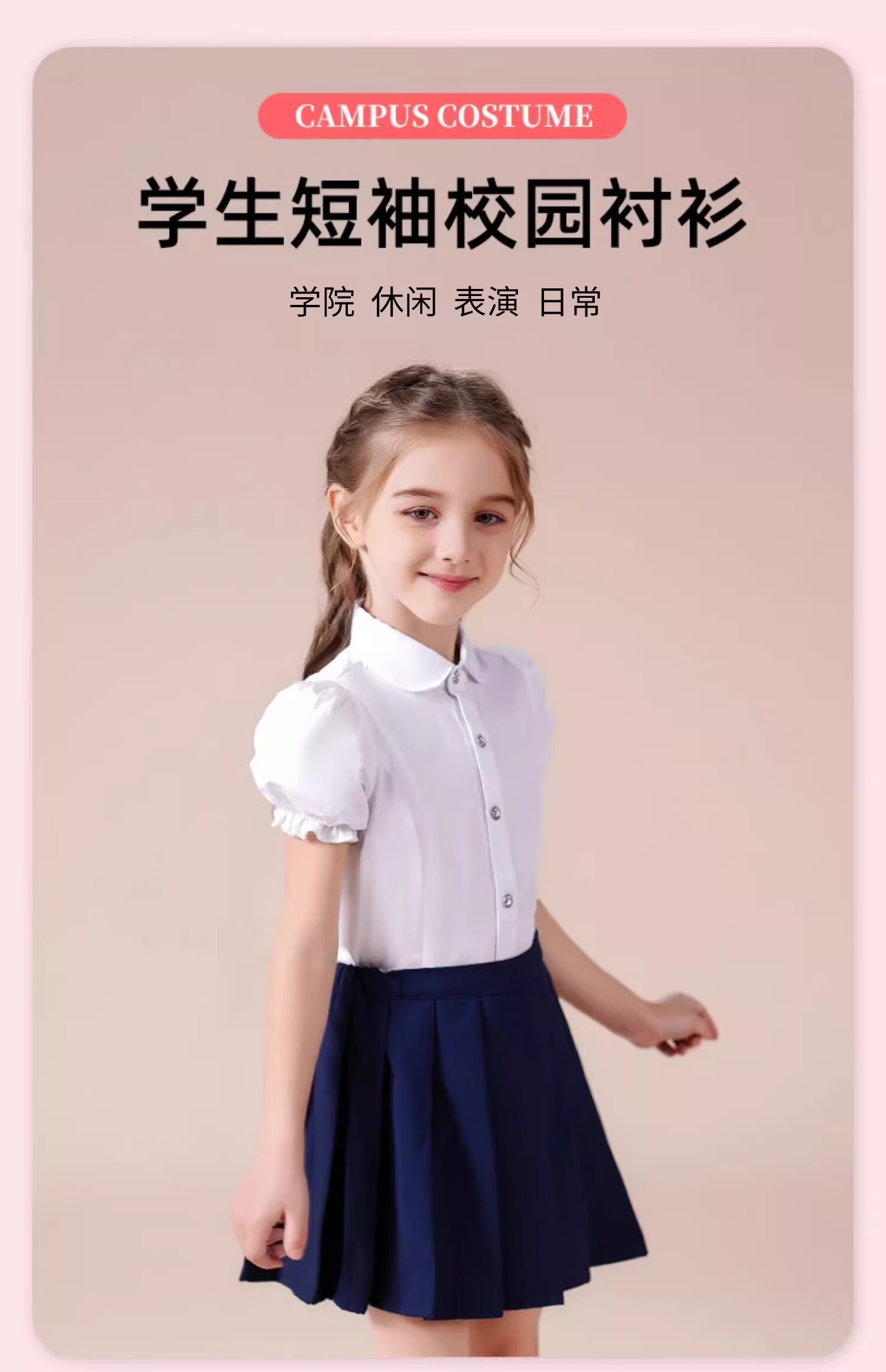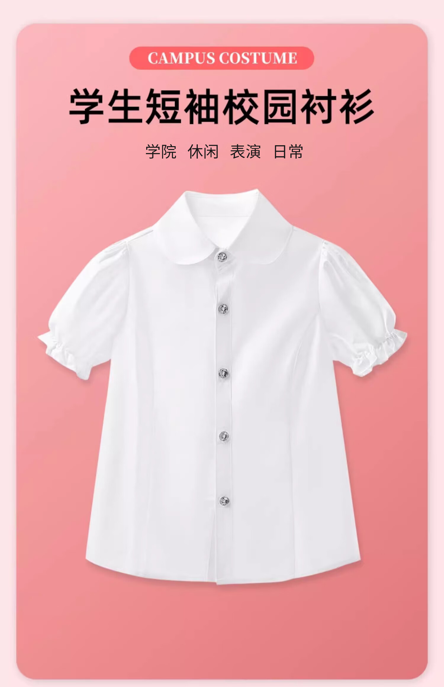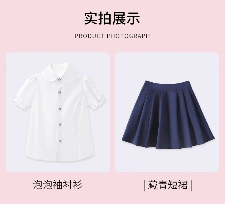 Luo Meng girls short-sleeved shirt summer big children's shirt primary school students white shirt graduation performance clothing pure white 160