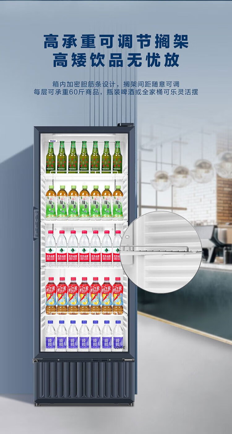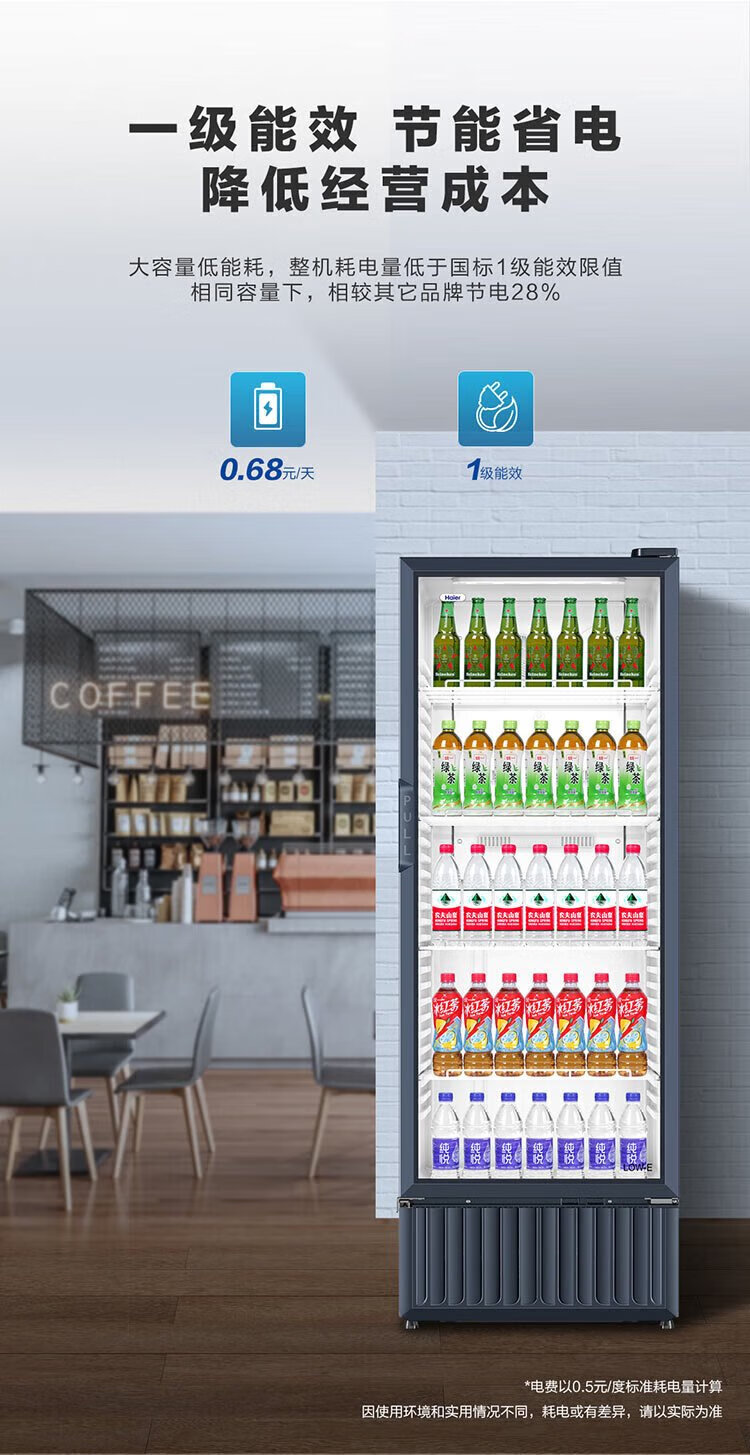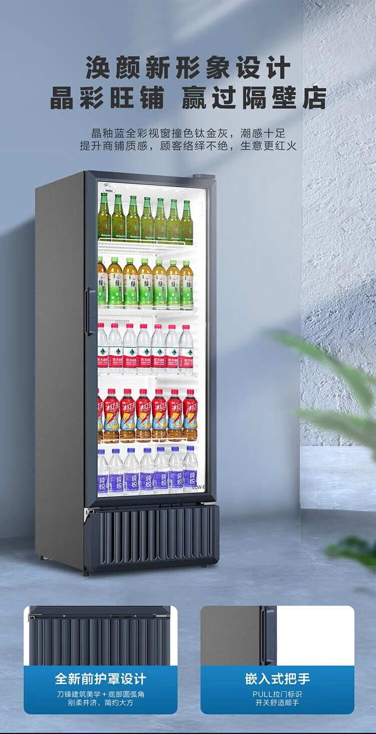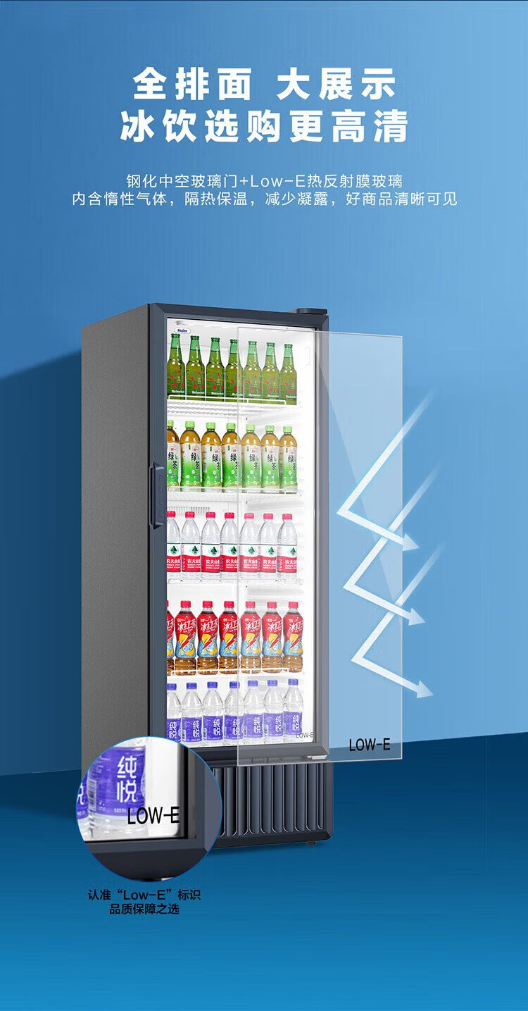 Haier air-cooled frost-free display cabinet commercial first-class energy-efficiency refrigerated fresh-keeping cabinet vertical beverage cabinet fruit and vegetable fresh-keeping cabinet transparent glass door supermarket convenience store refrigerator beer 239 liters / four-story height 1.51 meters / approximately 143 bottles 239 liters