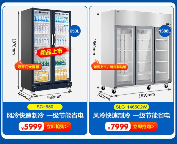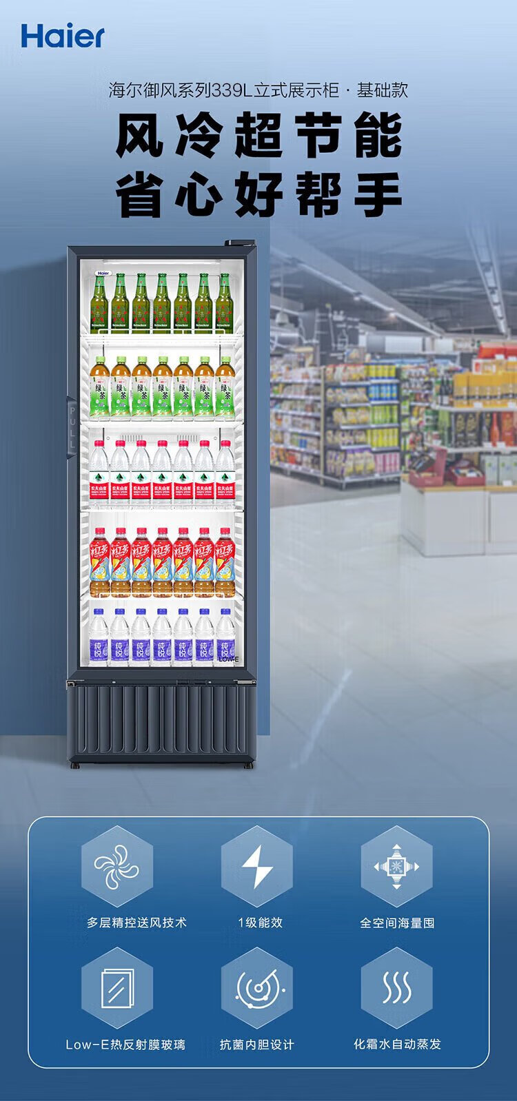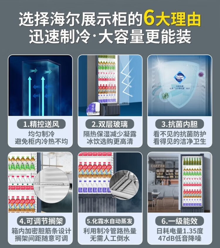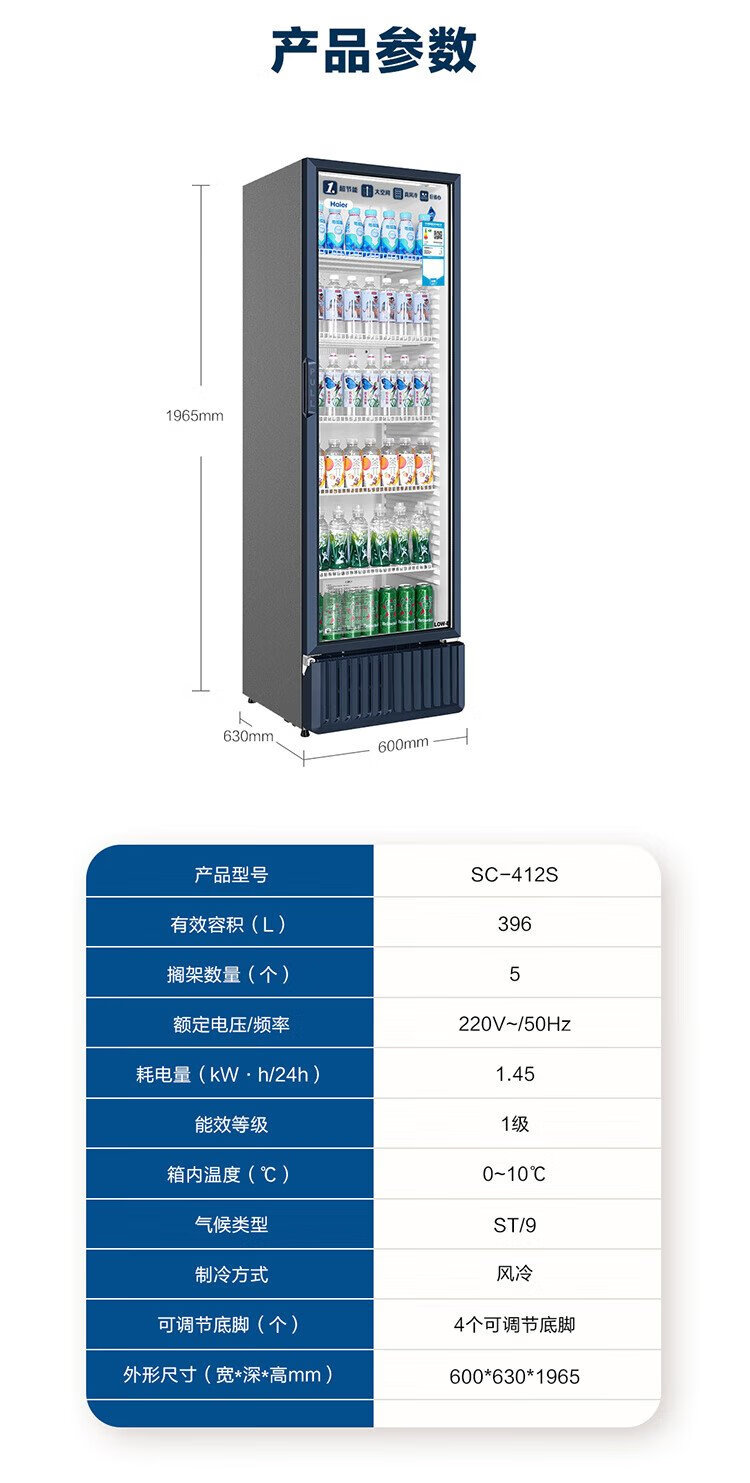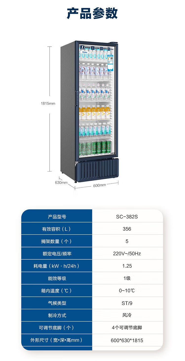 Haier air-cooled frost-free display cabinet commercial first-class energy-efficiency refrigerated fresh-keeping cabinet vertical beverage cabinet fruit and vegetable fresh-keeping cabinet transparent glass door supermarket convenience store refrigerator beer 239 liters / four-story height 1.51 meters / approximately 143 bottles 239 liters