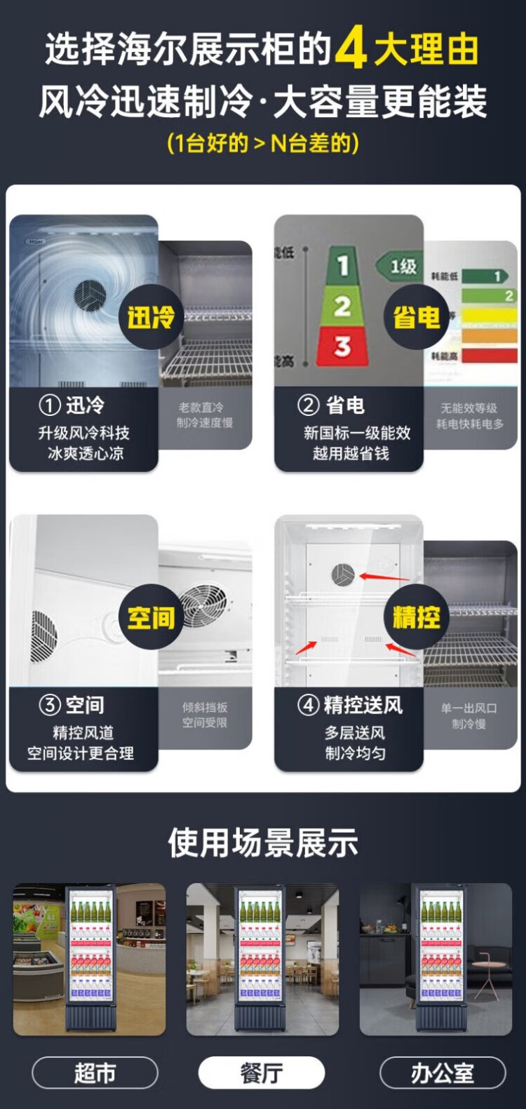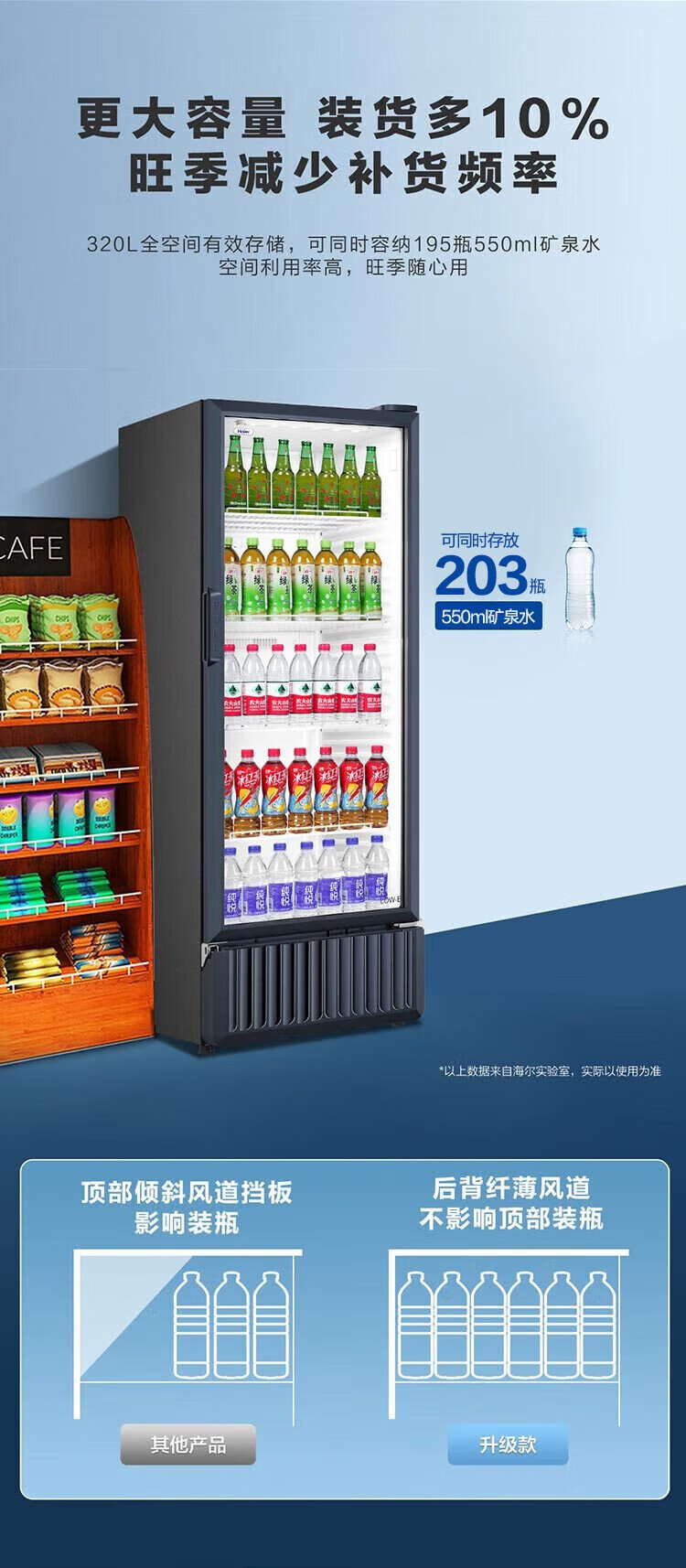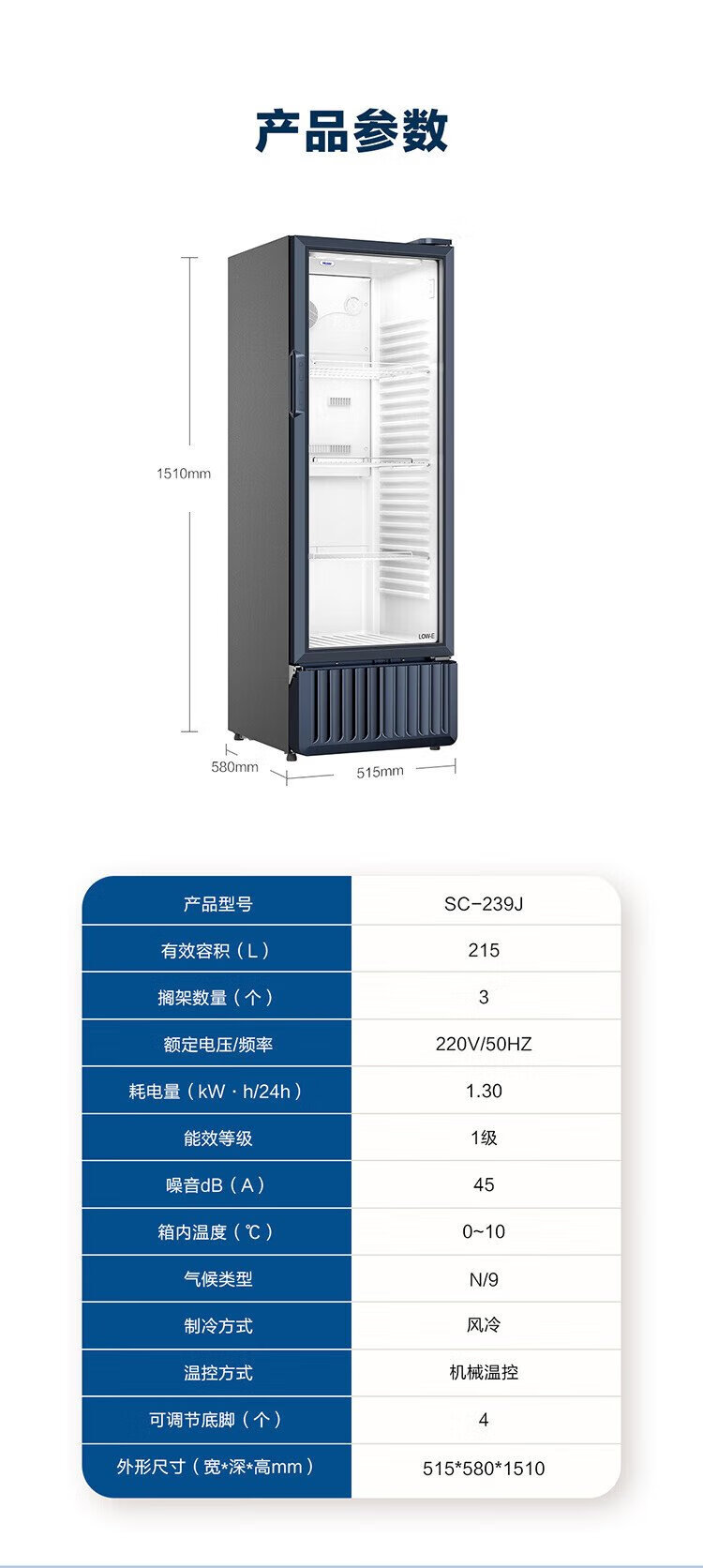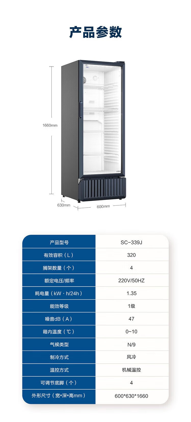 Haier air-cooled frost-free display cabinet commercial first-class energy-efficiency refrigerated fresh-keeping cabinet vertical beverage cabinet fruit and vegetable fresh-keeping cabinet transparent glass door supermarket convenience store refrigerator beer 239 liters / four-story height 1.51 meters / approximately 143 bottles 239 liters