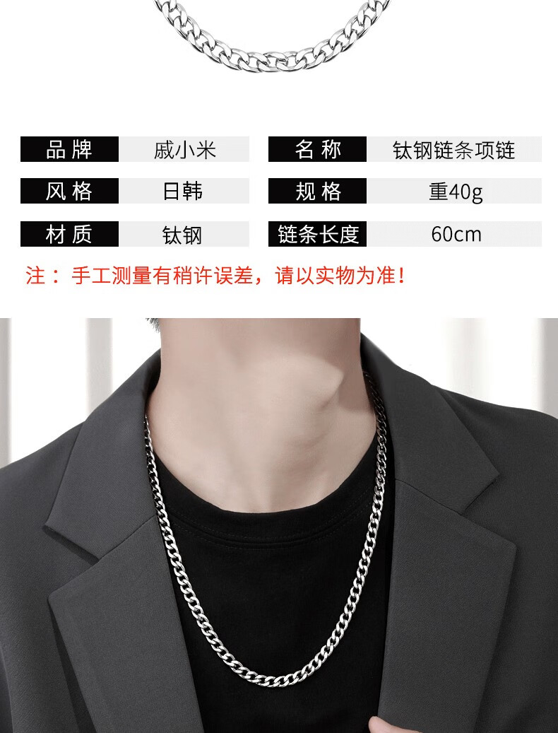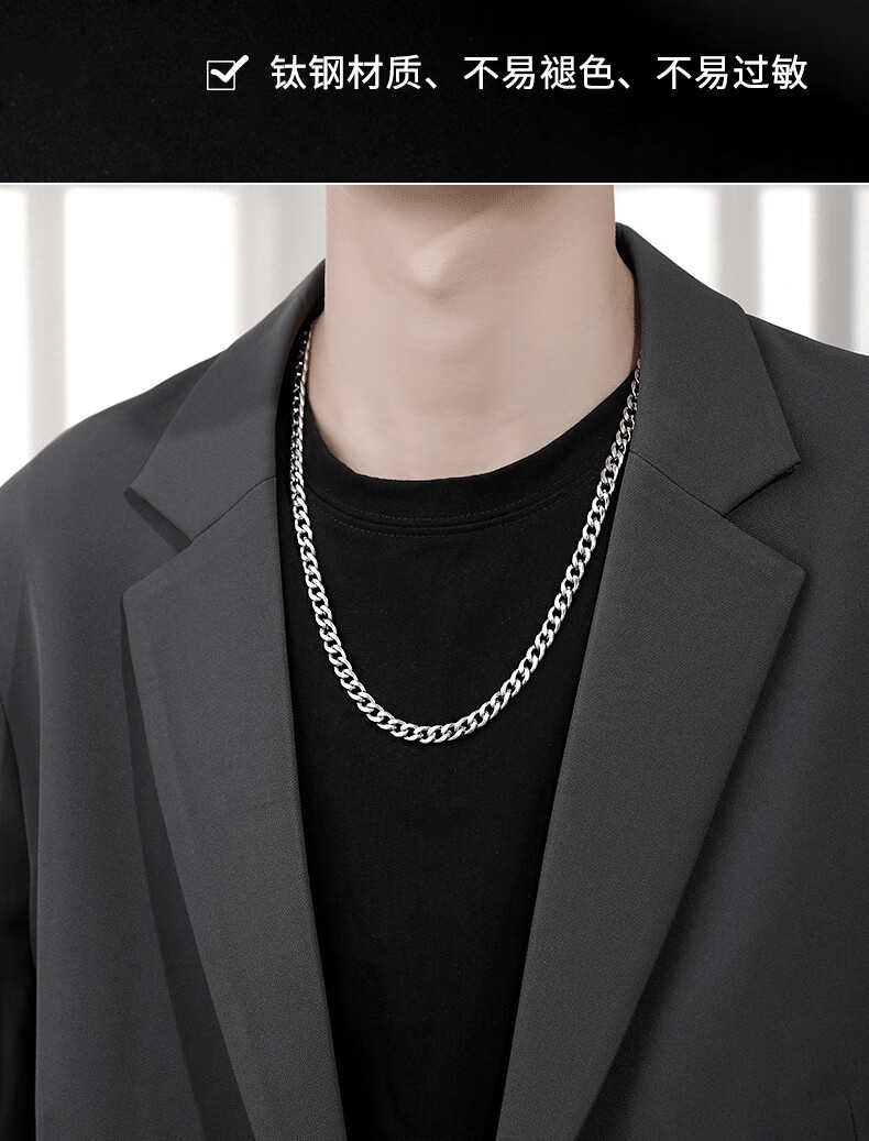 Qi Xiaomi titanium steel Cuban necklace men's Korean style trendy hip-hop men's clavicle chain European and American domineering men and women versatile gift for boyfriend