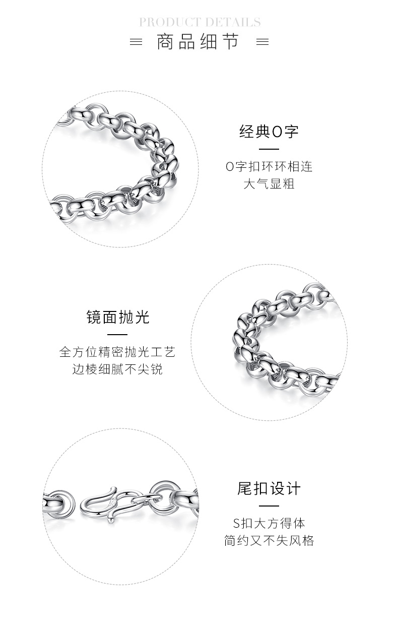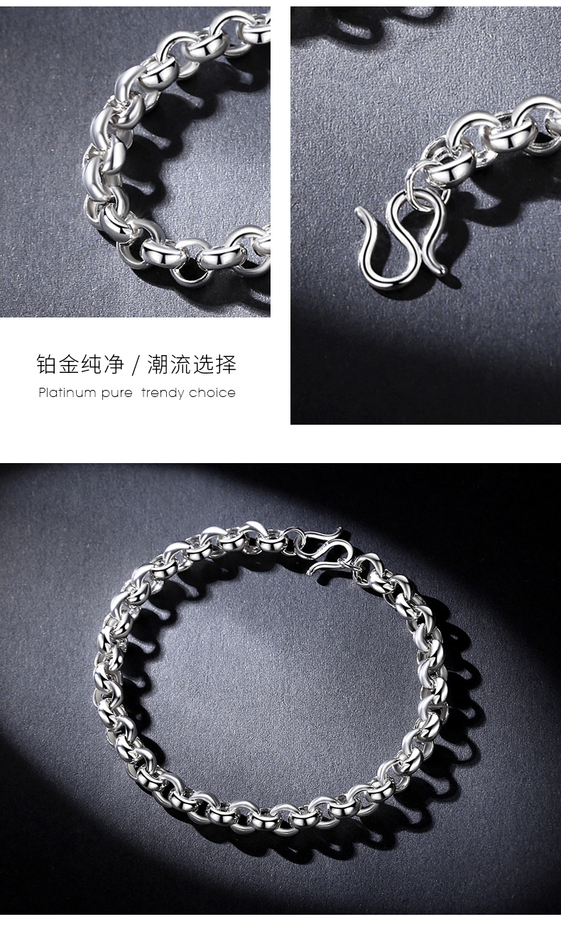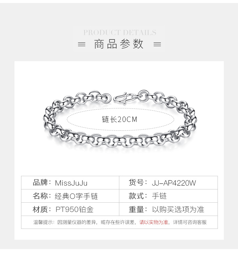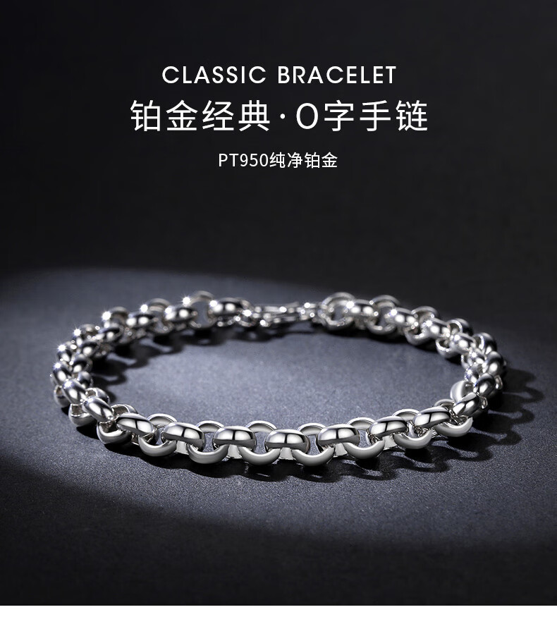 Miss JuJu platinum bracelet for men, pt950 platinum classic O-shaped chain cross chain for women, weight 10.78g, length 20cm, thickness 4.5mm S buckle