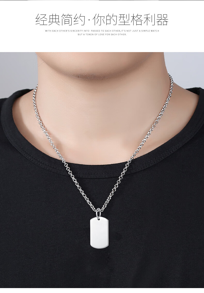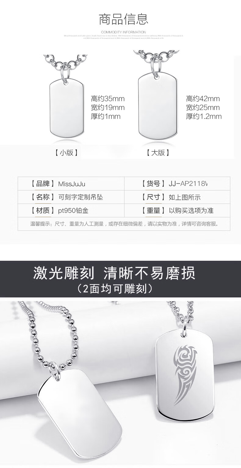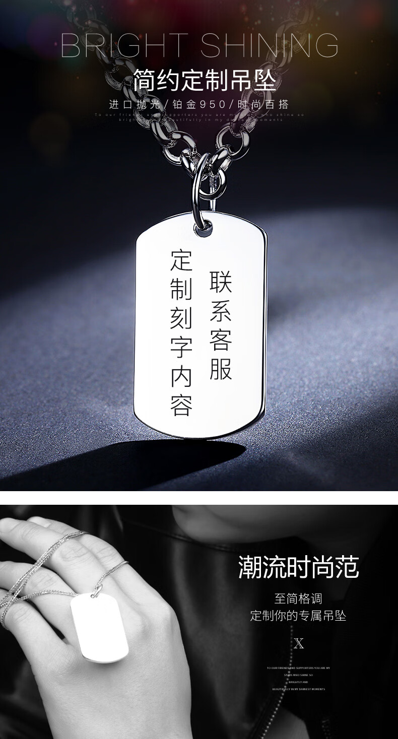 Miss JuJu pt950 platinum pendant men's solid glossy large tag platinum safe and sound square plate custom engraving DIY weight 12.9-13.0g + delivery leather rope + free engraving