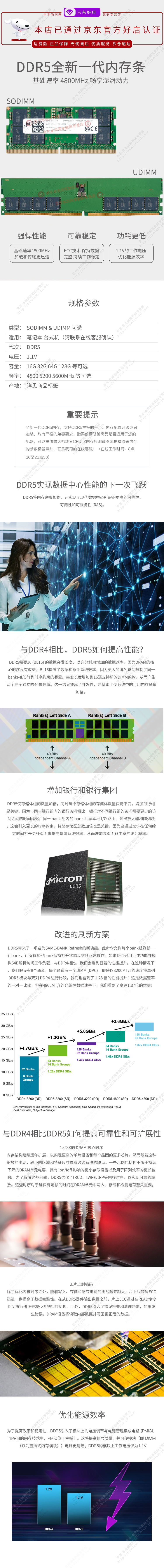 Micron Micron original DDR5 4800 5600 6400 PC5 fifth generation notebook computer running memory, suitable for Lenovo R9000P, etc. Laptop memory DDR5 4800Mhz 16GB 1 single