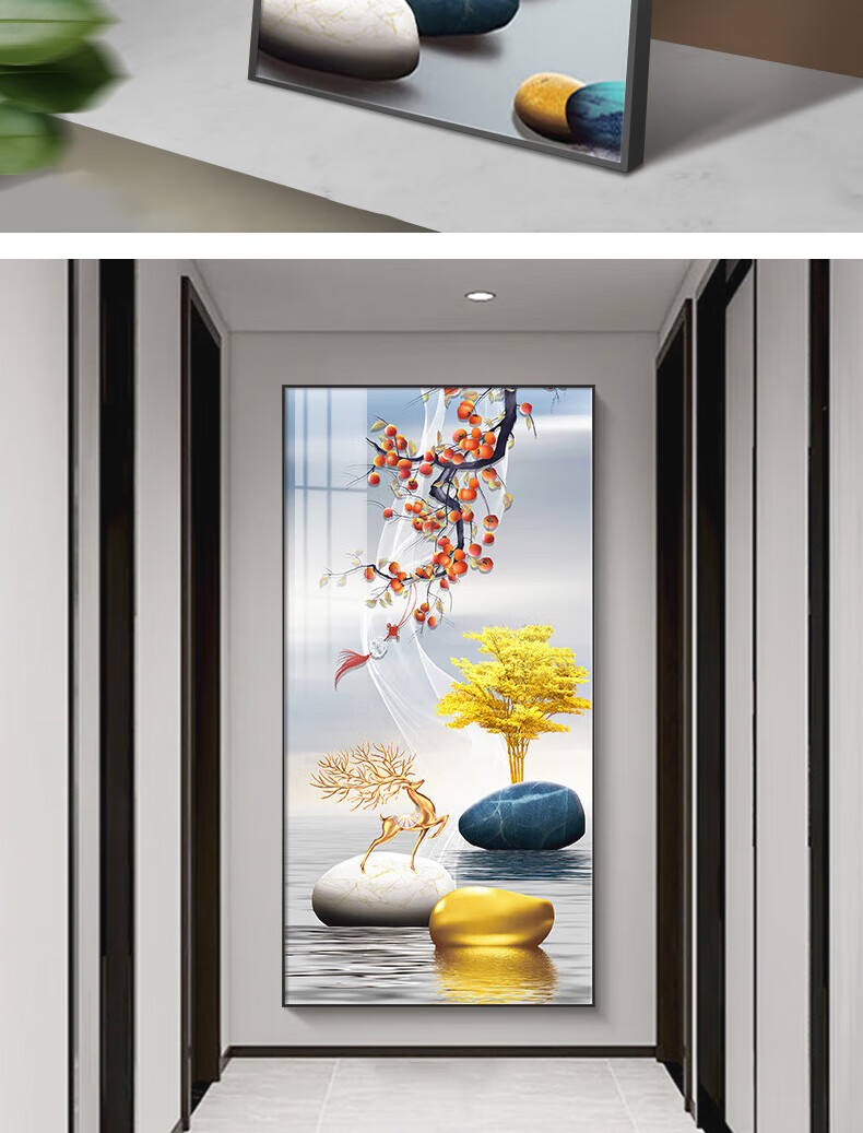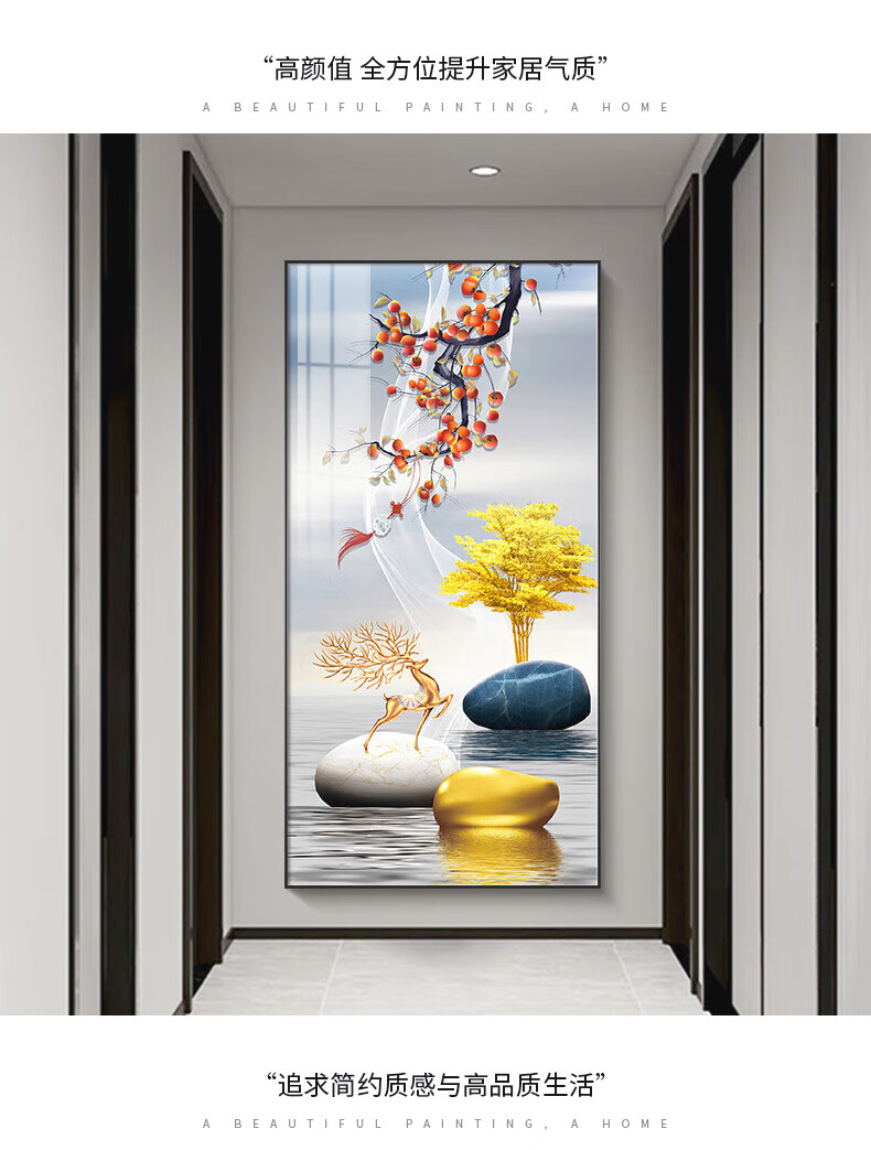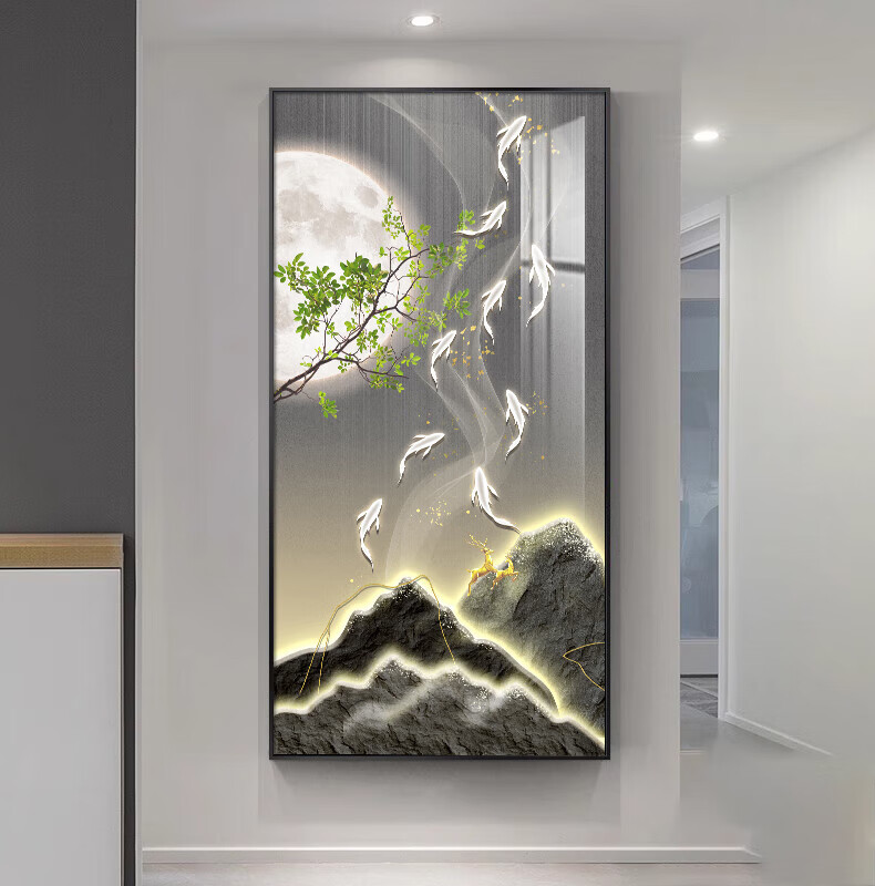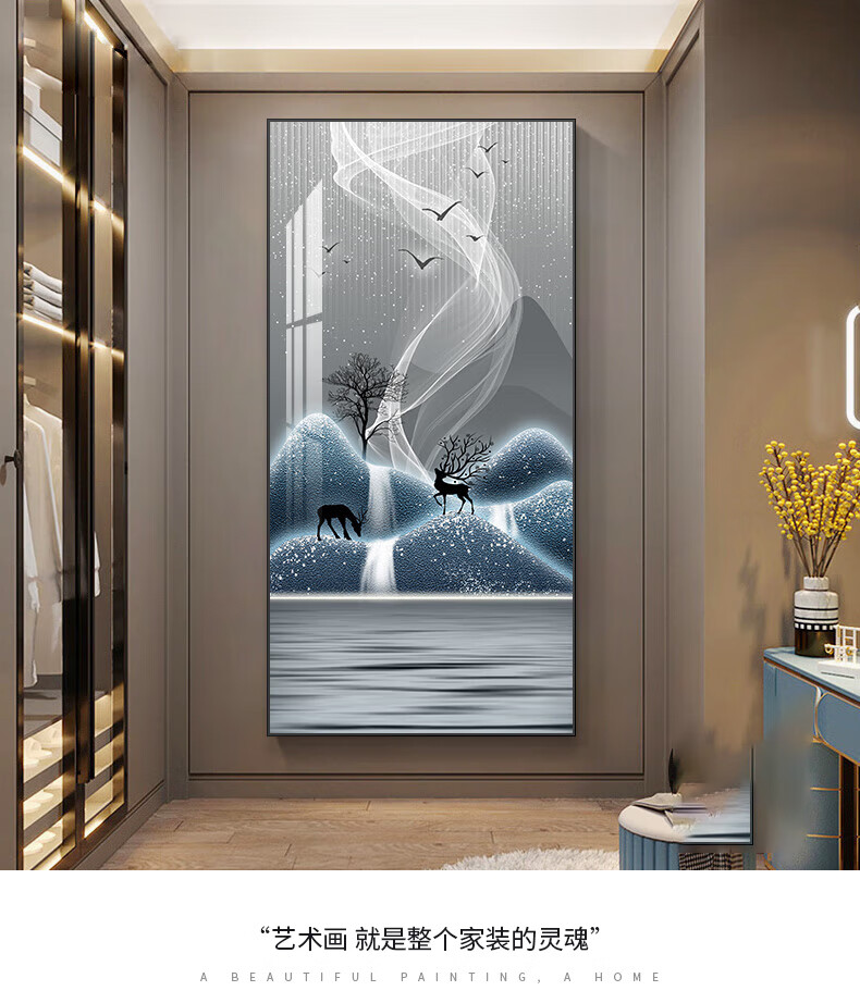 Sixpoetry entrance decorative painting modern minimalist entrance living room corridor mural landscape painting aisle high-end light luxury hanging painting wall painting Wufu Linmen (aluminum alloy frame) 80*160cm art crystal porcelain painting (bright surface)