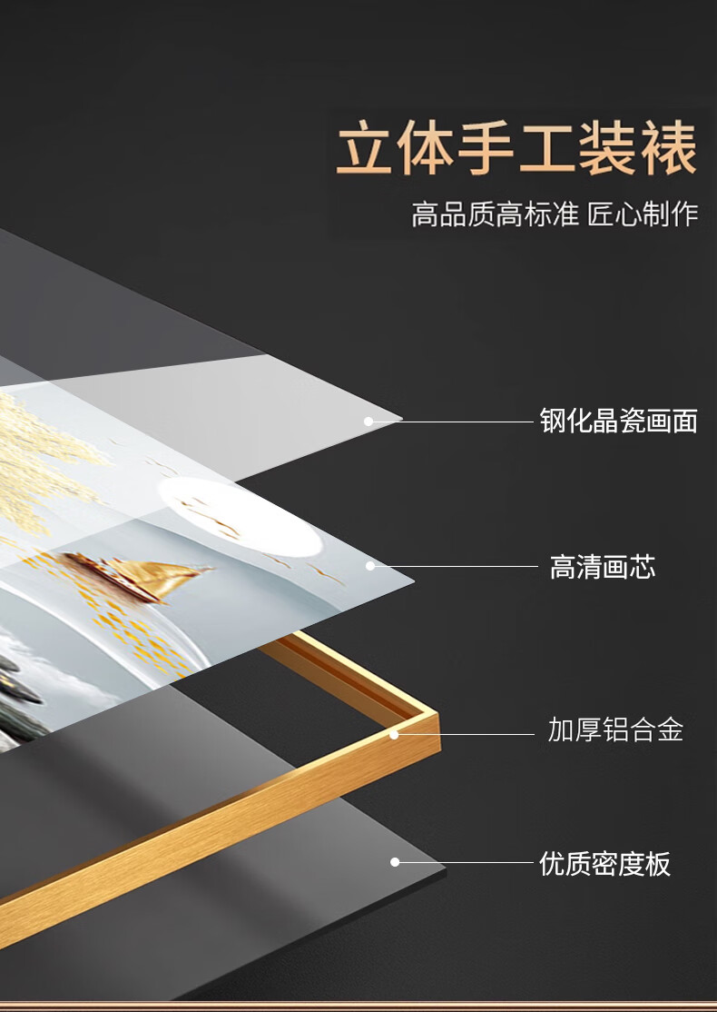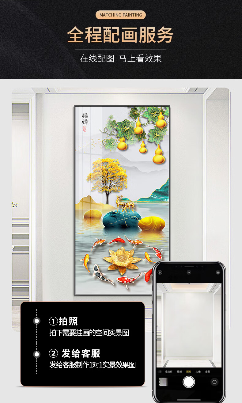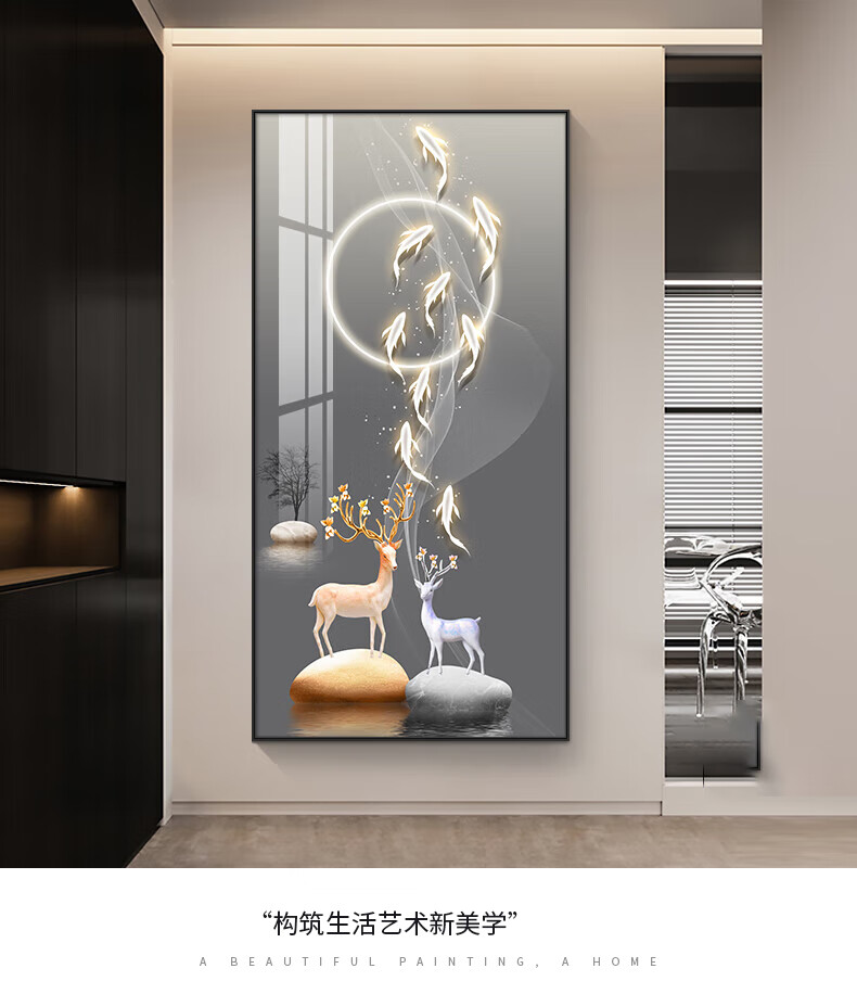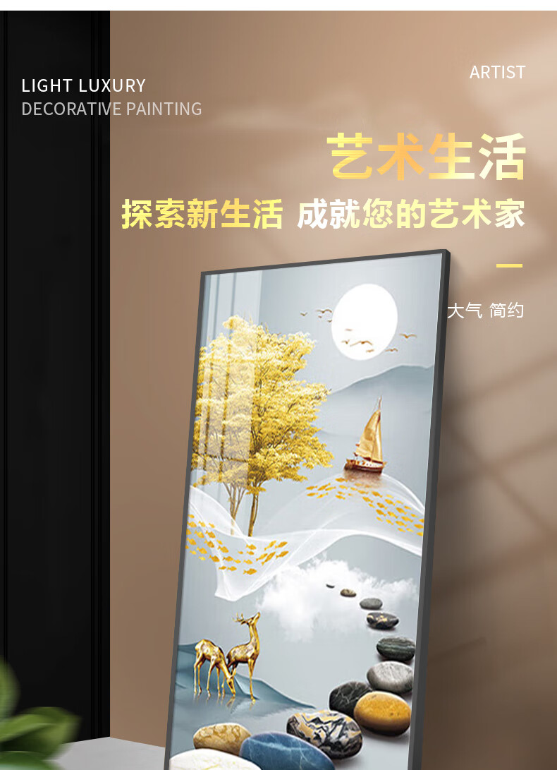 Sixpoetry entrance decorative painting modern minimalist entrance living room corridor mural landscape painting aisle high-end light luxury hanging painting wall painting Wufu Linmen (aluminum alloy frame) 80*160cm art crystal porcelain painting (bright surface)