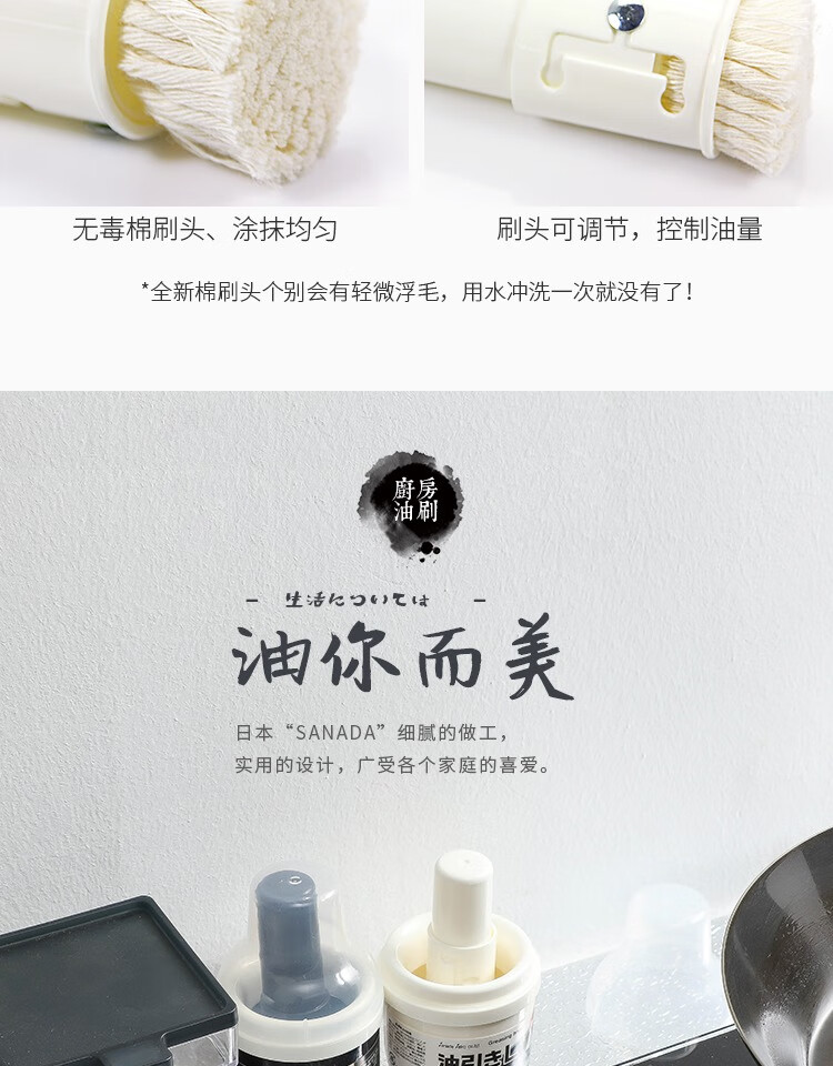 SP SAUCE Japanese household outdoor pancake oil brush kitchen high temperature resistant barbecue brush non-shedding food baking with bottle white