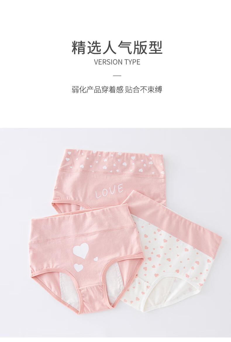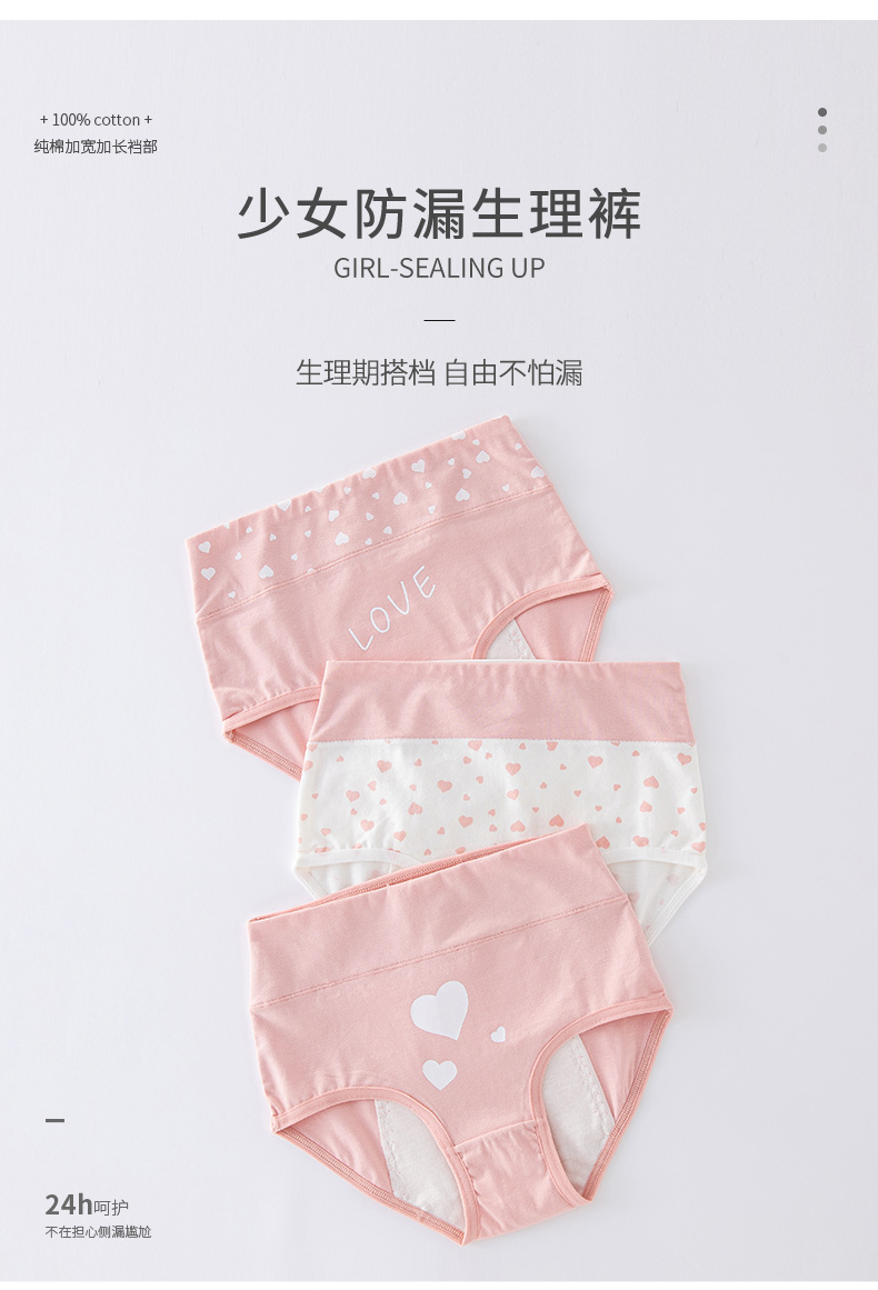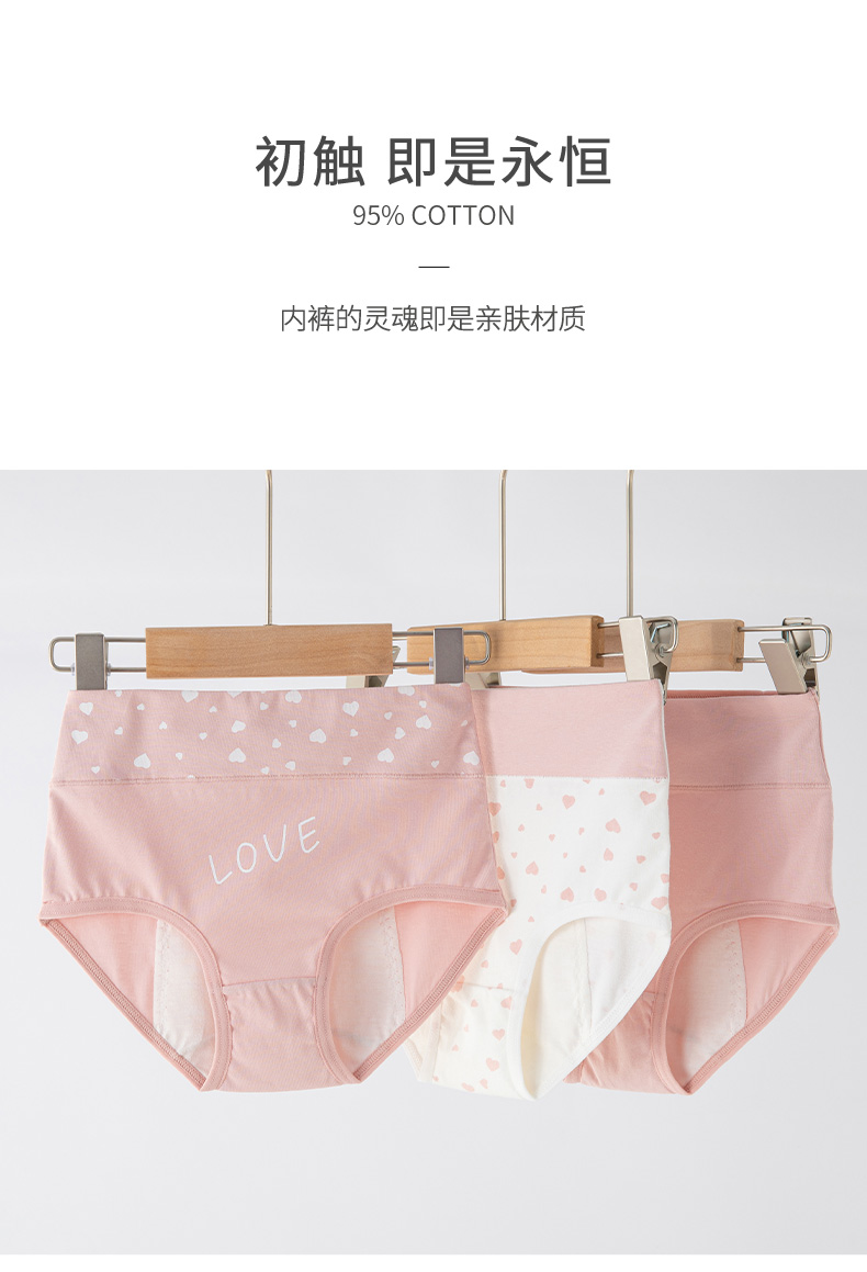 Youyou 1 point girls menstrual period underwear, special leak-proof for middle and large children, high-waisted cotton sanitary pants for girls during period, foundation love + white bottom love (2 packs) 2 pieces M weight 71-85Jin Jin is equal to 0.5 kg