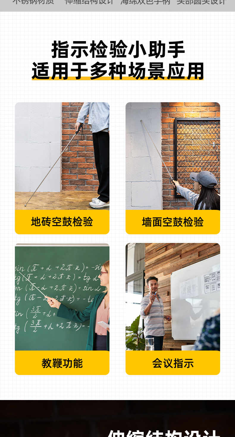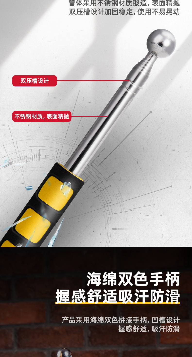 Deli (deli) empty drum hammer home inspection tool set hammer retractable stick pointer detection empty drum collection room wall tiles and floor tiles empty drum detection hammer stainless steel earthquake-resistant sound drum hammer 240-980mm empty drum hammer DL452002