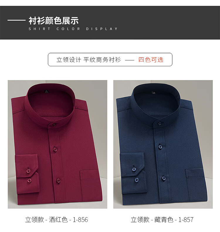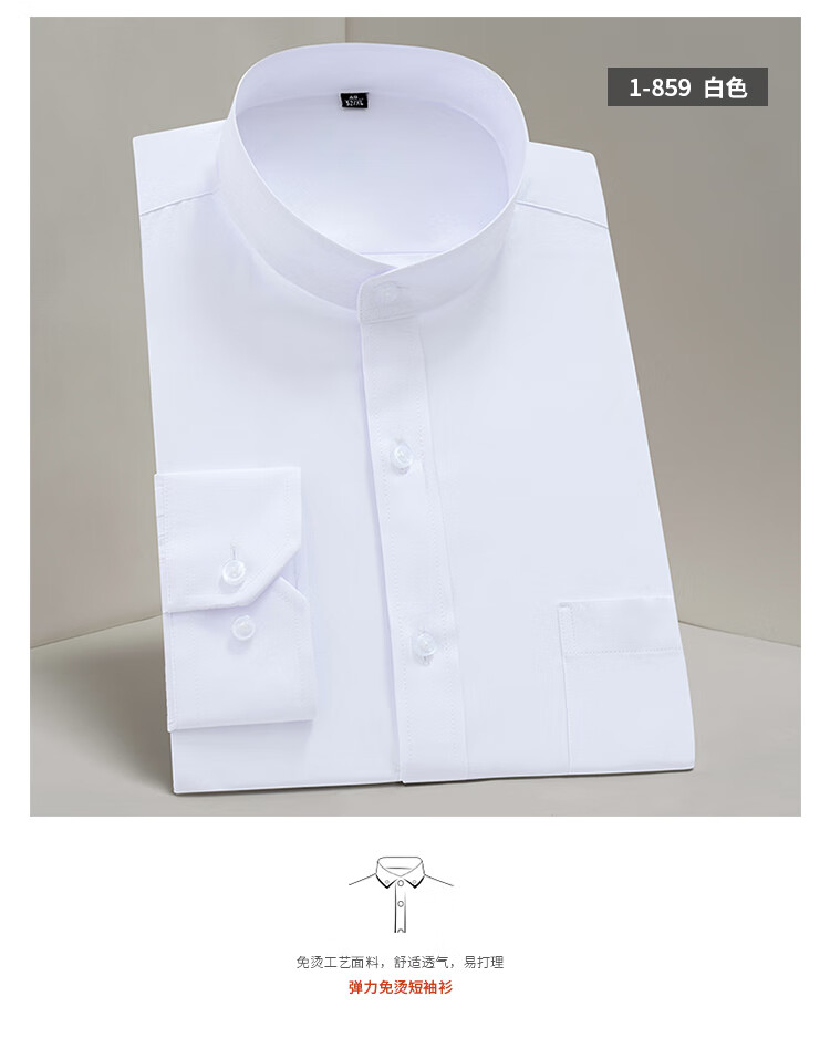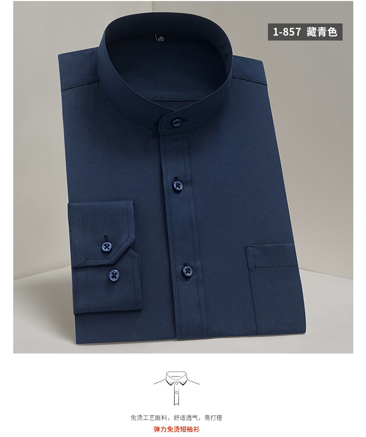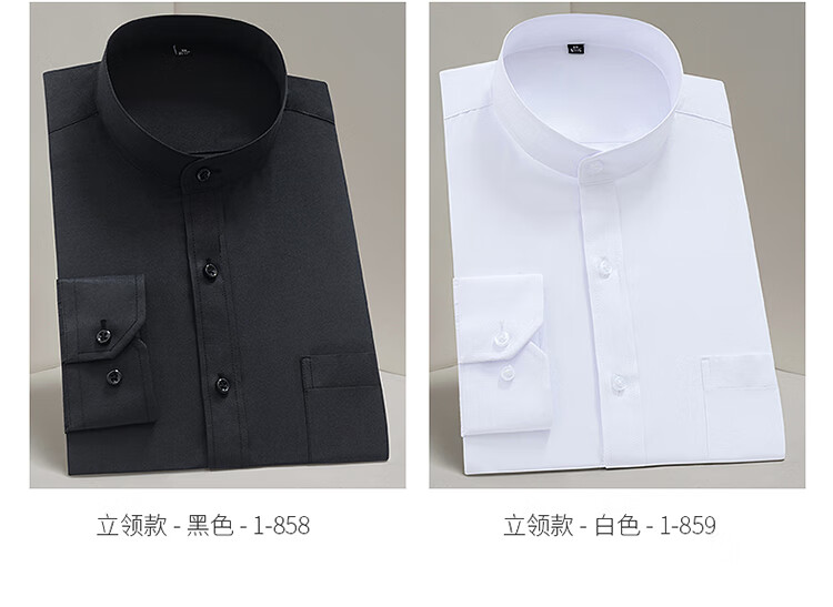 Pierre Cardin French high-end men's Chinese stand-up collar shirt men's long-sleeved black business formal wear free-iron Chinese style tunic suit men's round neck shirt lining white 859 39 125-140Jin Jin equals 0.5 kg