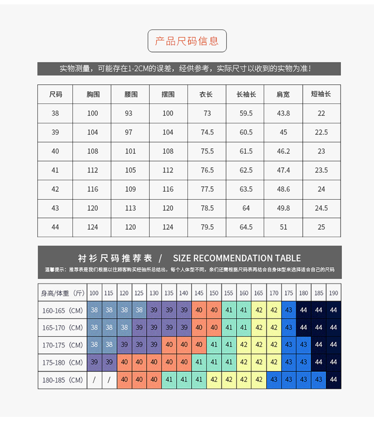 China (cm) 160-165/84-86 165-170 / 88-90 167-172 / 92-96 168-173 / 98-102 170-176 / 106-110