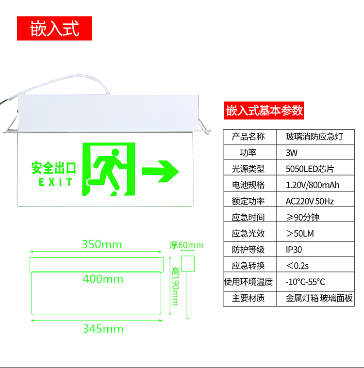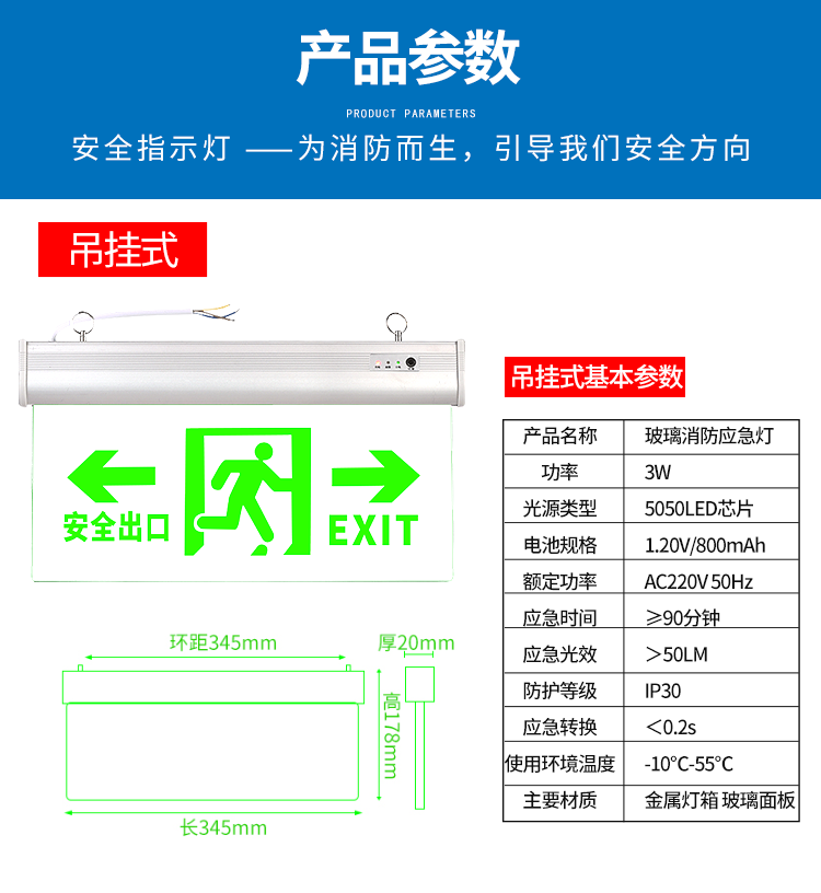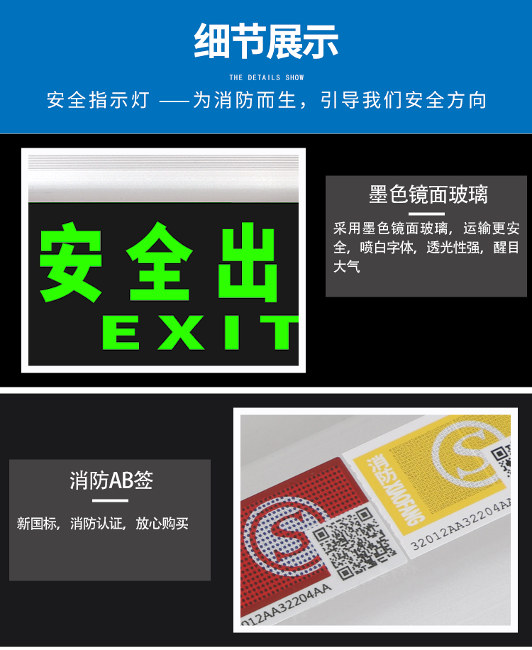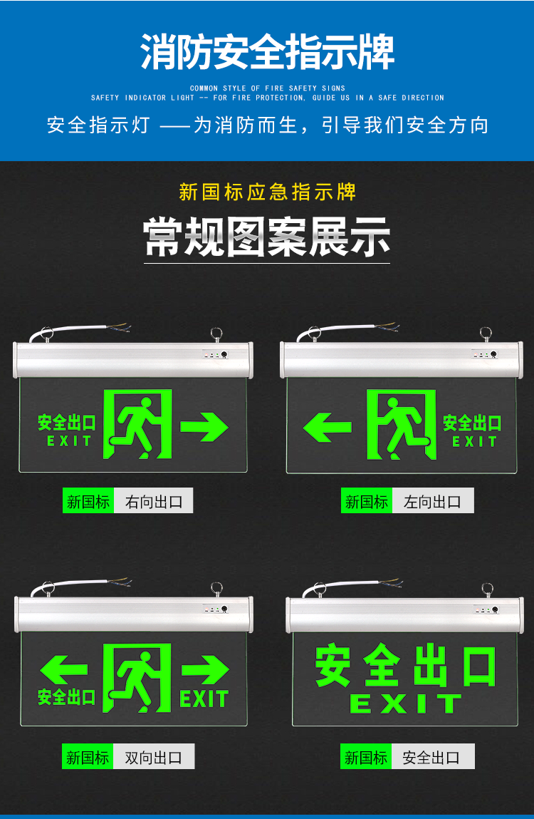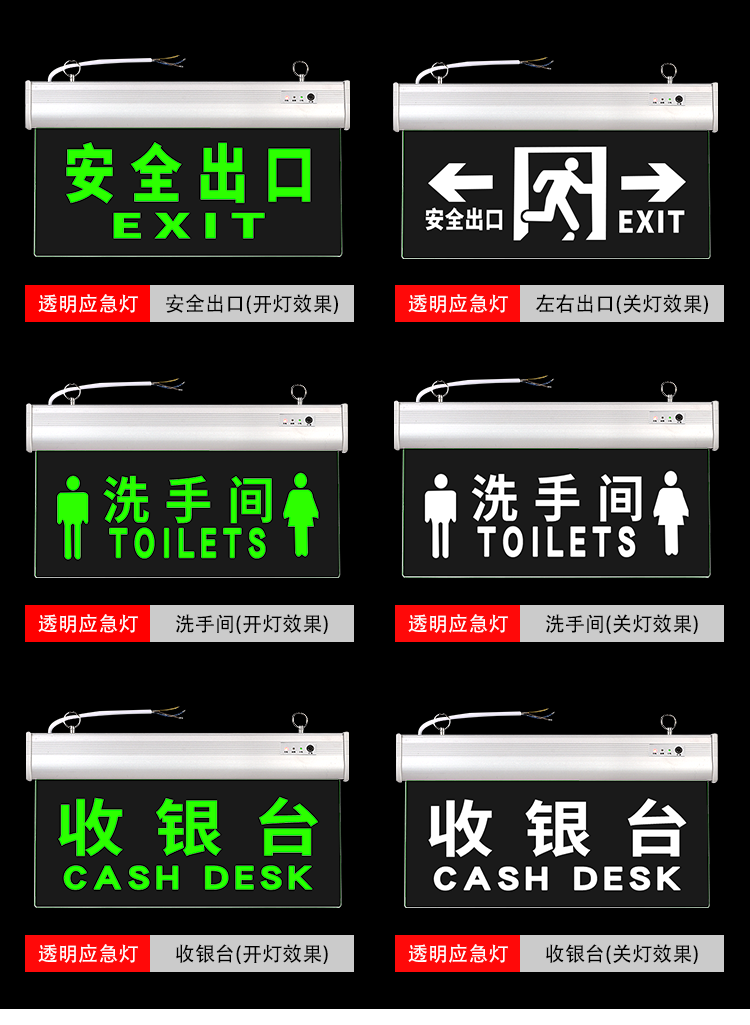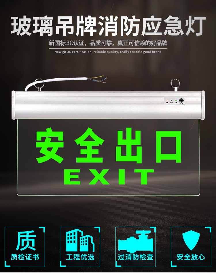 Fire emergency light transparent LED tempered glass safety exit sign crystal hang tag evacuation sign light new national standard (left exit) hang tag
