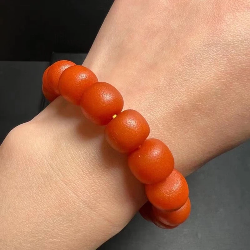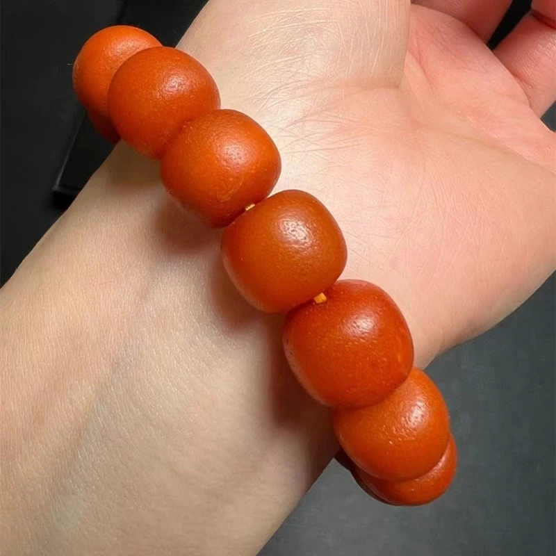 Xunran European return antique orange peel old wax bracelet Russian material chicken oil red full wax pure thick pine fragrance rich simple atmosphere