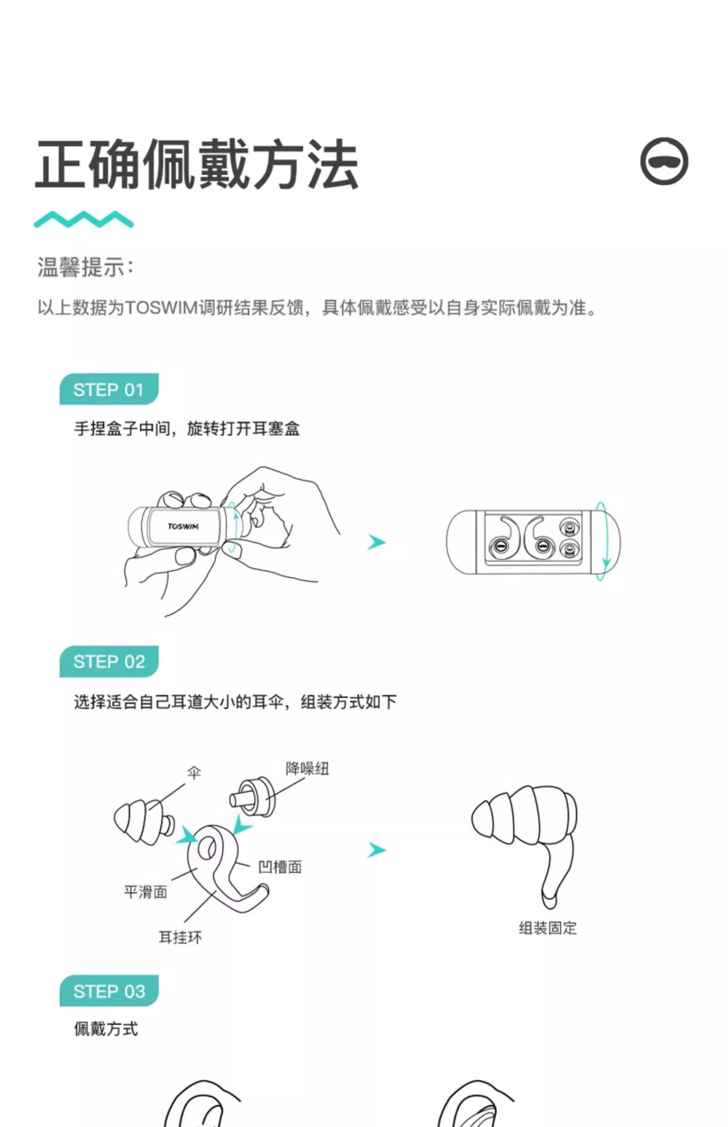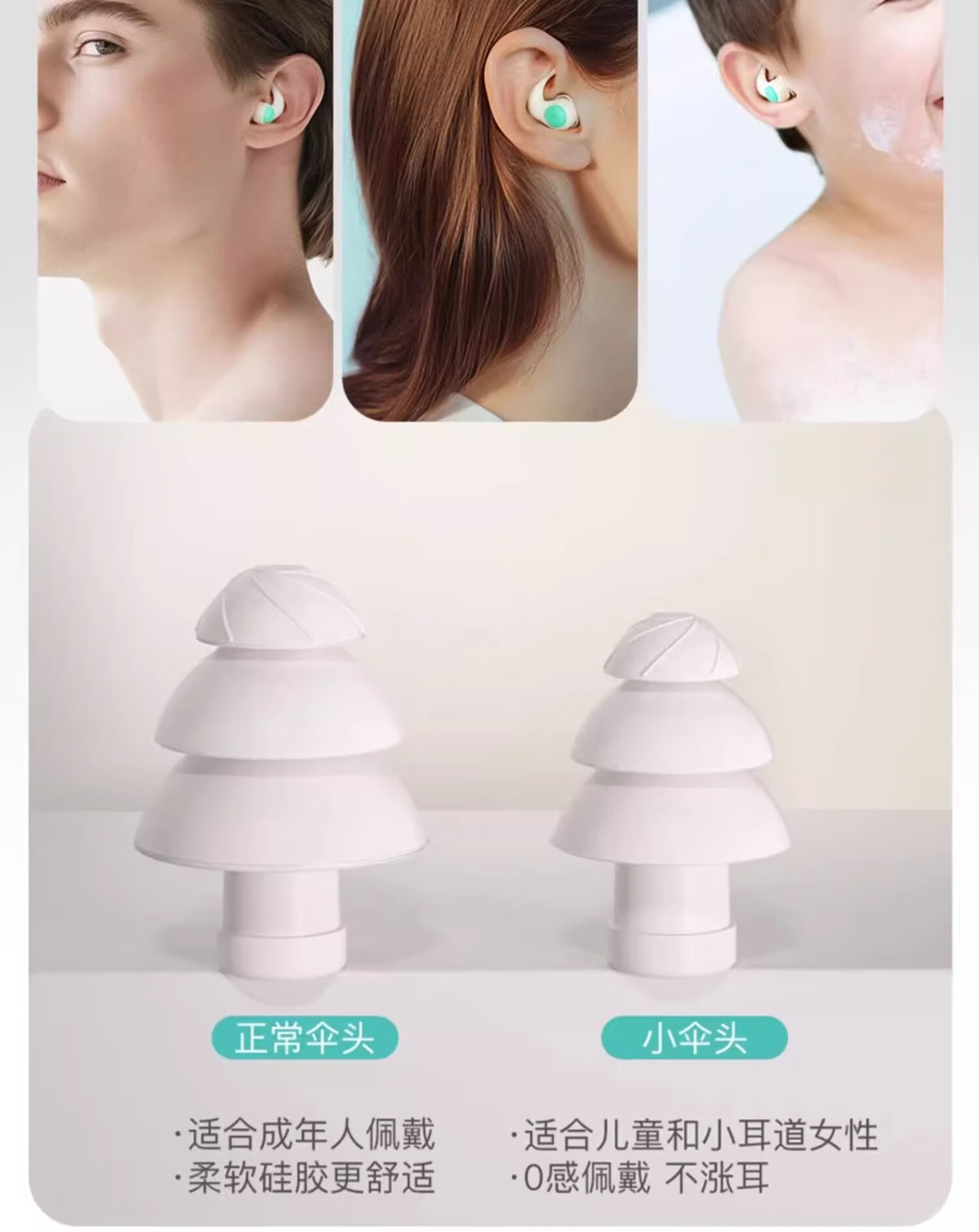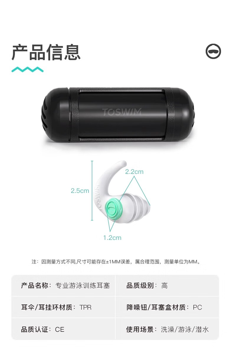 TOSWIM professional swimming earplugs for bathing, special waterproof artifact for adults and children to prevent water ingress, soft earplugs, white sand beach earplugs, S\M size double umbrella head