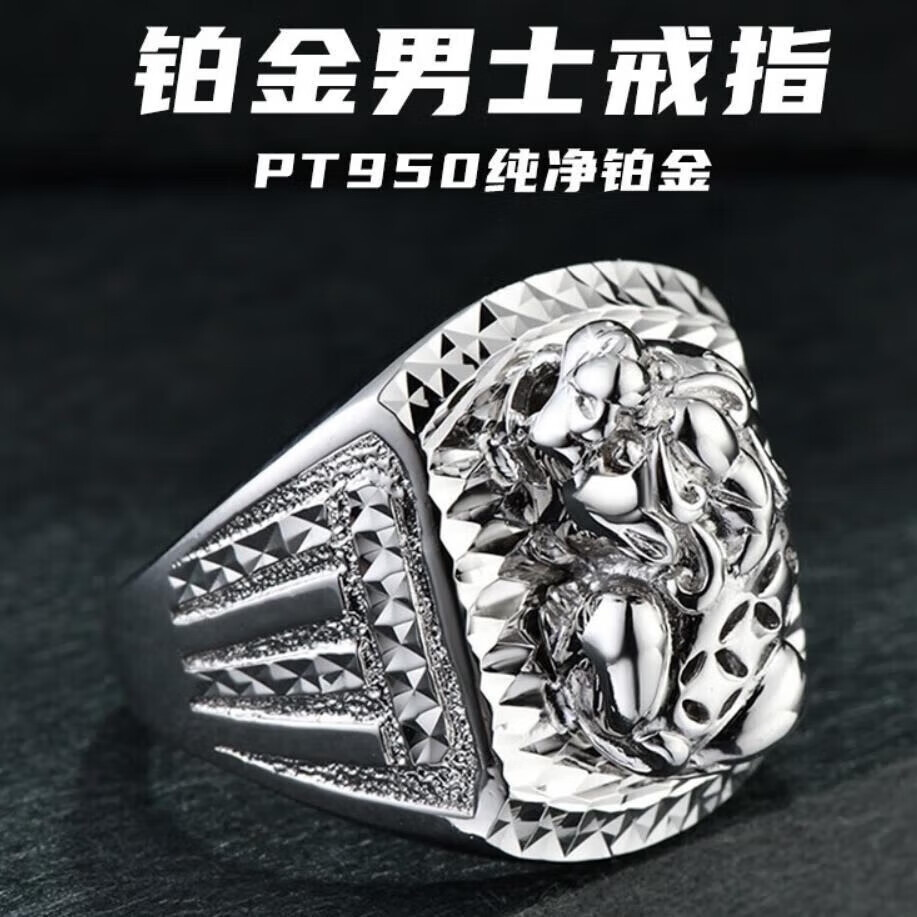 Jibaolou Pt950 platinum ring for men Pixiu men's ring platinum live mouth Pixiu ring live mouth fixed mouth ring 23g live mouth fixed mouth customization more refund less supplement
